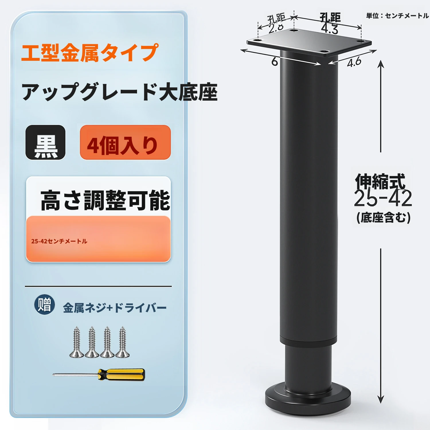 黒色【25-42cm高】大底座タイプ 工型金属タイプ より安定 4個
