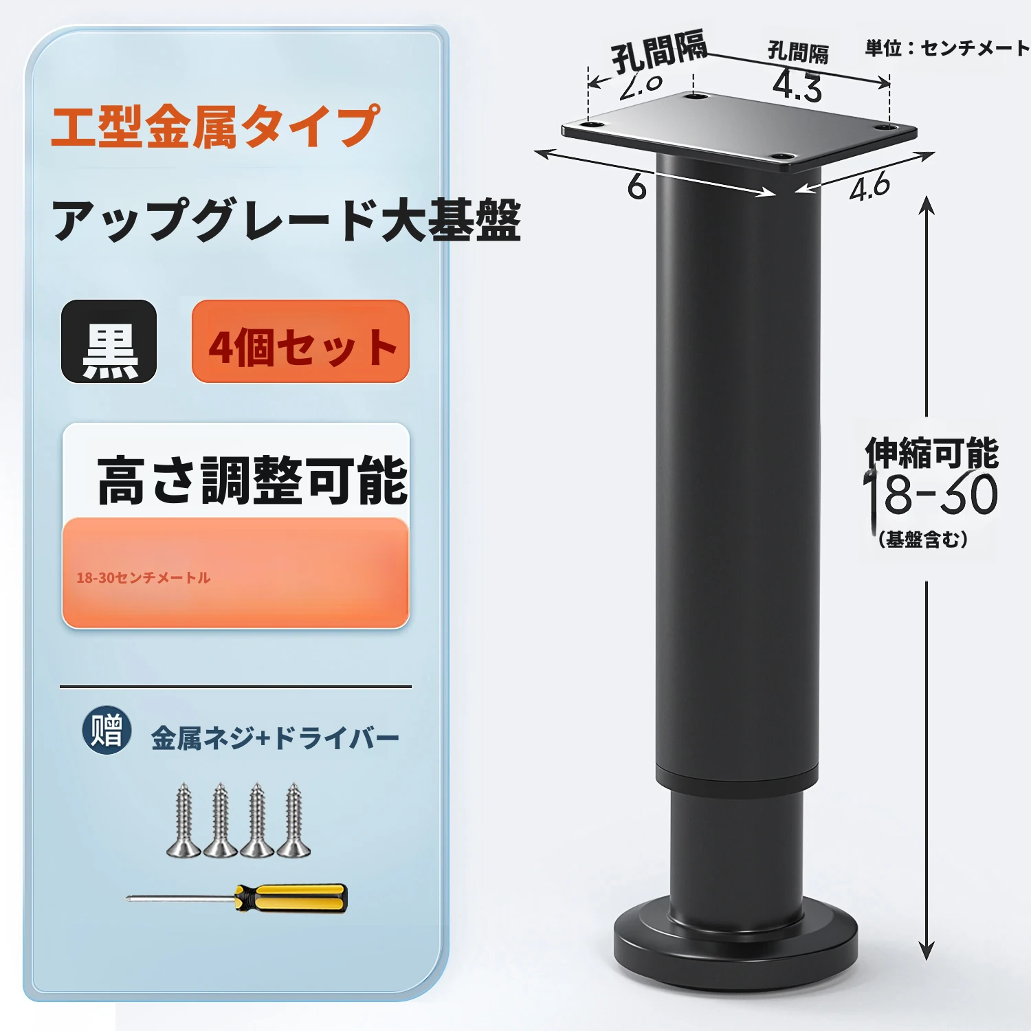 黒色【18-30cm高】大底座タイプ 工型金属タイプ より安定 4個
