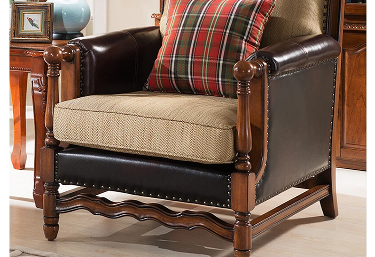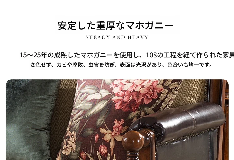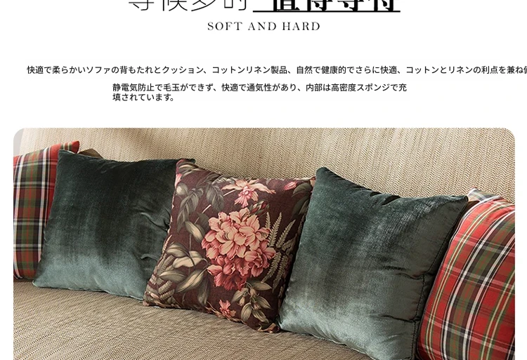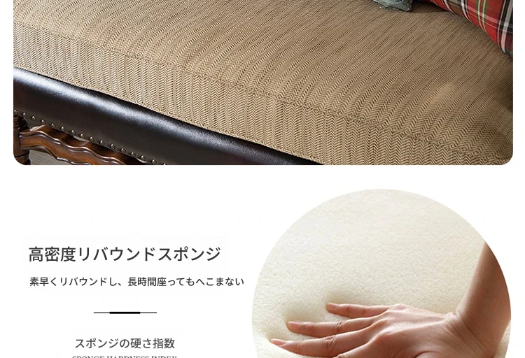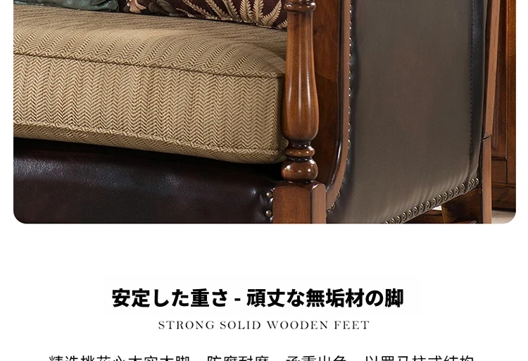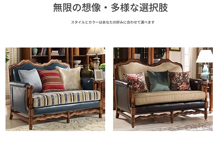 アメリカンカントリー風デザインの無垢材とファブリックソファセット!家庭用3人掛け、シンプルでおしゃれな欧風モダンスタイル。小型住宅にもぴったりなラグジュアリー感あふれるリビングソファ。