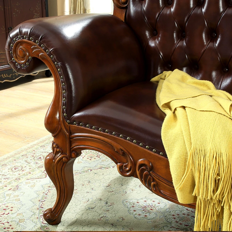 アメリカンスタイル本革デイベッド - 家庭用・寝室・一人掛けソファ・欧州風無垢材リラックス・タフターチェア - バルコニー用美人ソファで、贅沢なくつろぎの時間をお楽しみください!