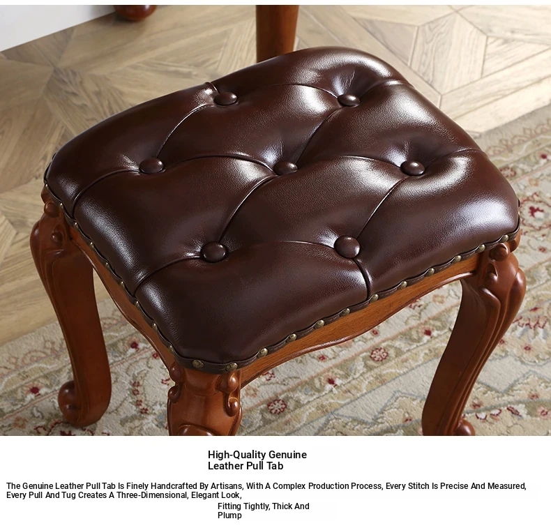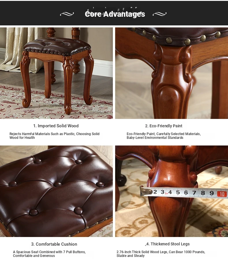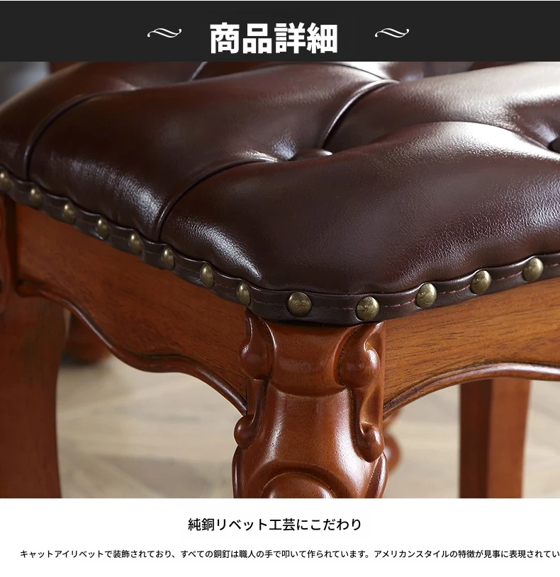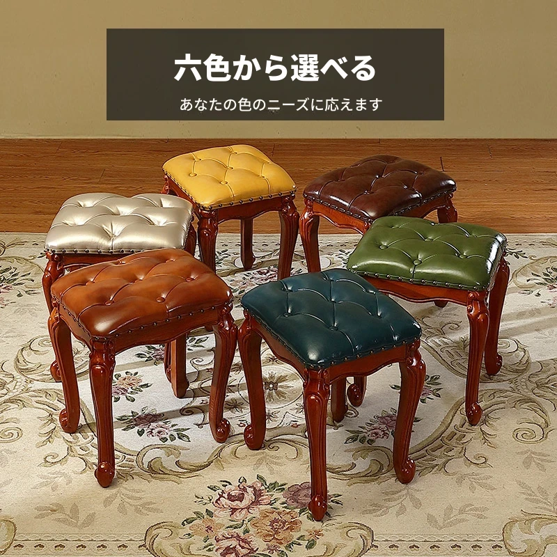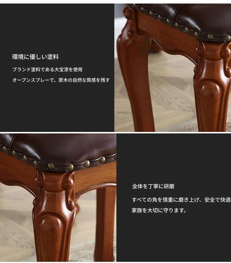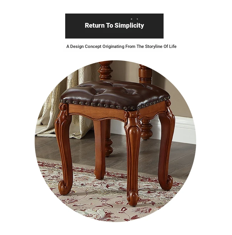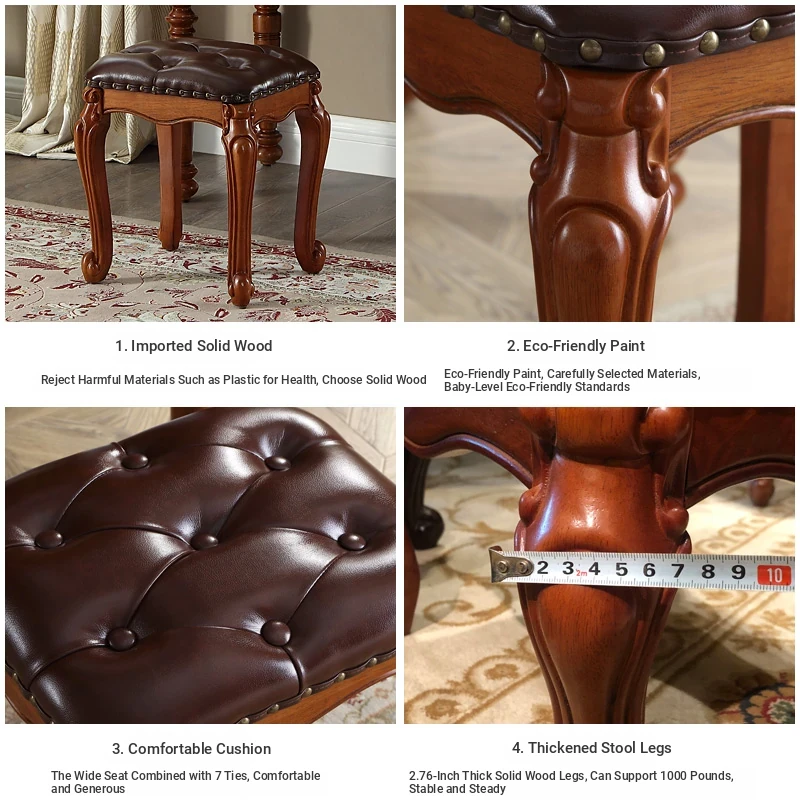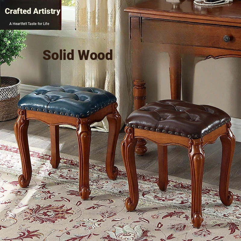アメリカンスタイルのドレッシングスツール - 寝室にぴったりな無垢材製のヴィンテージドレッシングテーブル椅子!エレガントな欧風デザインで、メイクやネイルに最適なリラックス空間を演出します。