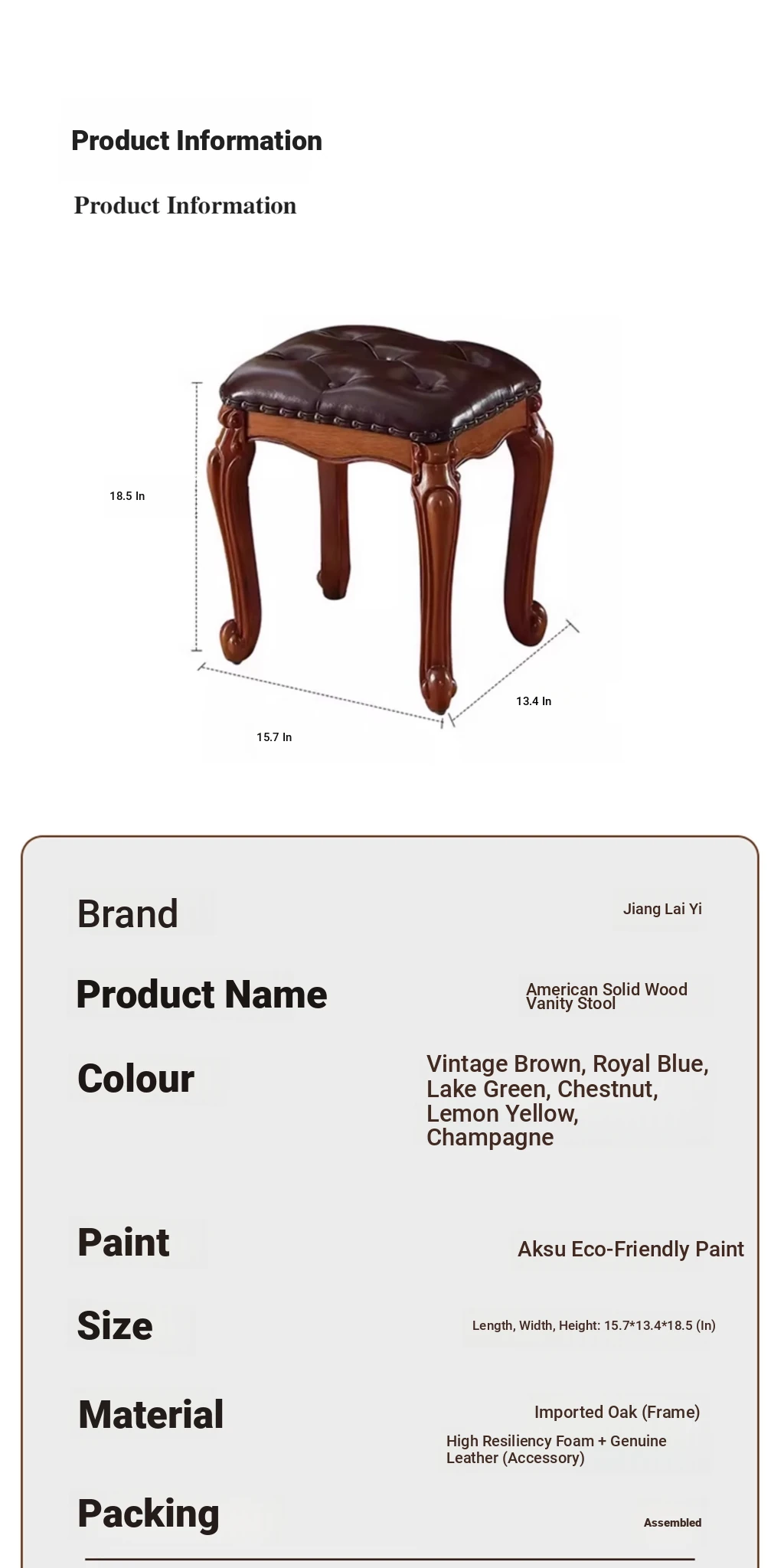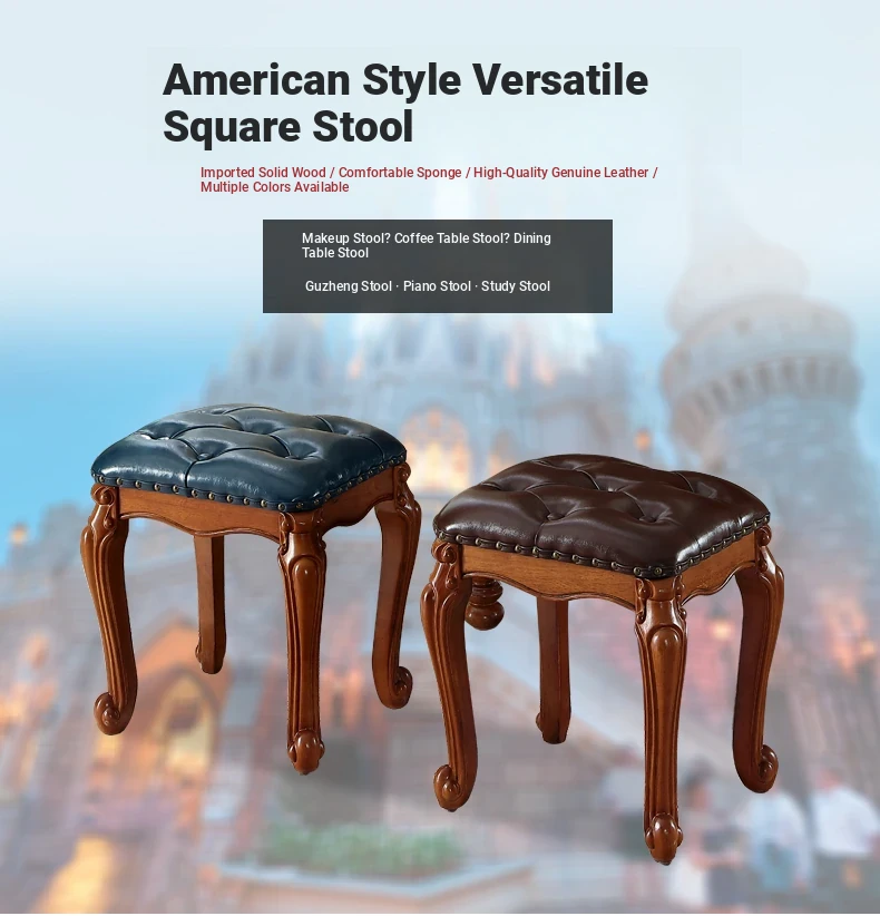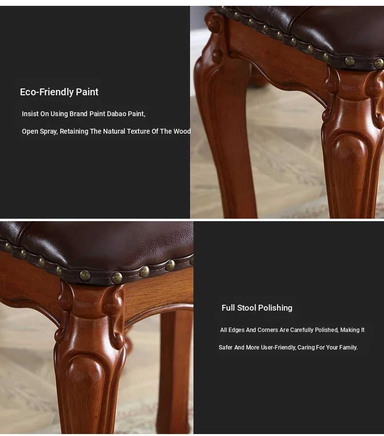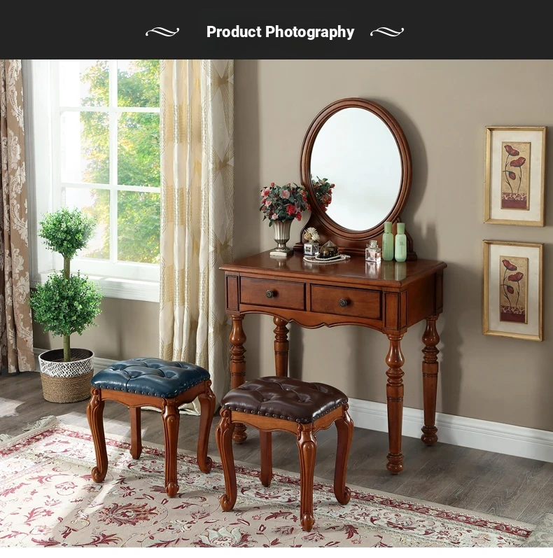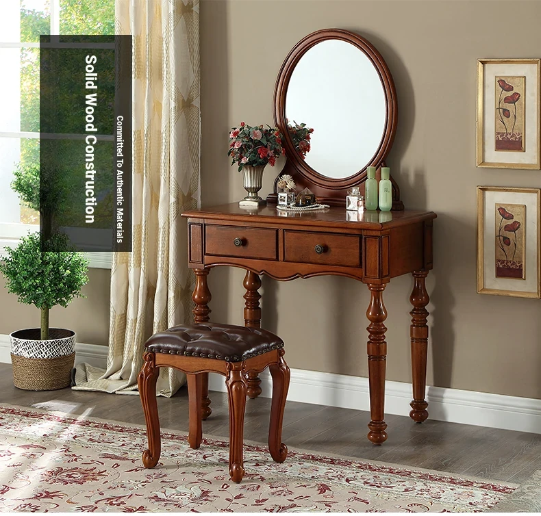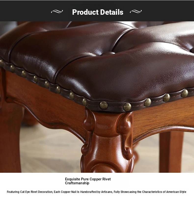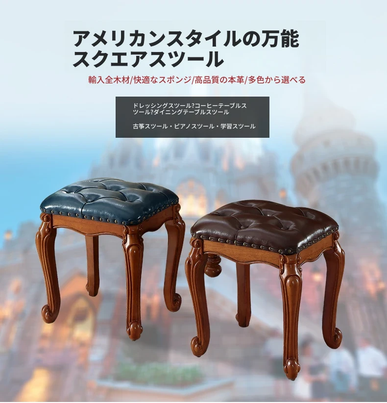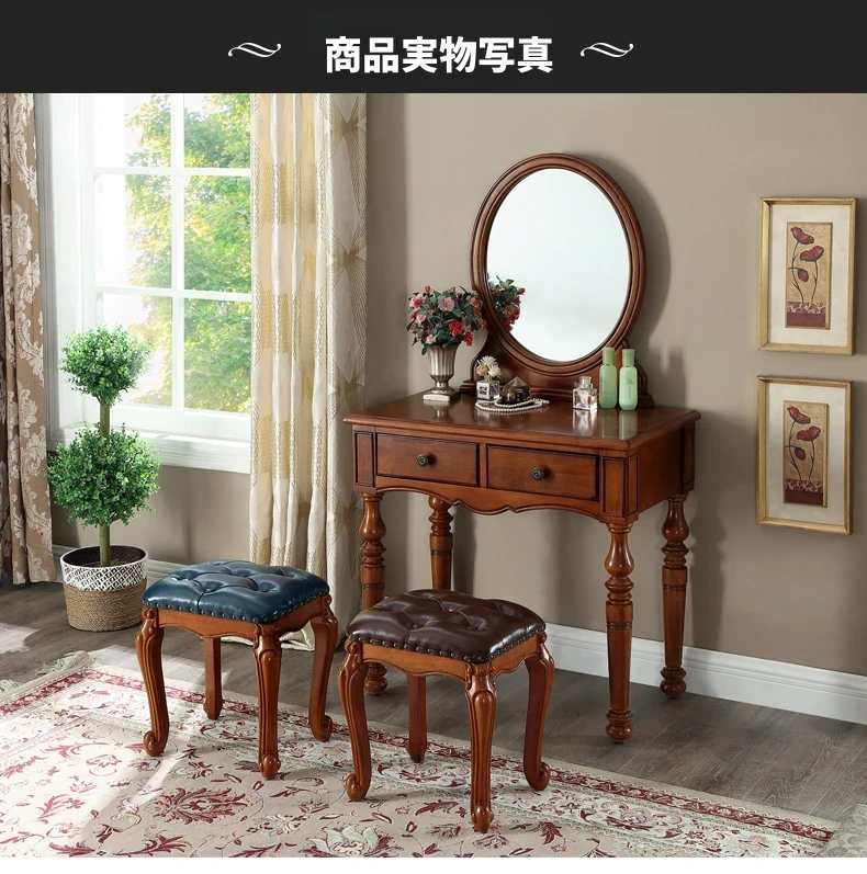 アメリカンスタイルのドレッシングスツール - 寝室にぴったりな無垢材製のヴィンテージドレッシングテーブル椅子!エレガントな欧風デザインで、メイクやネイルに最適なリラックス空間を演出します。