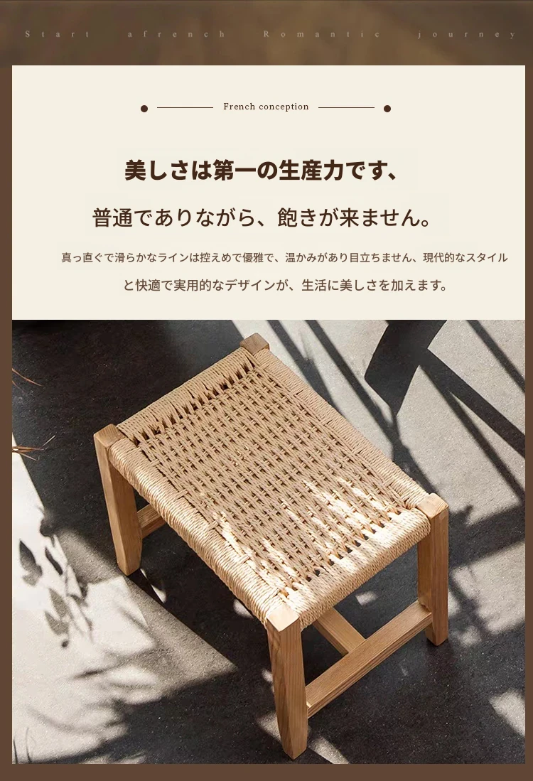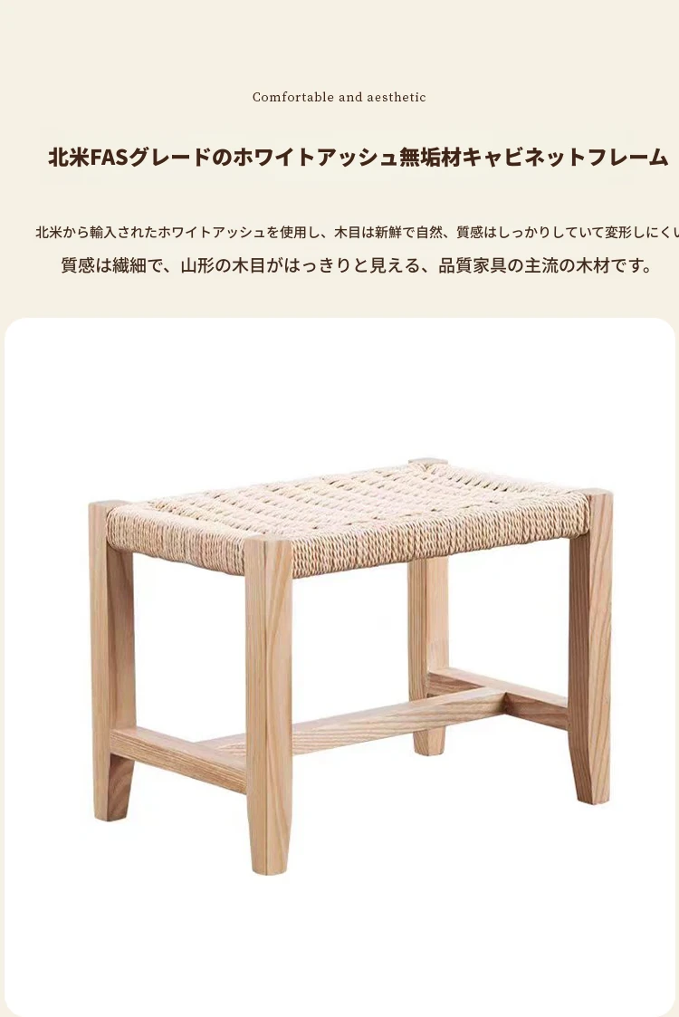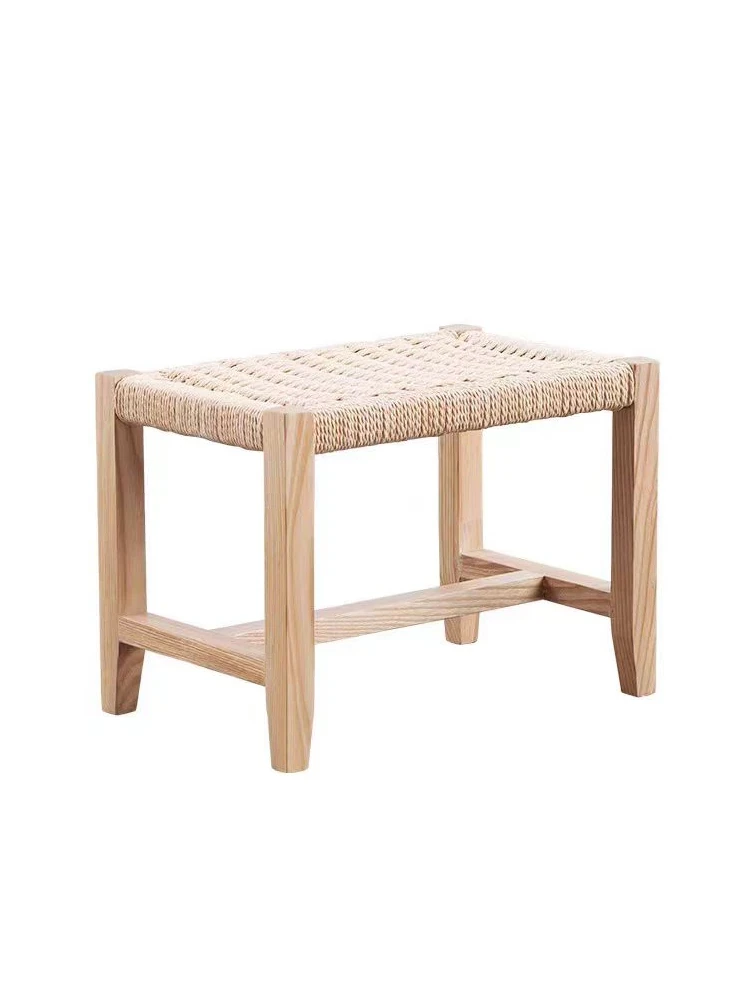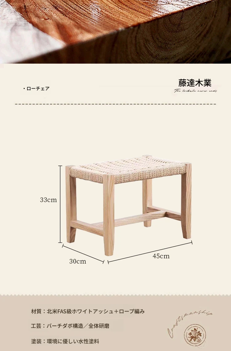 ロープと藤の編み込みベンチ、牛革と無垢材を使用した靴脱ぎベンチ。家庭用、大人向けの足置き台、民宿やアパートにぴったりのシンプルなソファベンチ。おしゃれで実用的な一品です!