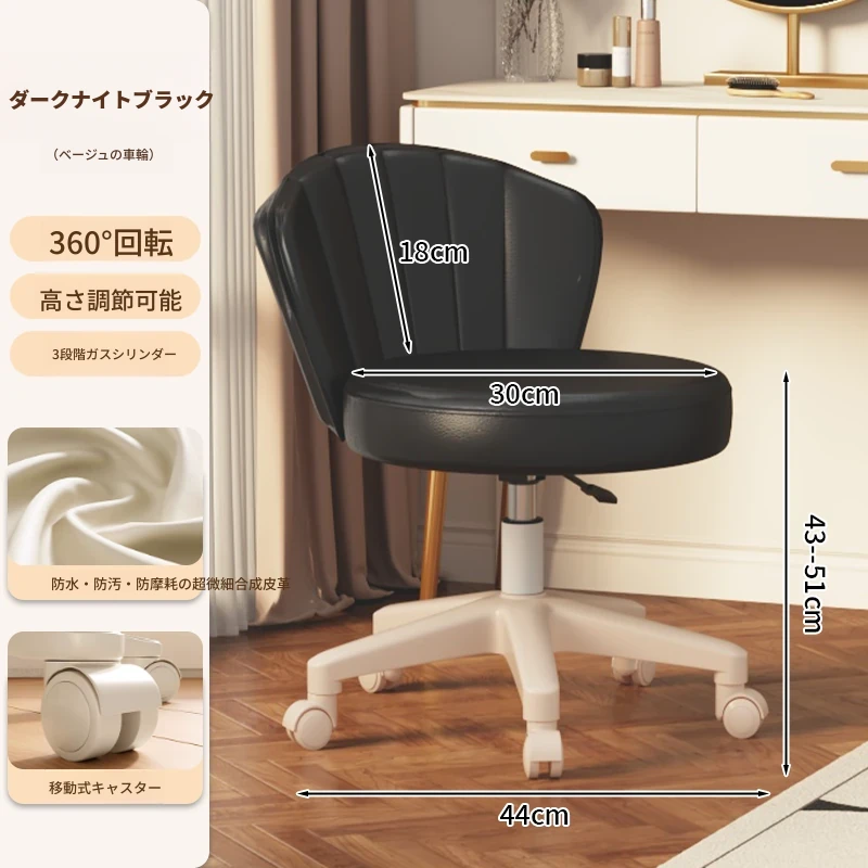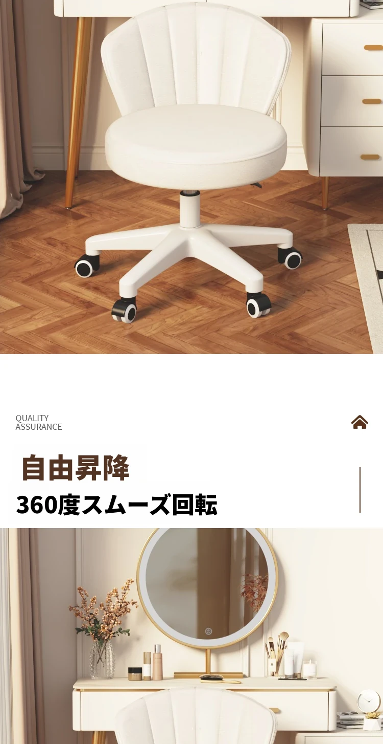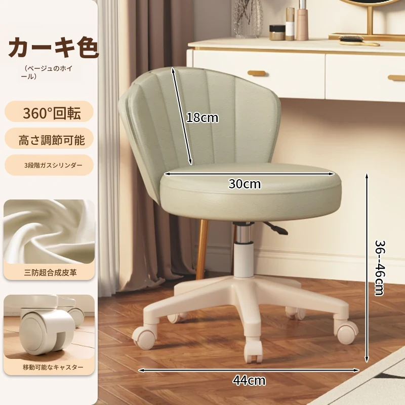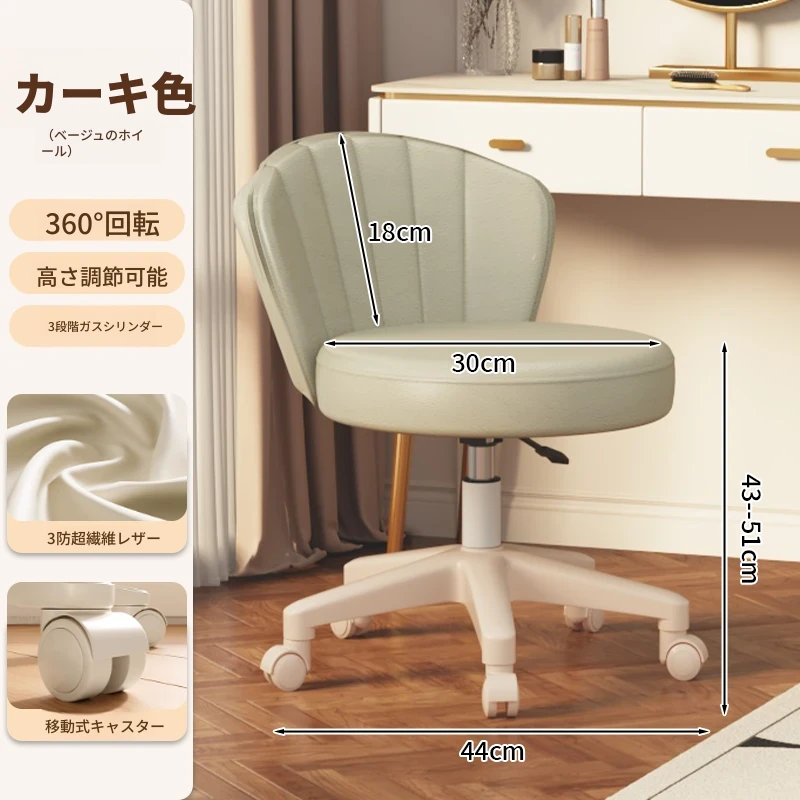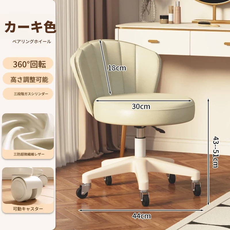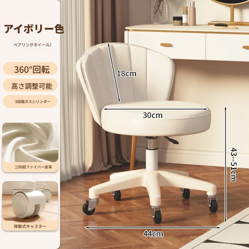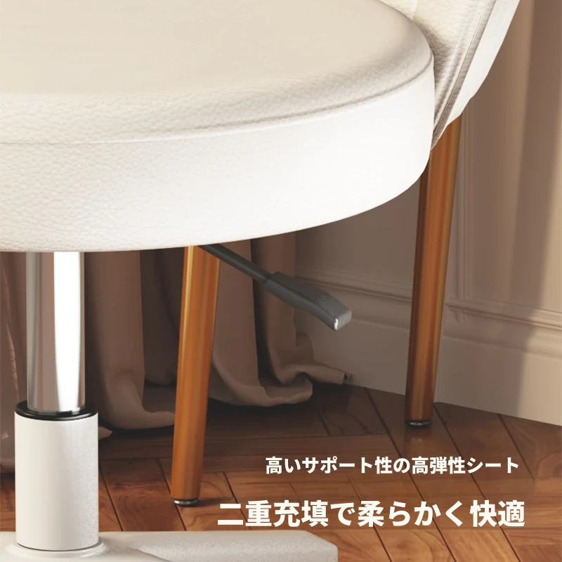 スペースを取らない!おしゃれなメイクアップスツール - 回転式クリーム風デザインの椅子で、主寝室やドレッサーにぴったり。女子のための快適な化粧タイムを演出します!