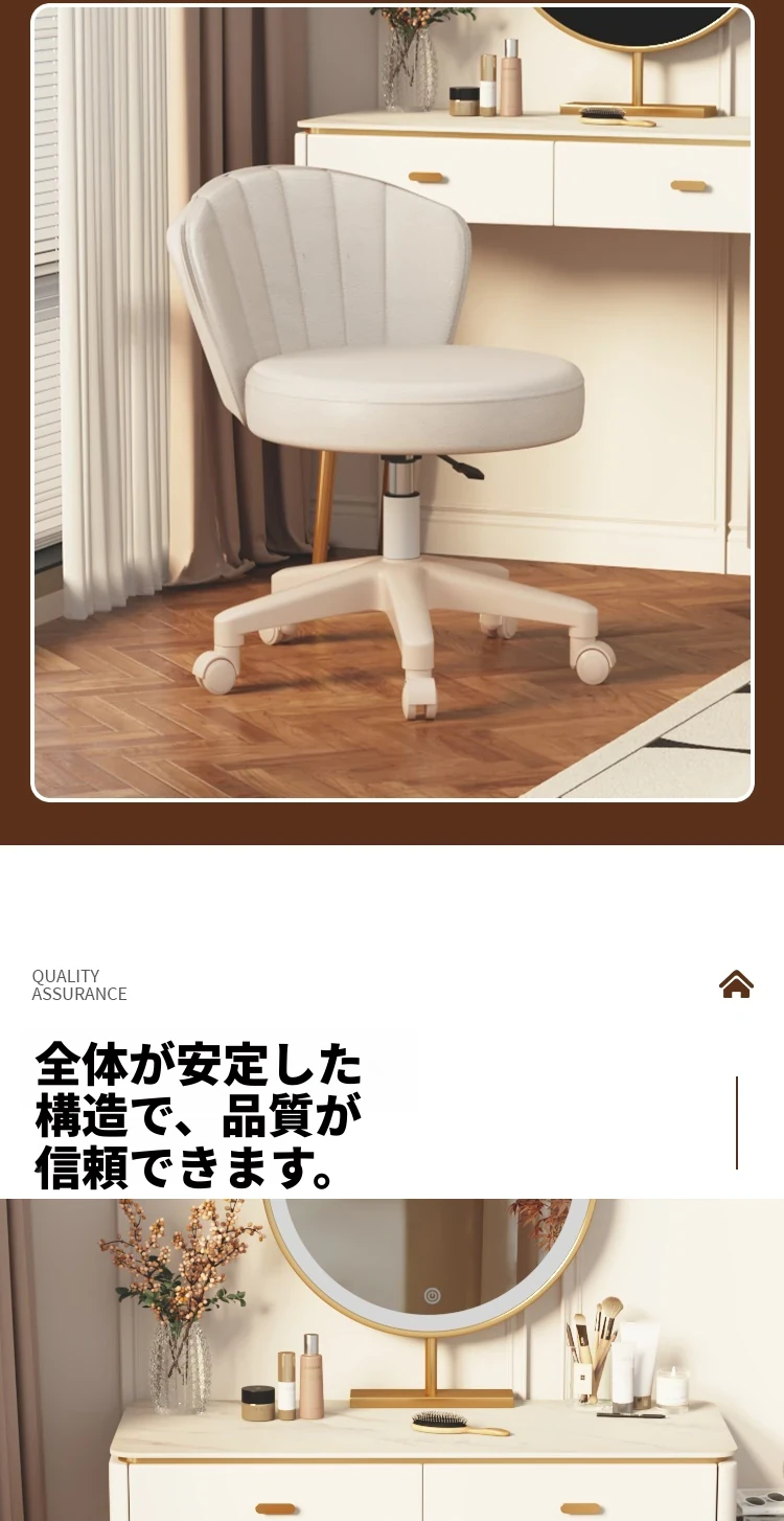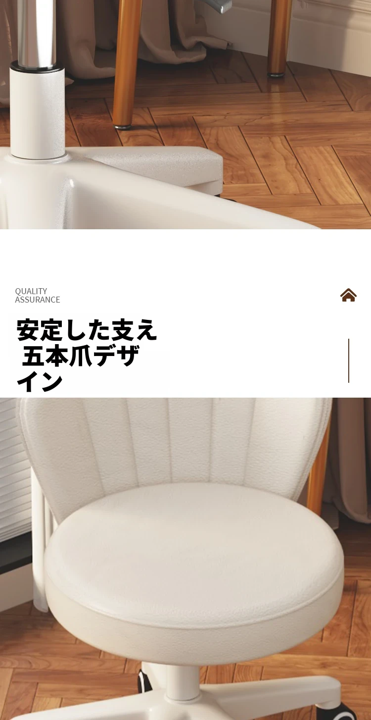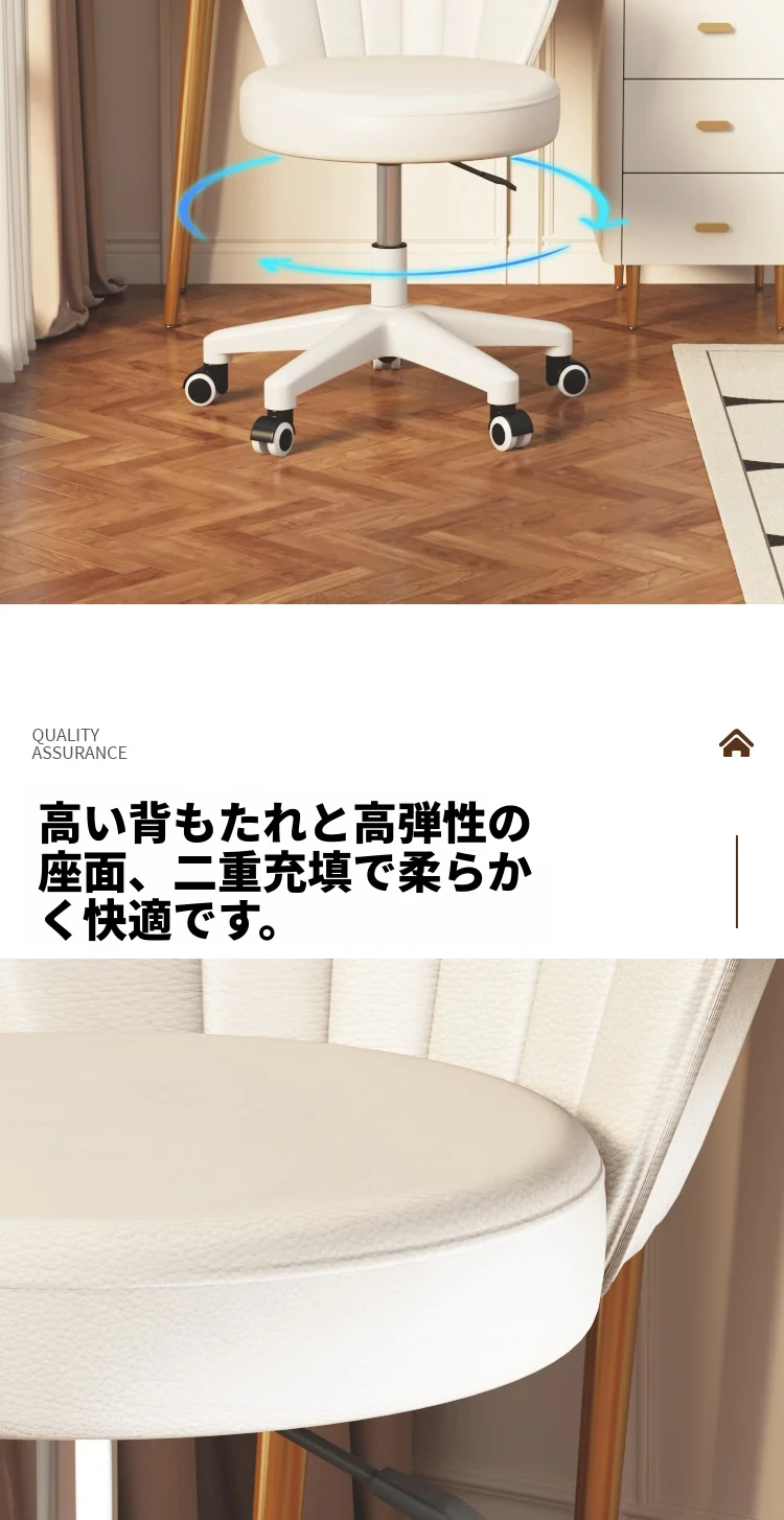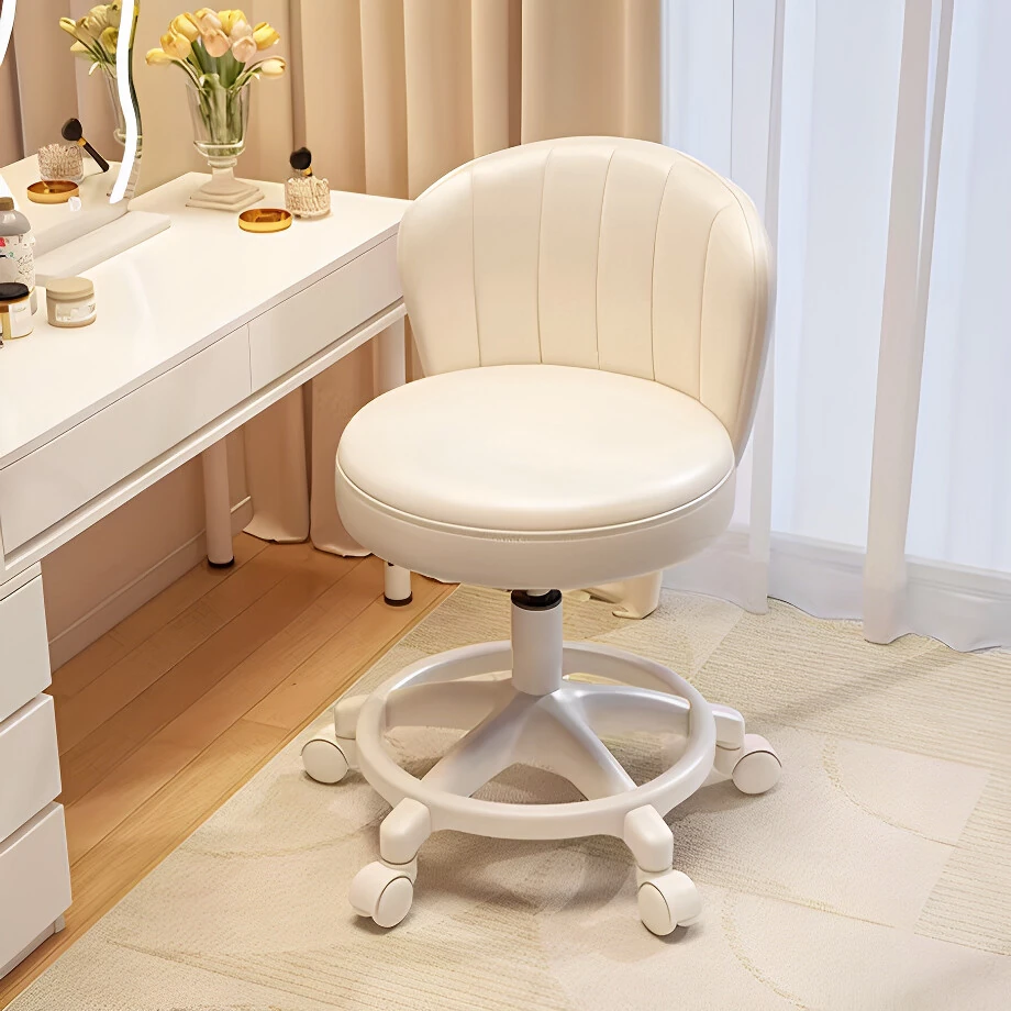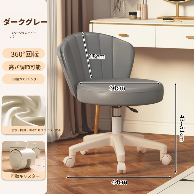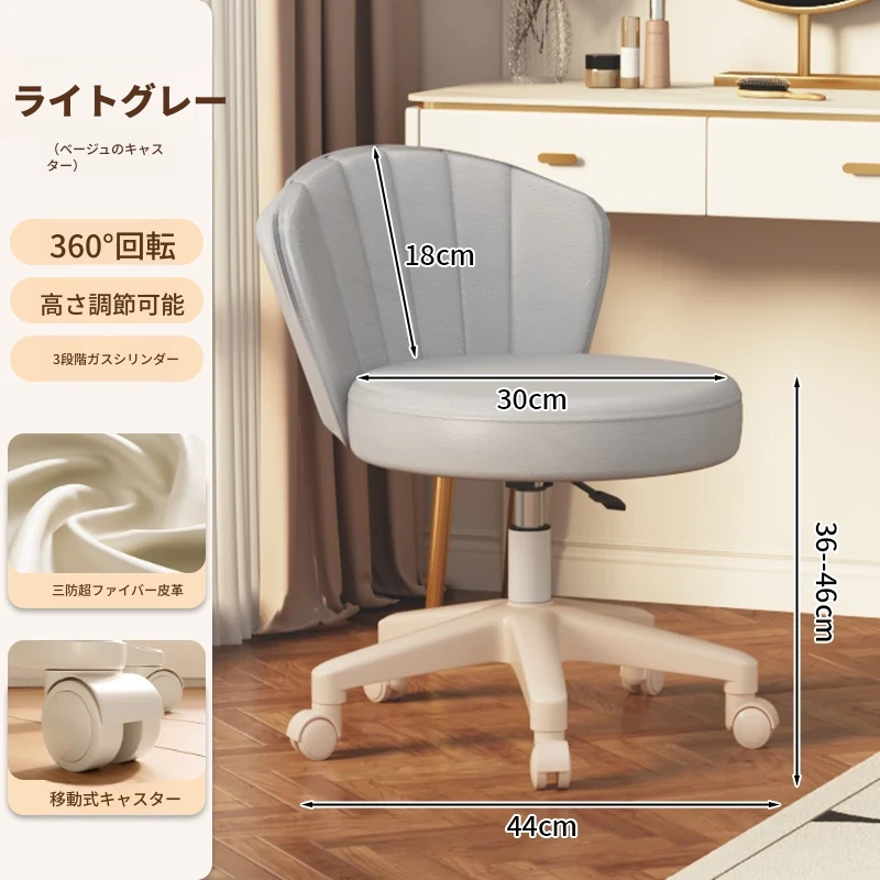 スペースを取らない!おしゃれなメイクアップスツール - 回転式クリーム風デザインの椅子で、主寝室やドレッサーにぴったり。女子のための快適な化粧タイムを演出します!