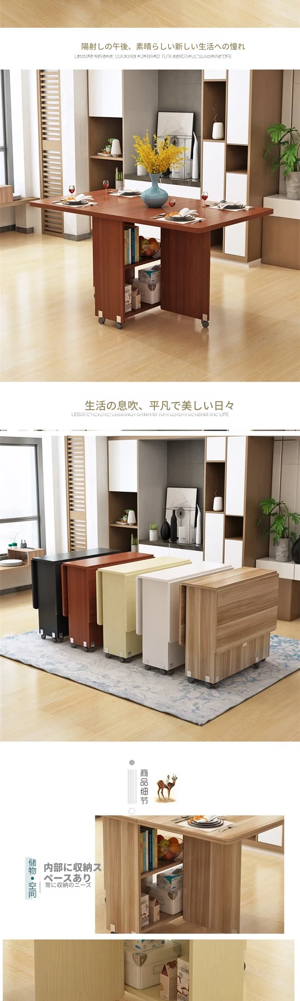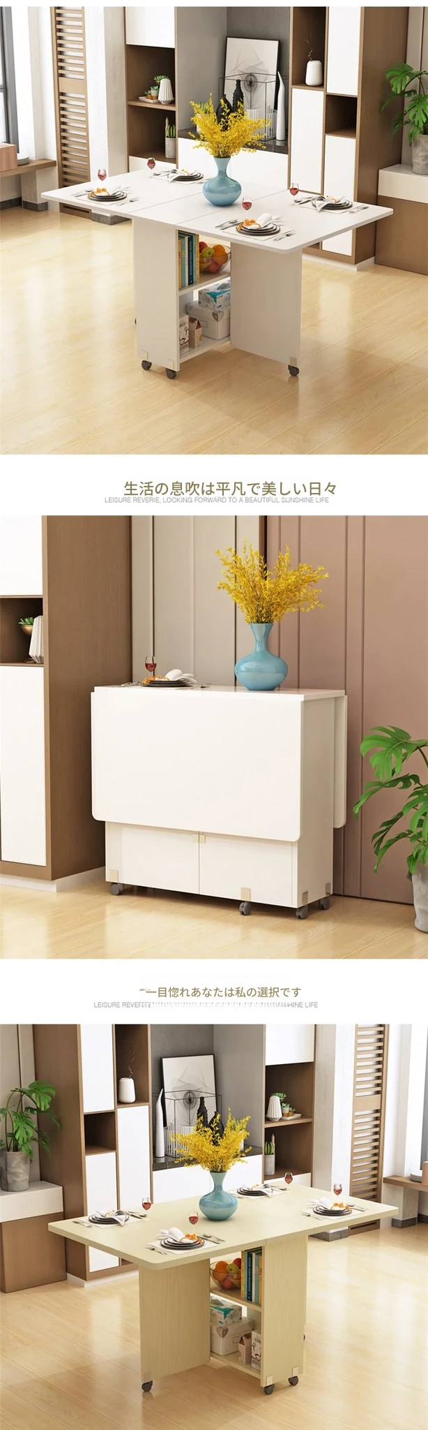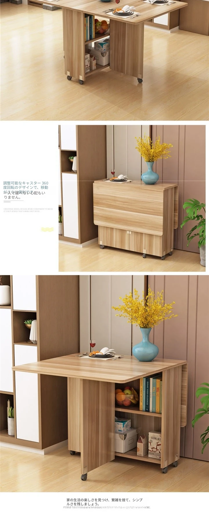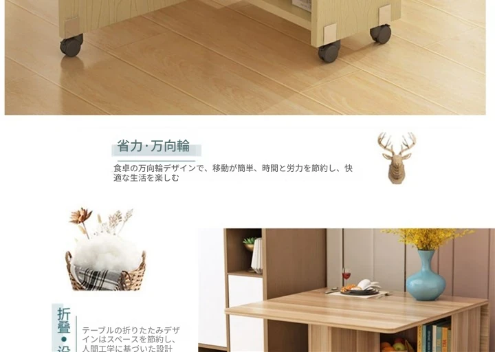 簡易折りたたみ円形テーブル|小スペースに最適|移動可能なキャスター付き|シンプルで多機能な食卓|家族団らんや友人との集まりにぴったり!