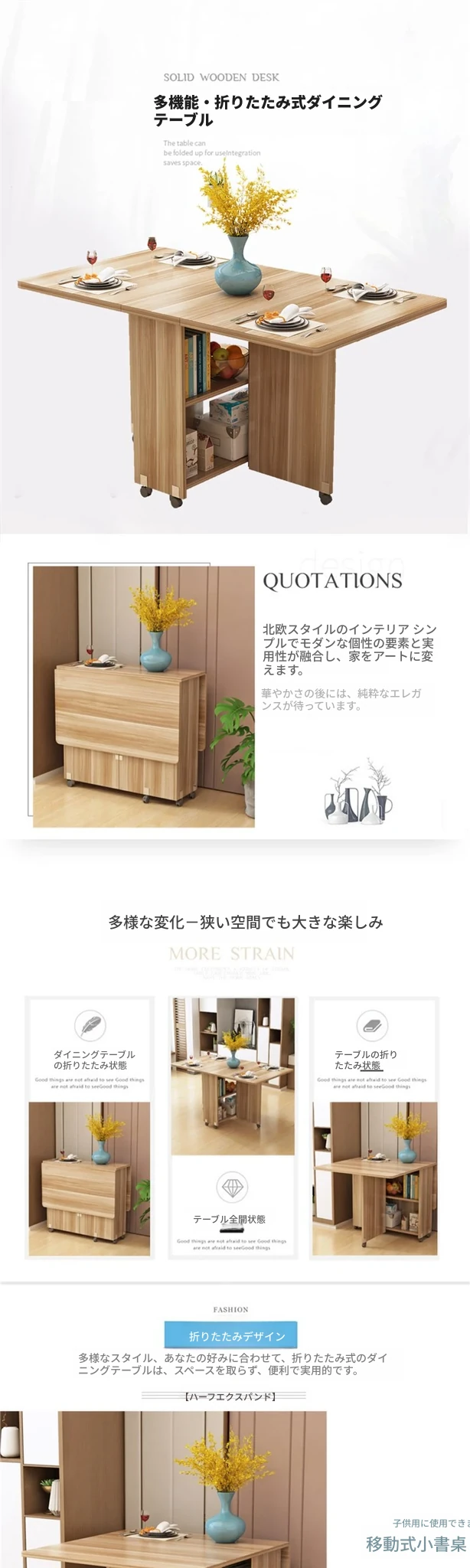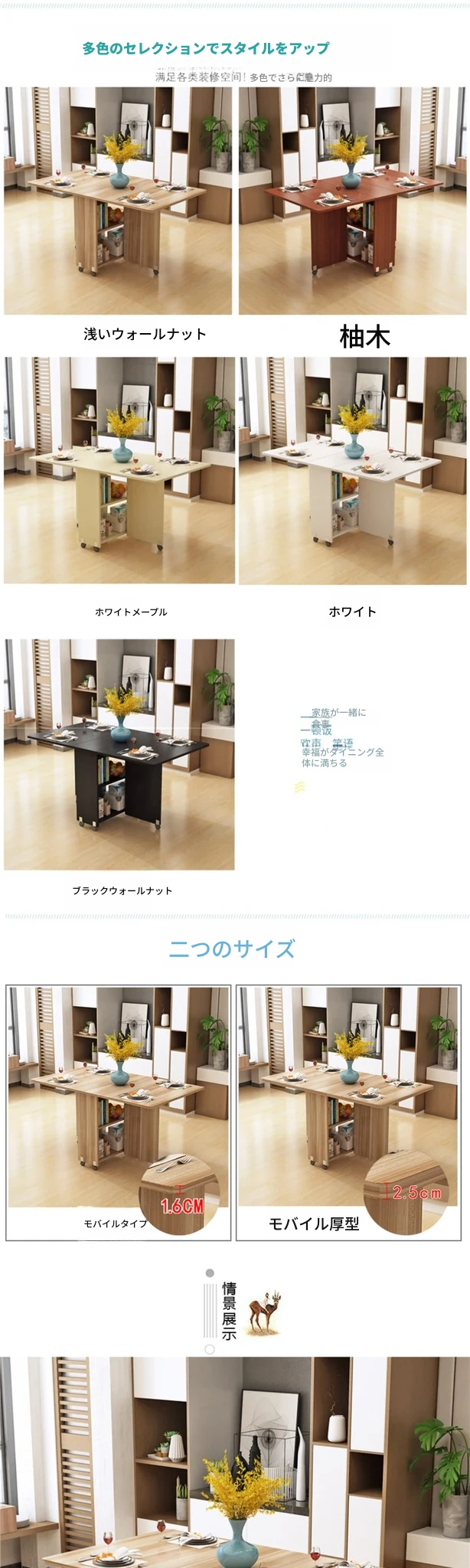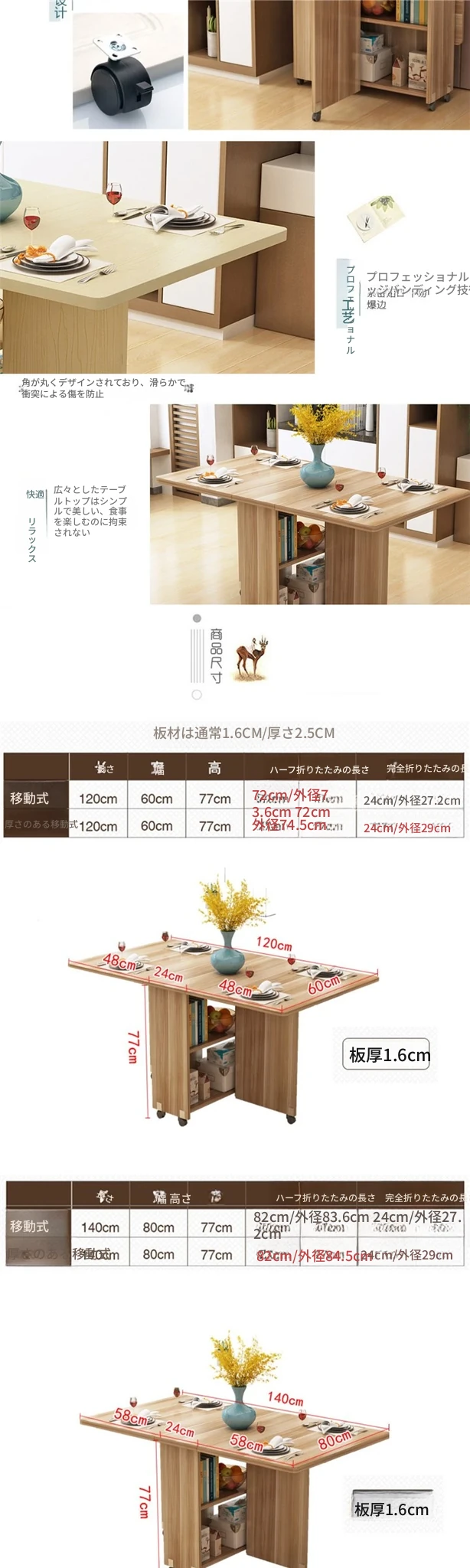 簡易折りたたみ円形テーブル|小スペースに最適|移動可能なキャスター付き|シンプルで多機能な食卓|家族団らんや友人との集まりにぴったり!