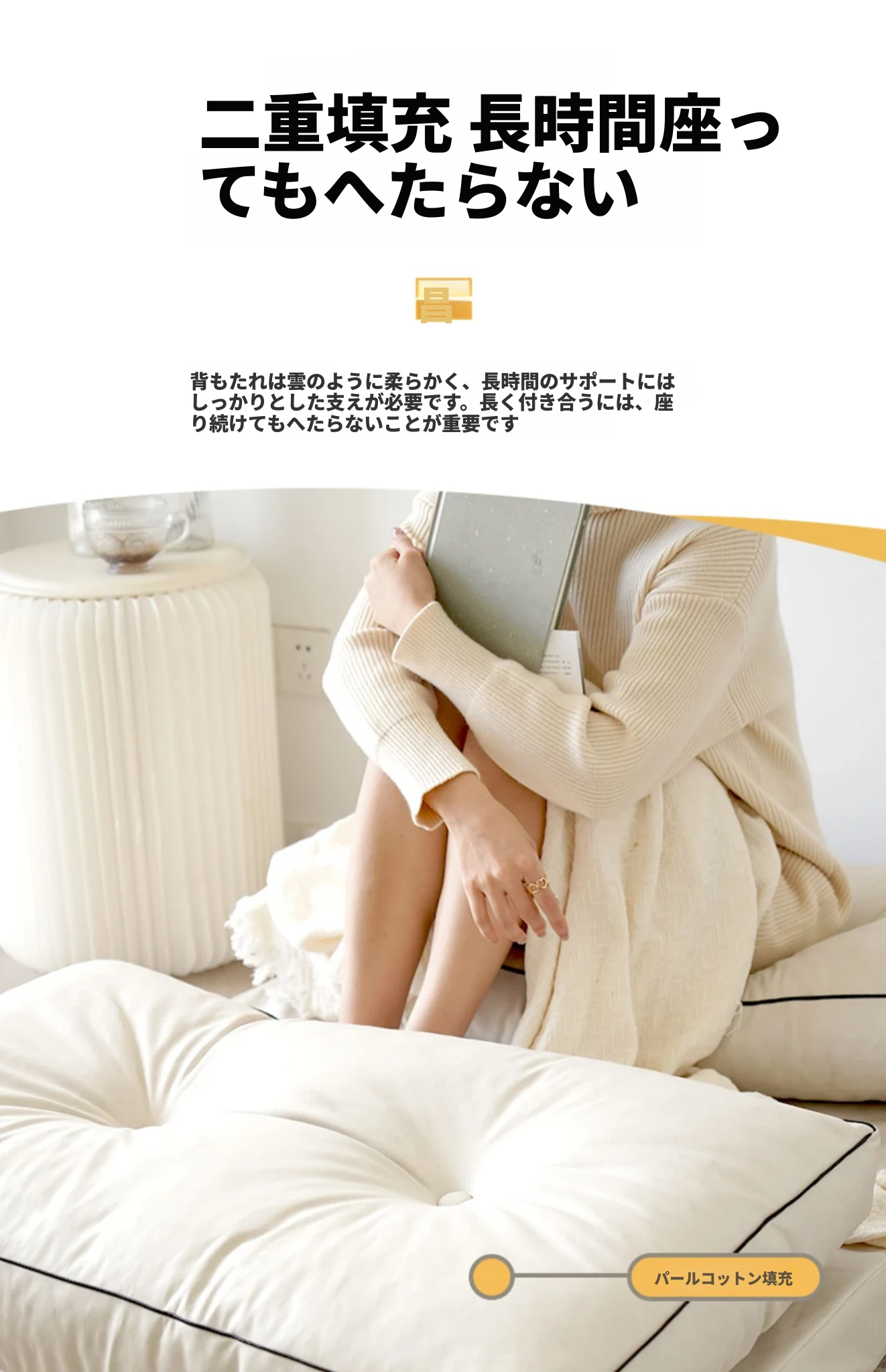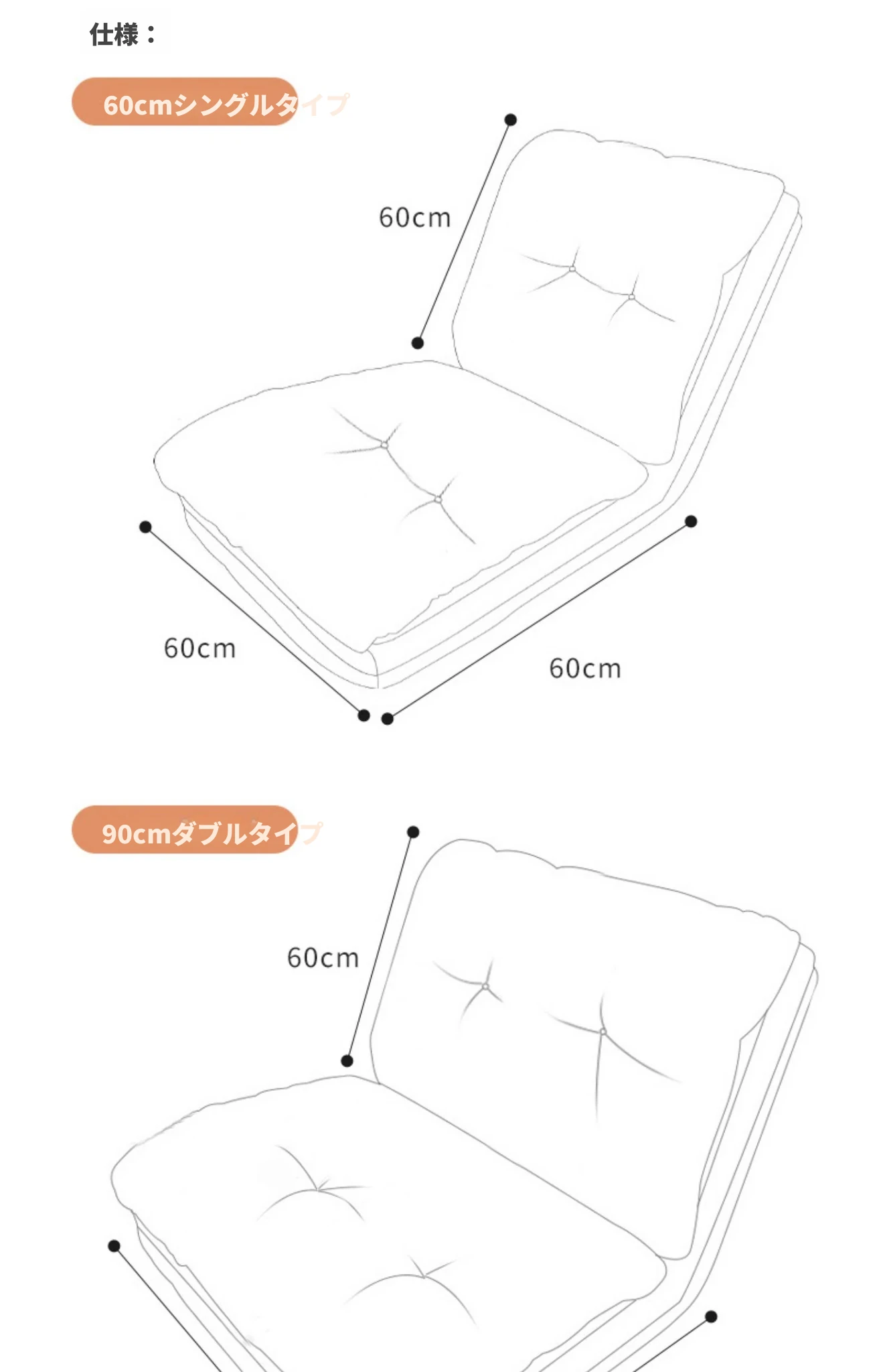 60cmアイボリーホワイト【高反発ウレタン+折りたたみ座椅子・リクライニング用】