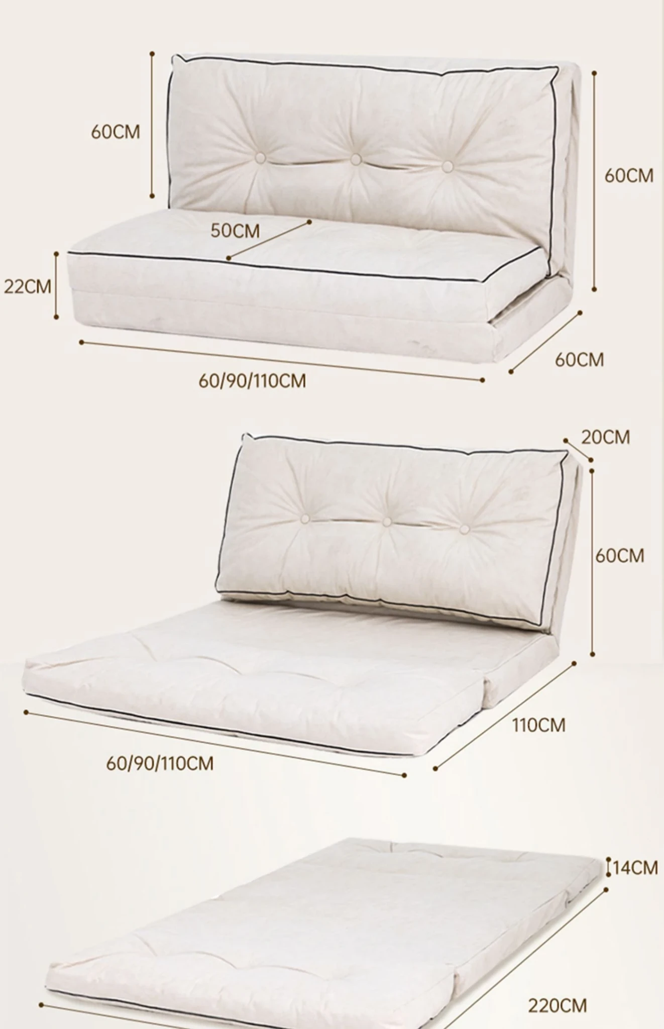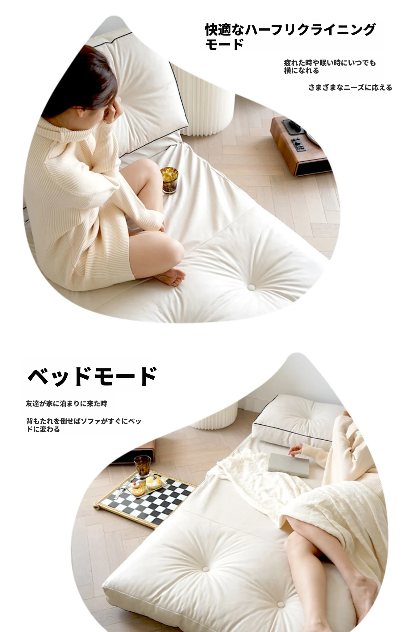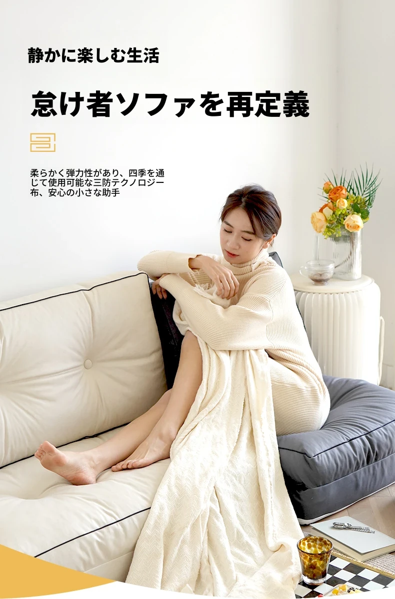 リラックスソファ|バルコニー・リビング・寝室に最適!コンパクトな小型タイプ、寝転んだり、寝たりできる折りたたみ2WAYソファベッド。シングル・ダブル両用で、快適なひとときを提供します!