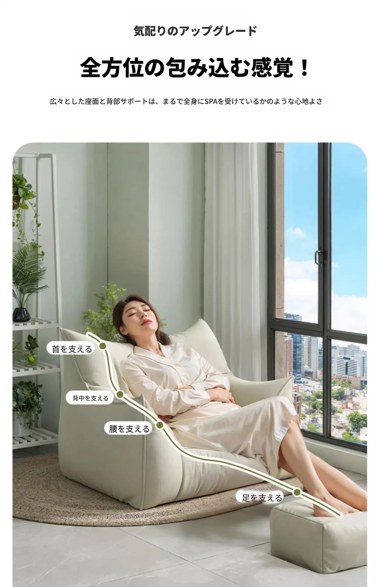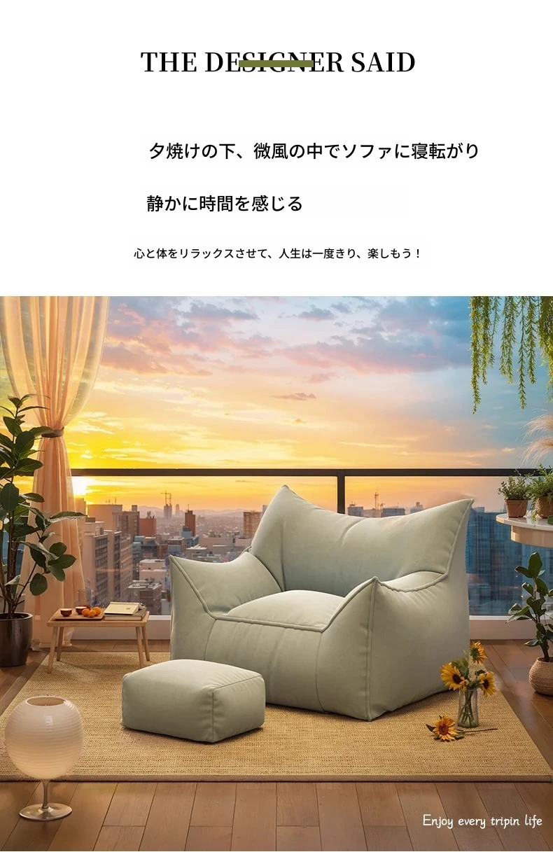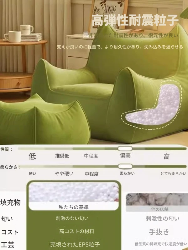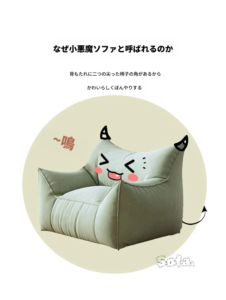 おしゃれで快適!リラックスできる悪魔のソファチェア - 寝室やバルコニーにぴったりな豆袋ソファ。賃貸にも最適なタタミスタイルのシングルチェアで、あなたの空間を素敵に演出!