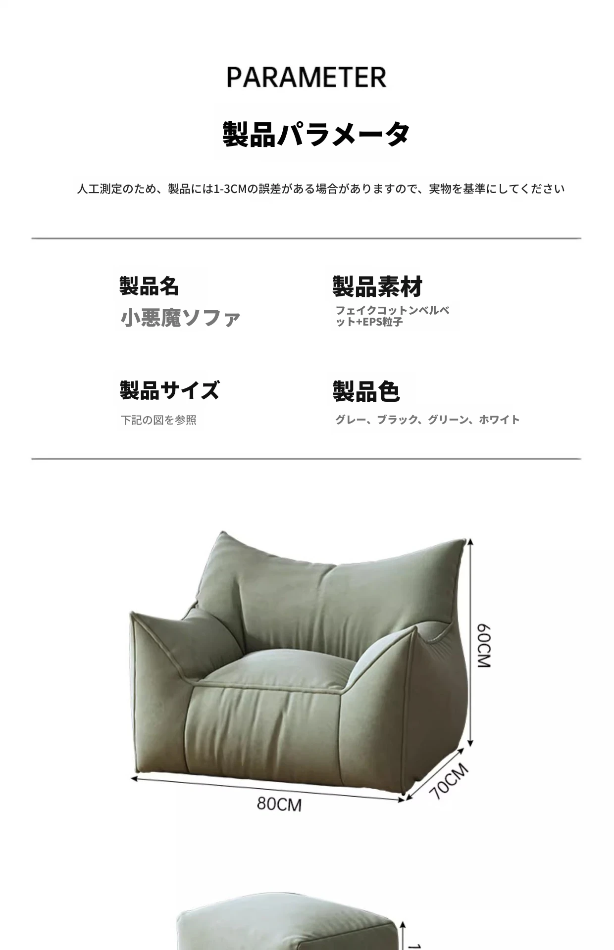 【小悪魔】抹茶グリーン ソファ+オットマン