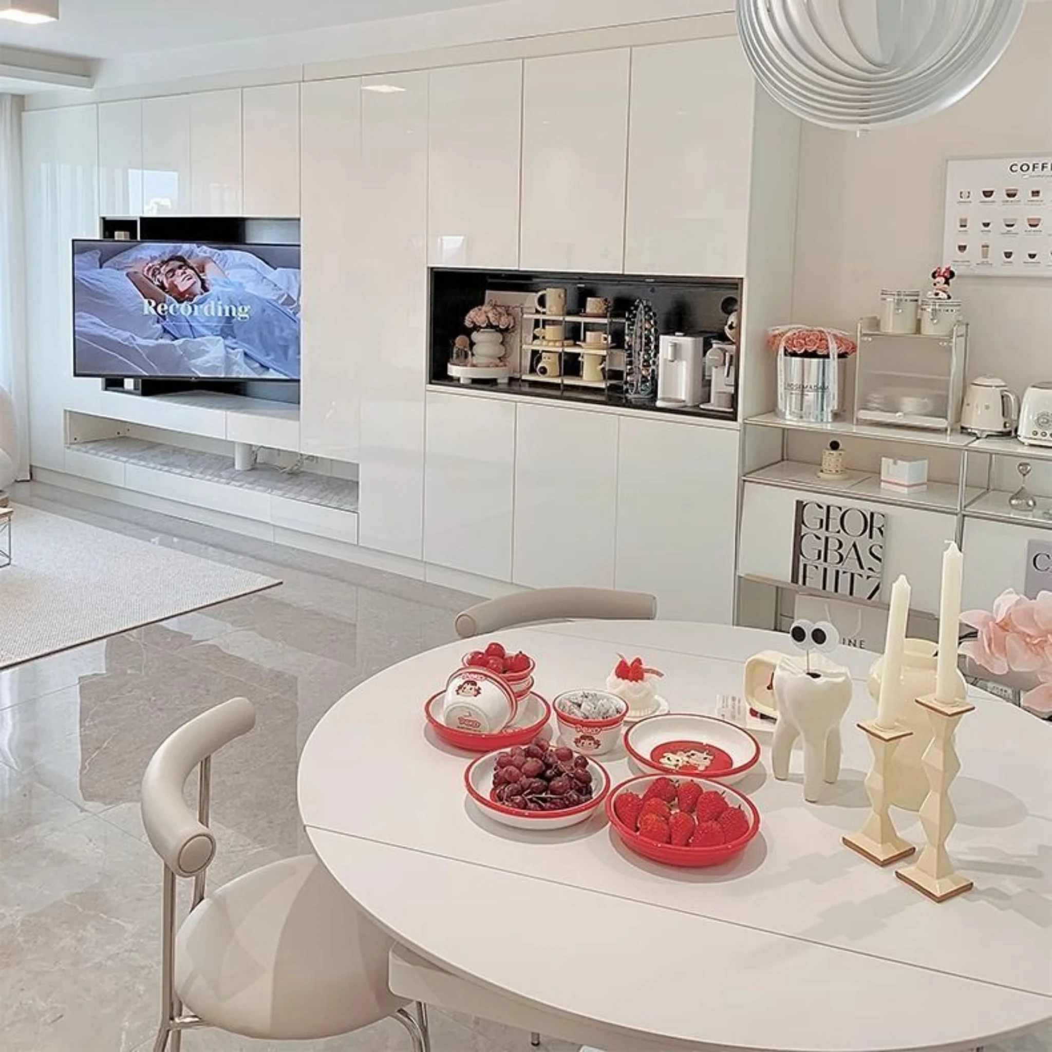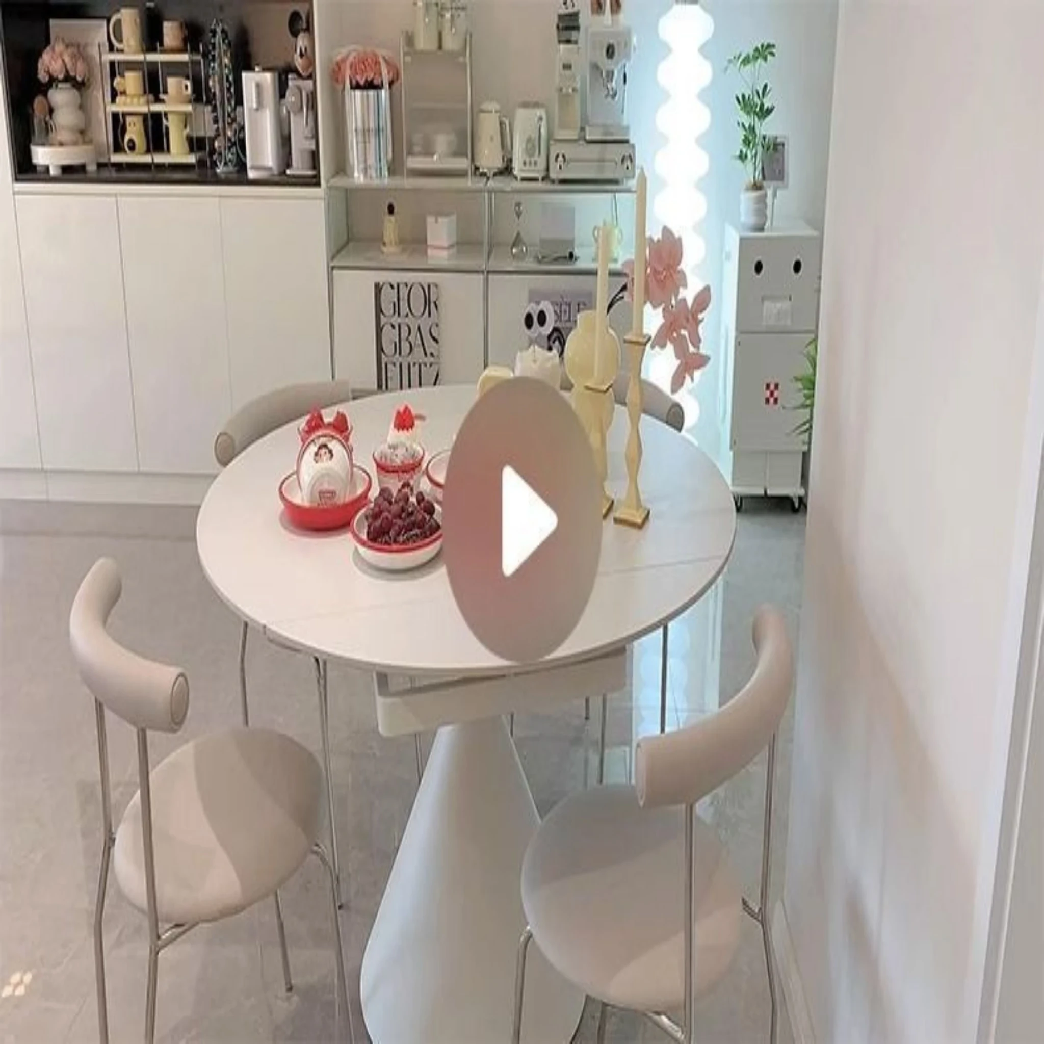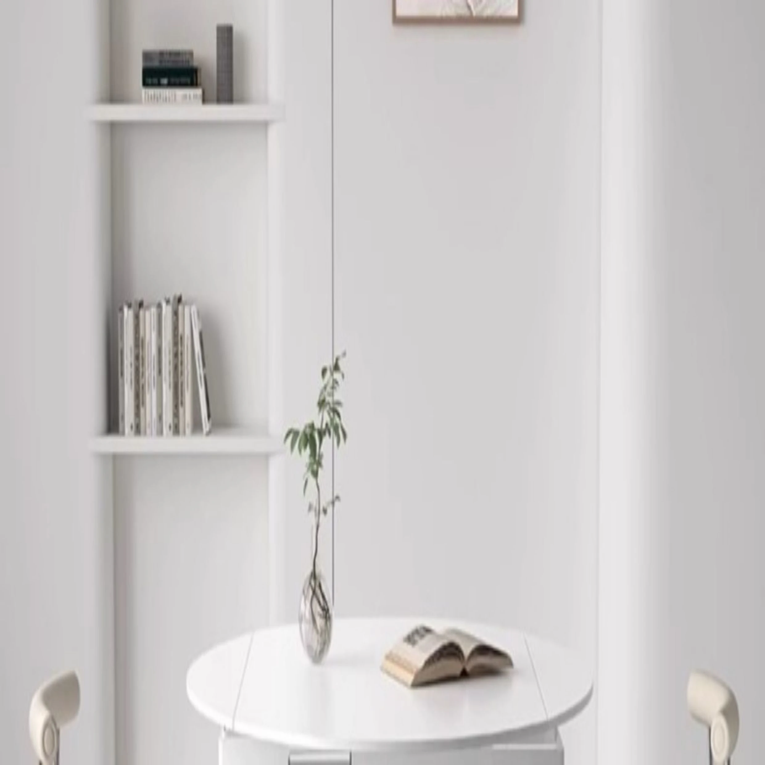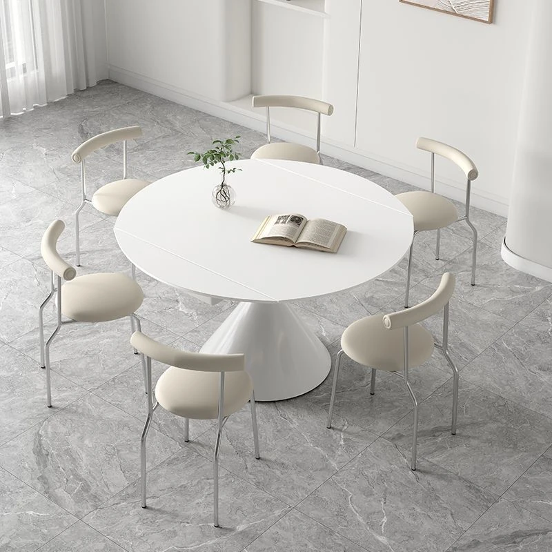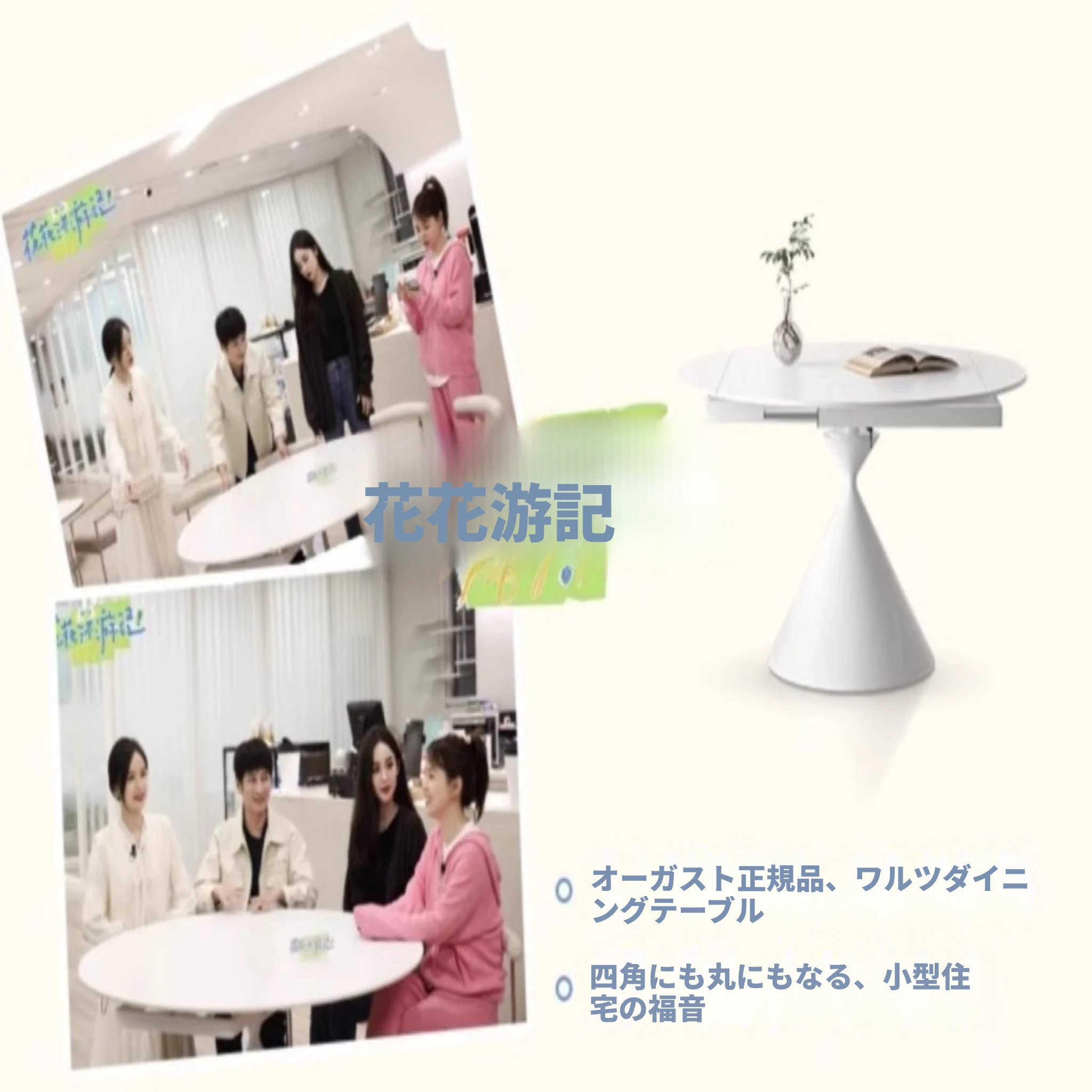 クリーム風味の純白マット仕上げのロックプレートテーブル!回転式・伸縮可能なワルツスタイル、四角から円形に変形できる便利な2WAYテーブル。どんなインテリアにもぴったり!