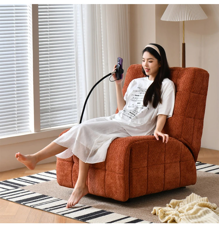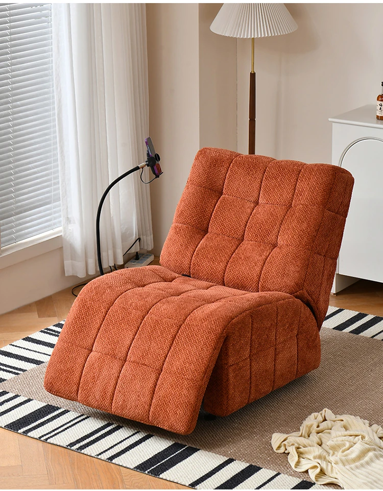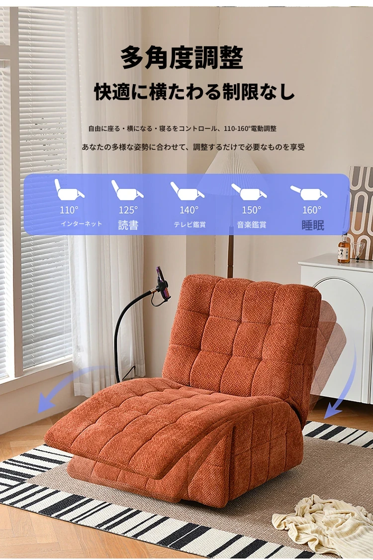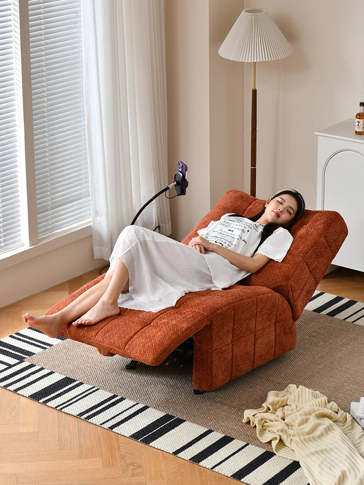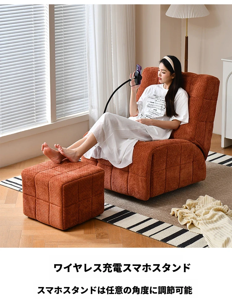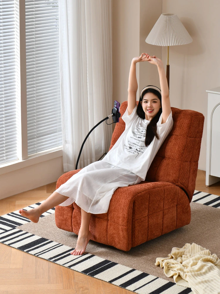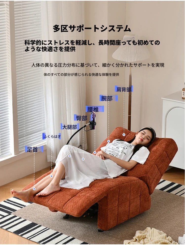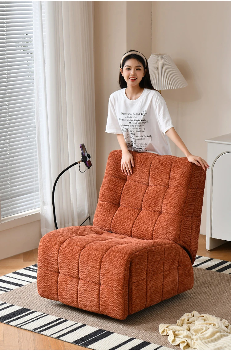 布製リラックスラウンジソファ 椅子のように座れる&寝れる!リビング、寝室、バルコニーに最適なデザイナーズロッキングチェア。快適さとスタイルを兼ね備えた一人用リラックスチェア!