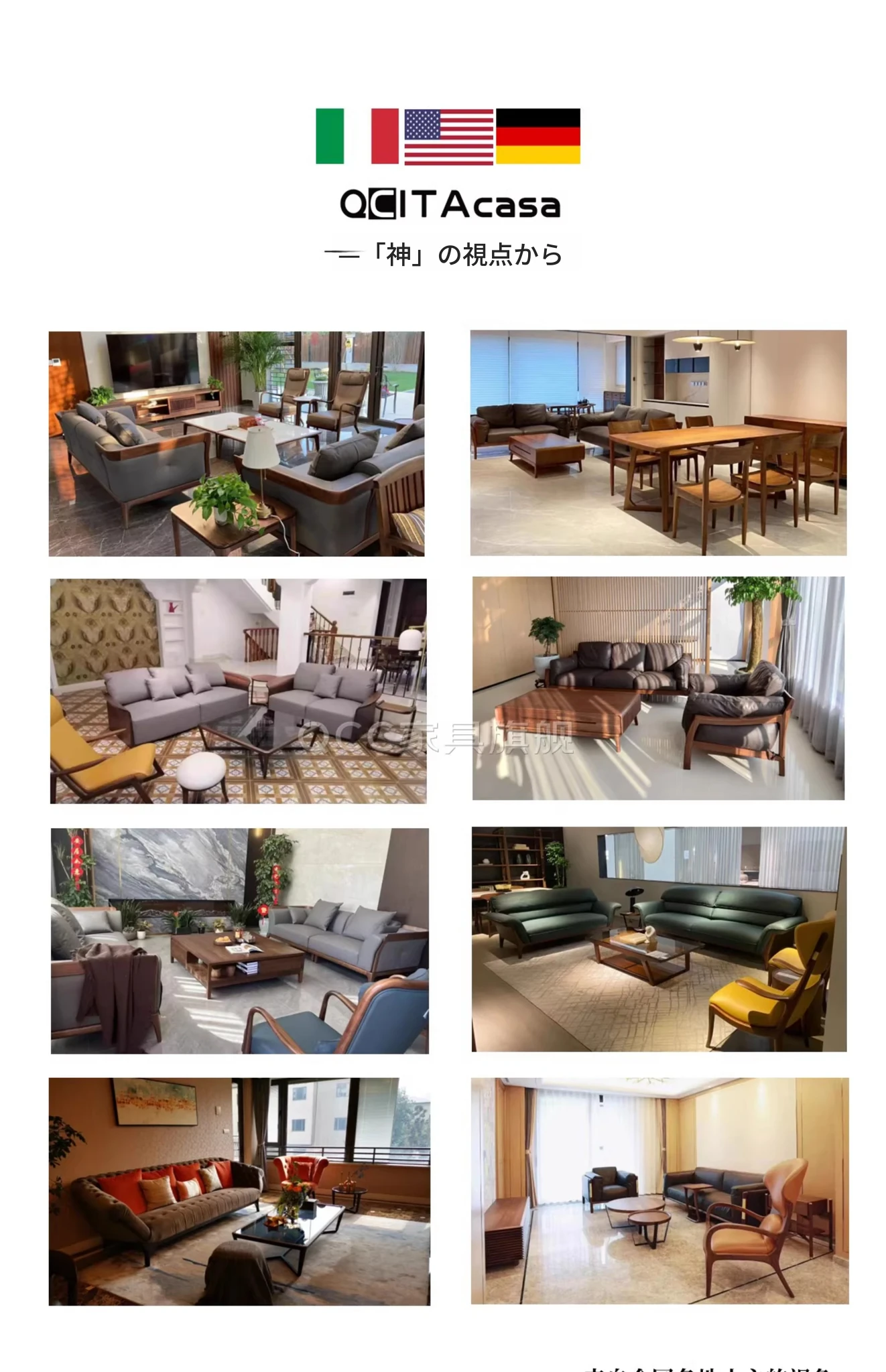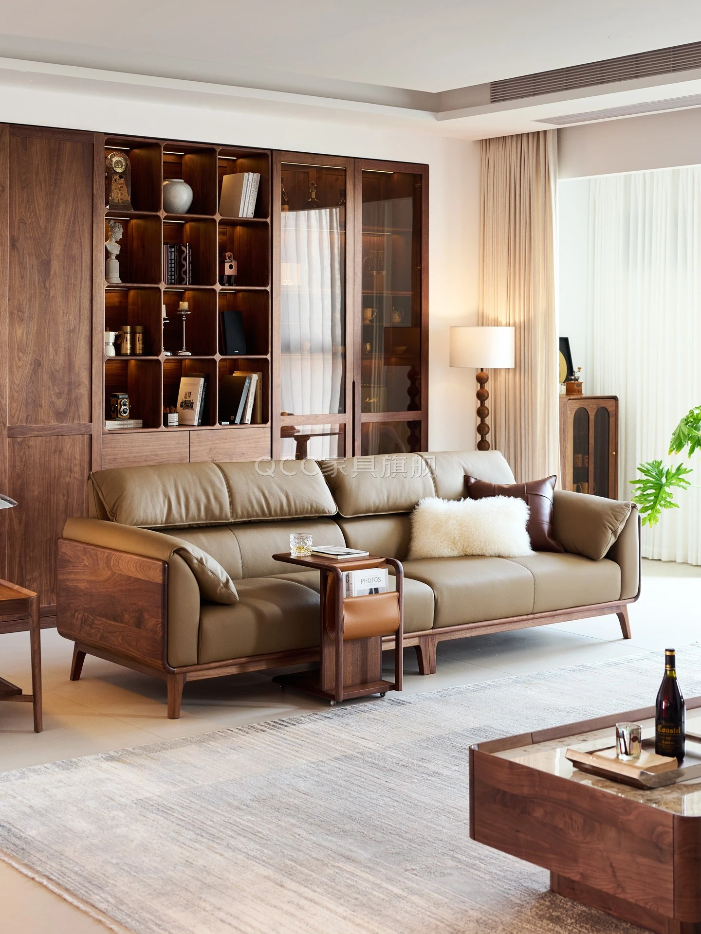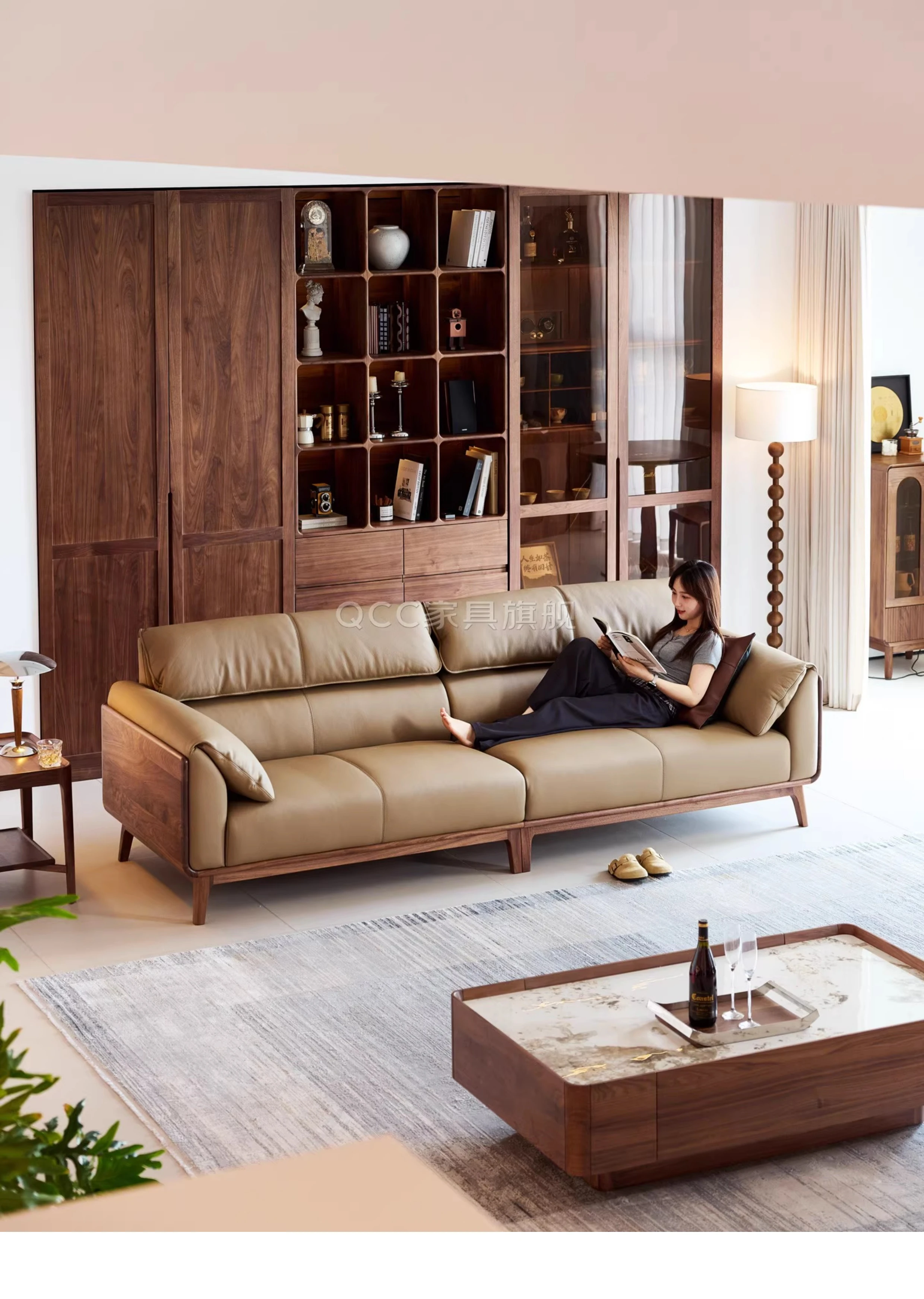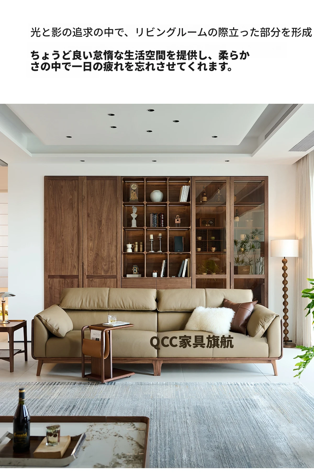 北米産ブラックウォールナットソファー デザイナーズ新中式スタイル 高級無垢材使用 本革4人掛け イタリアンミニマリズムの美しさを追求したリビングの中心に最適!
