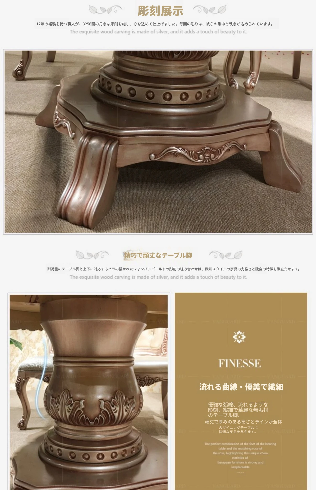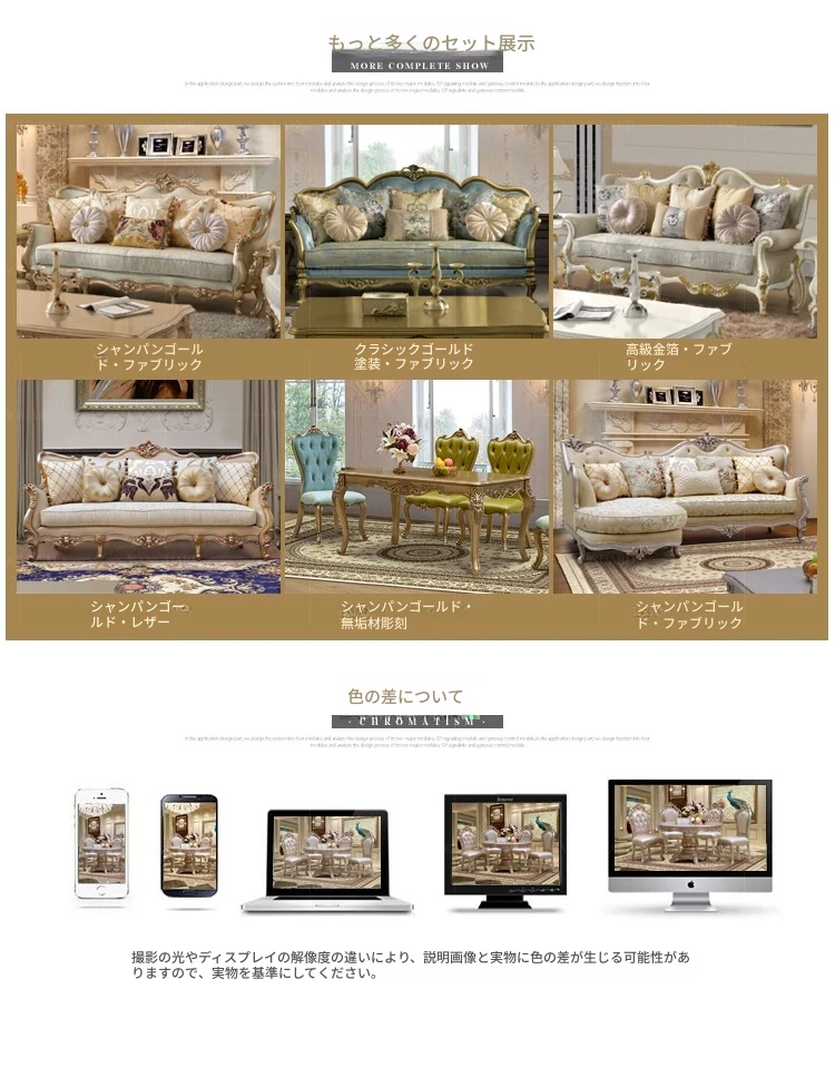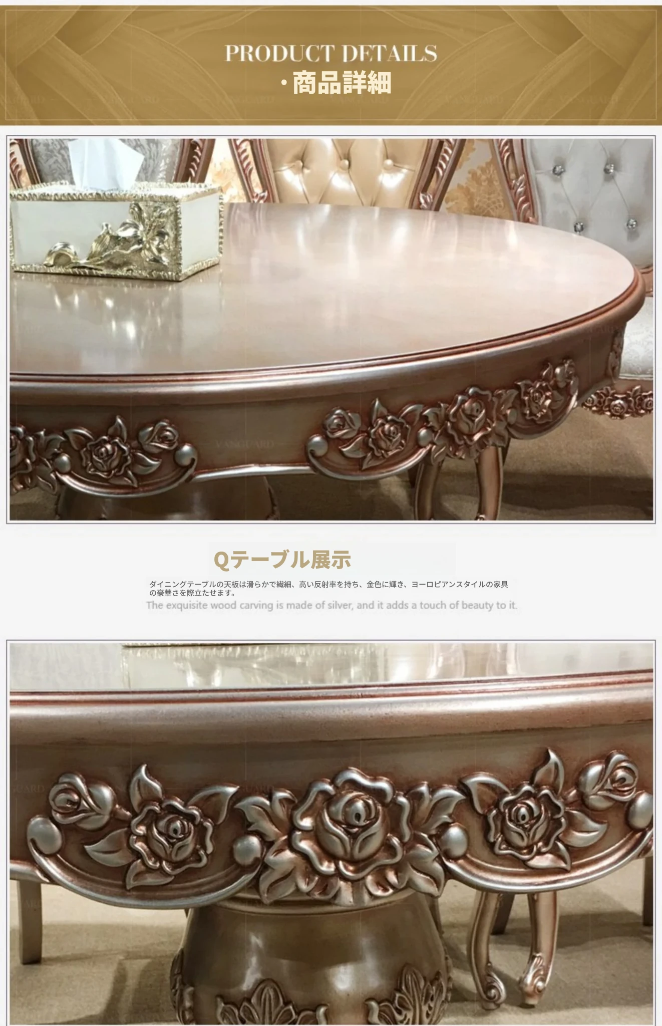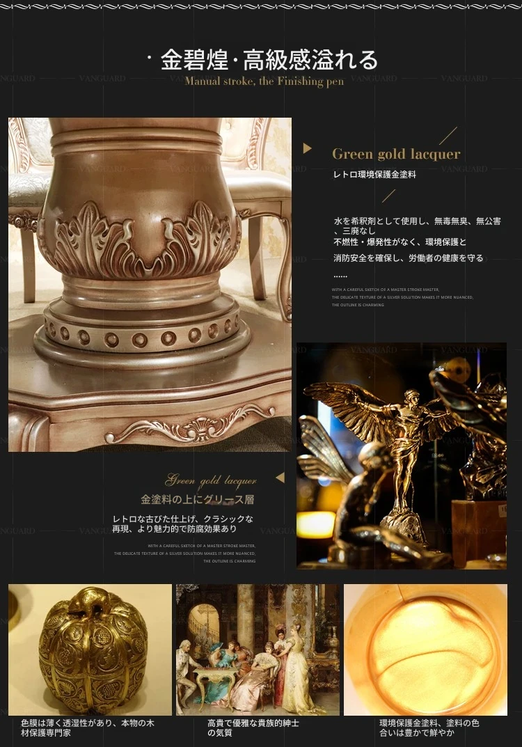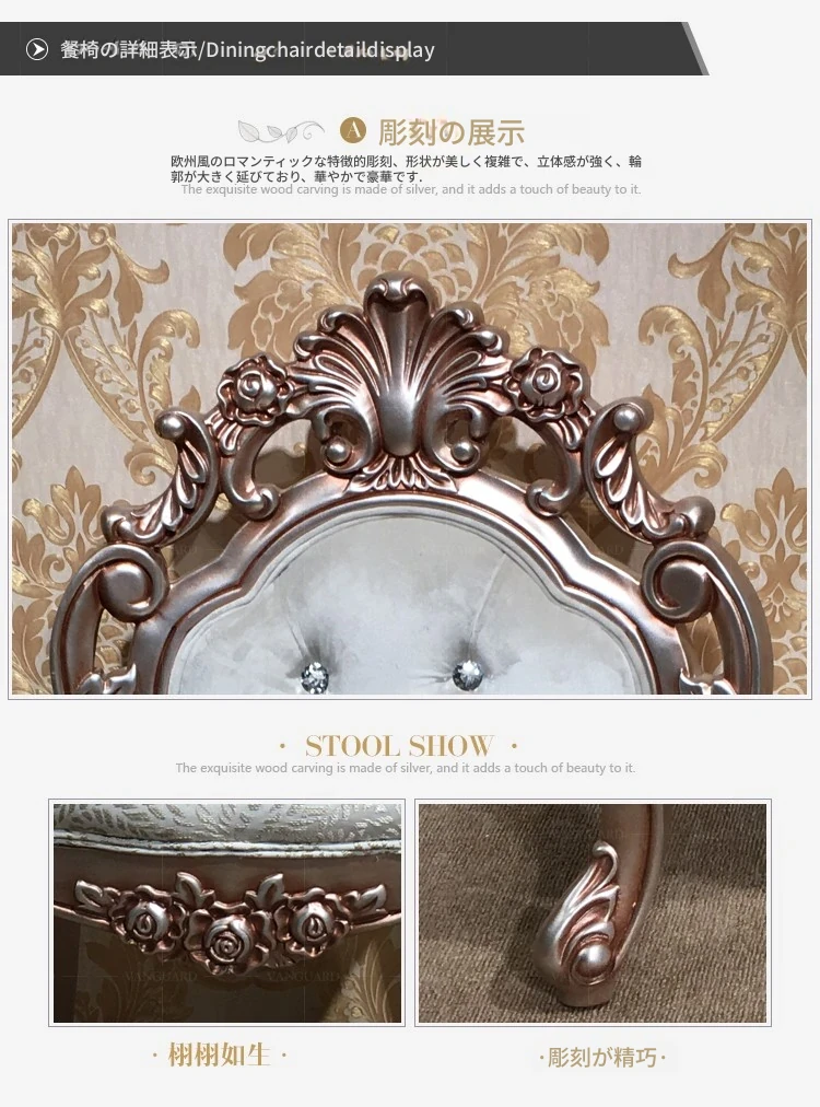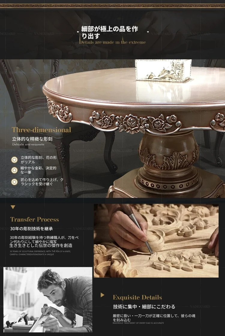 ヨーロピアンスタイルの無垢材ダイニングテーブルセット - 新古典主義のラグジュアリーな円形テーブルと6脚の椅子、小型住宅に最適な一品。家族団らんやおもてなしにぴったり!