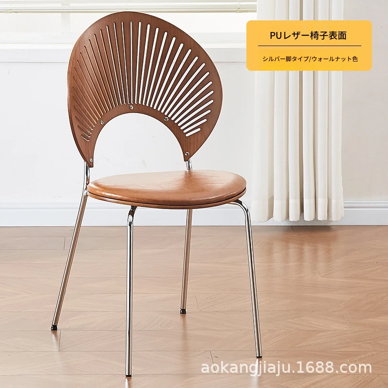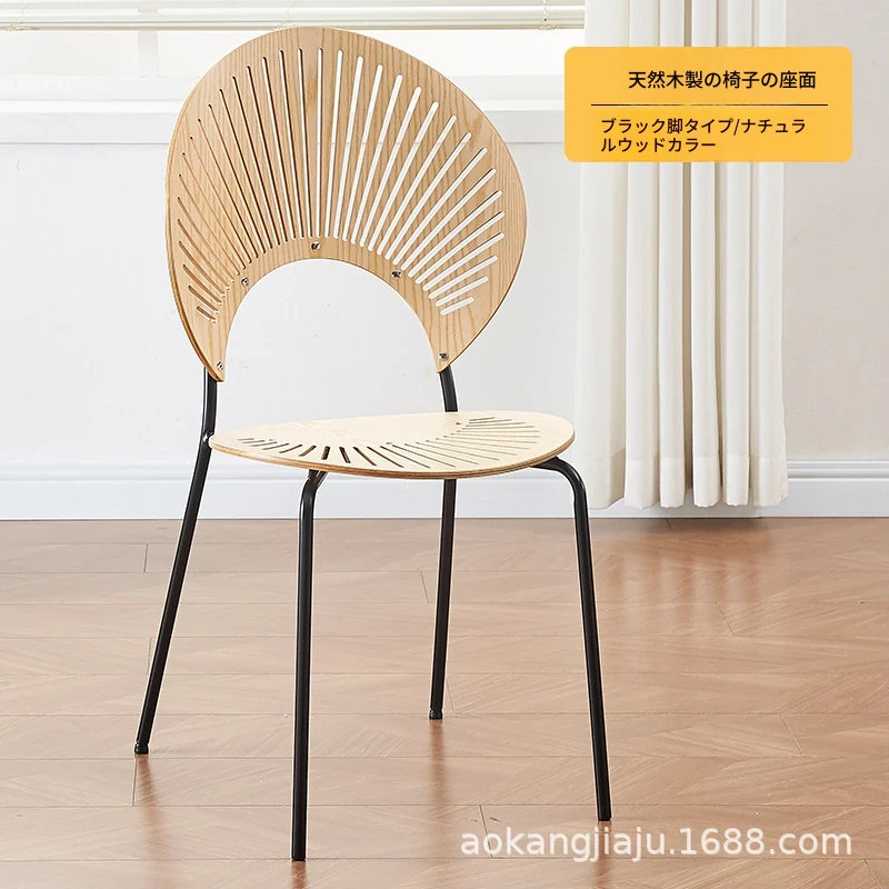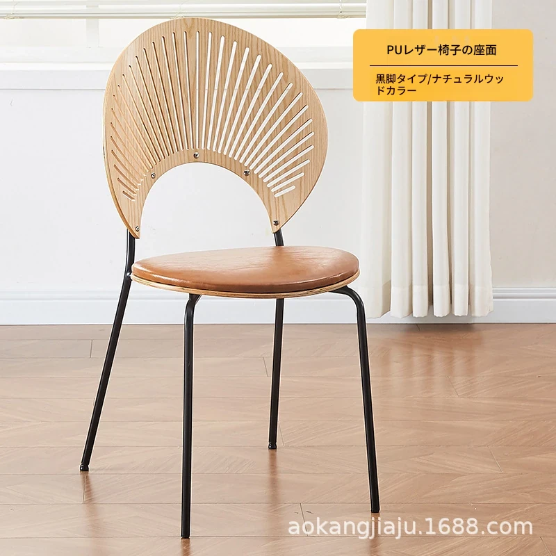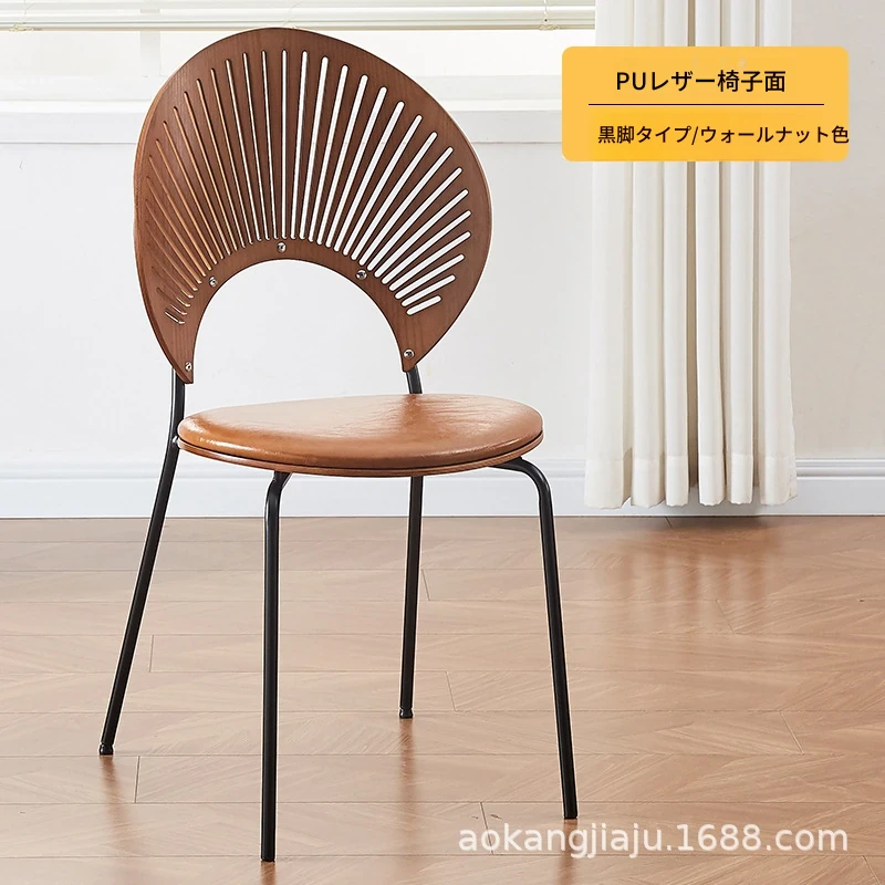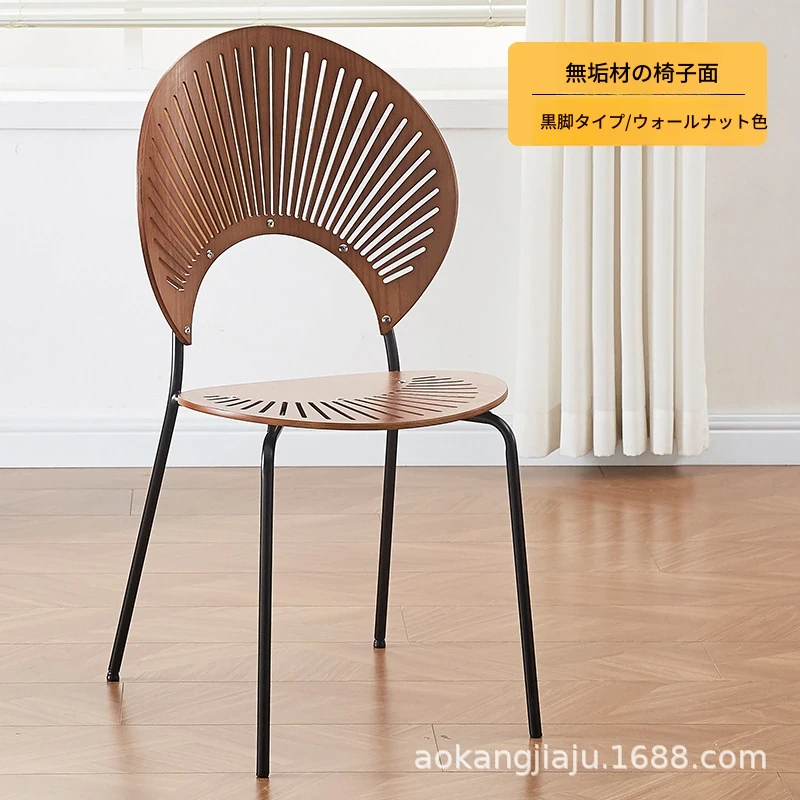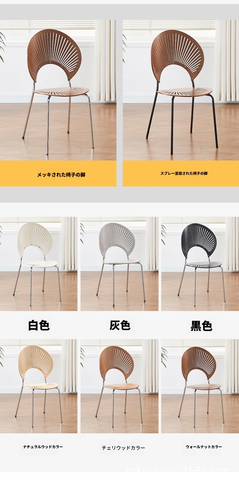 シェルチェア フランス風 無垢材 ダイニングチェア 家庭用 背もたれ付き 化粧台スツール 人気のシンプルモダン 扇形デザイン アンティーク風チェア