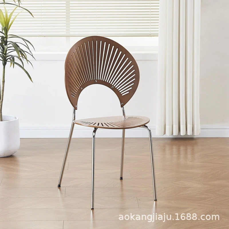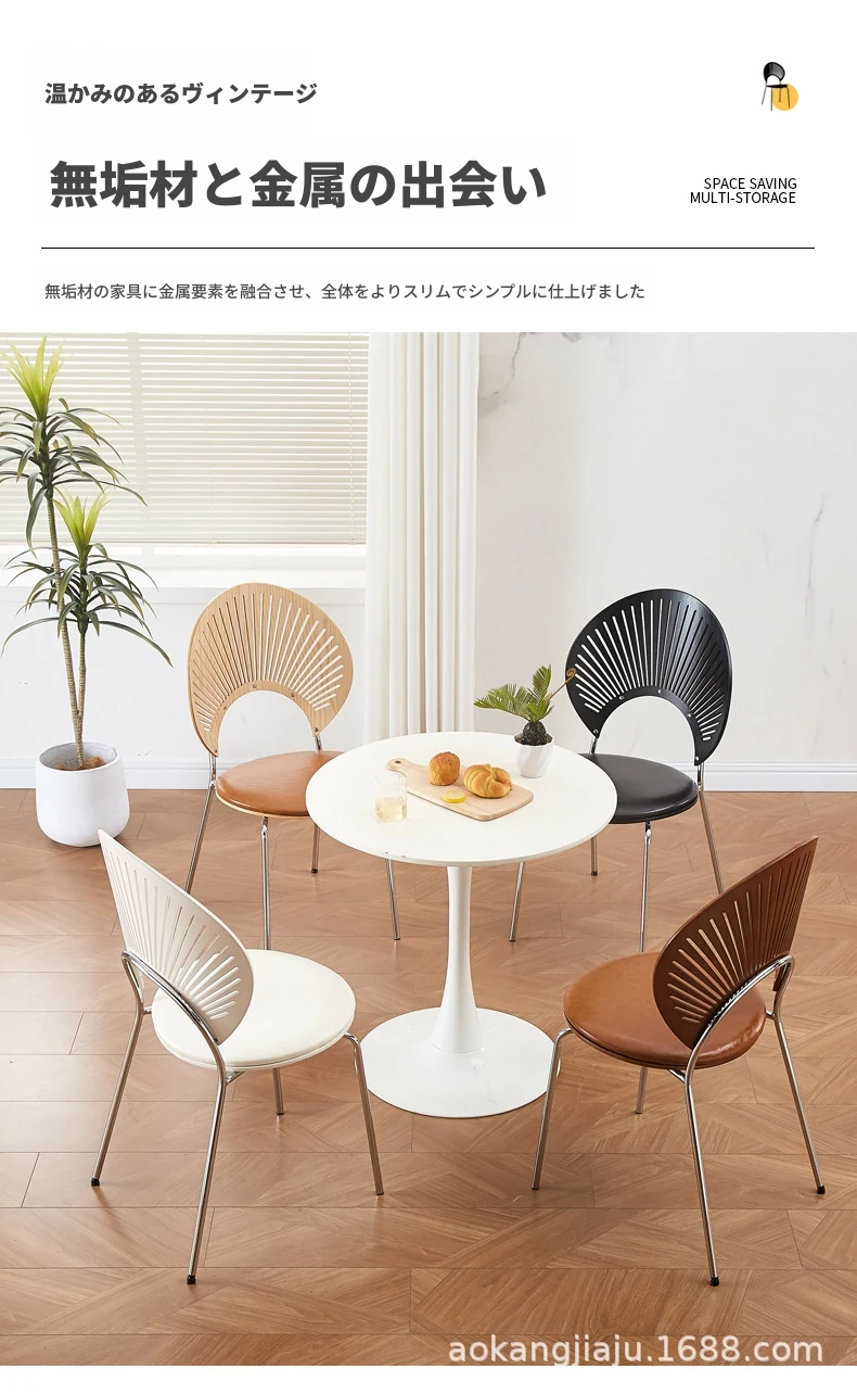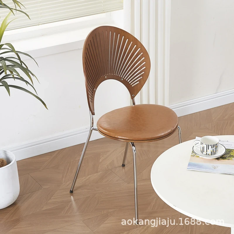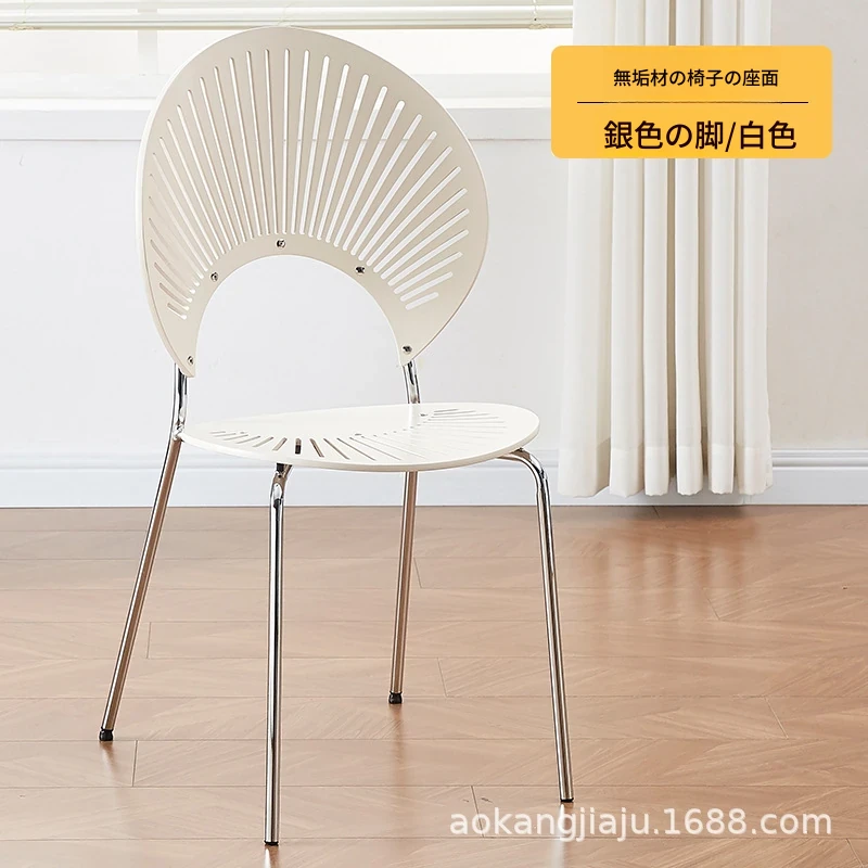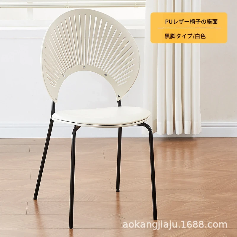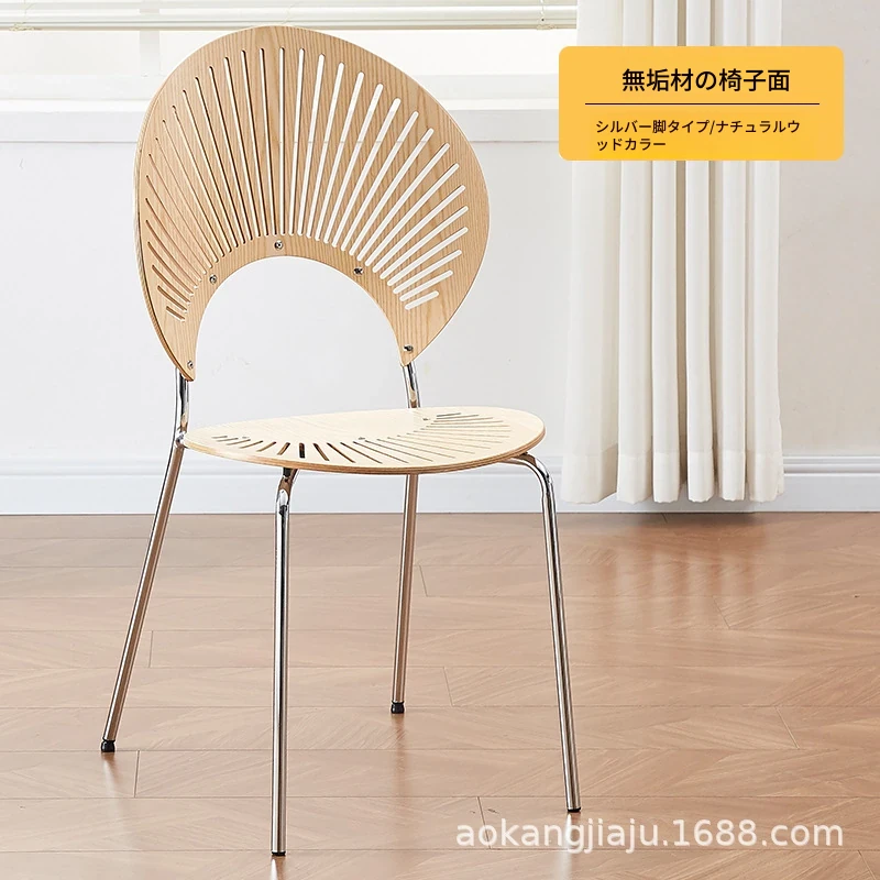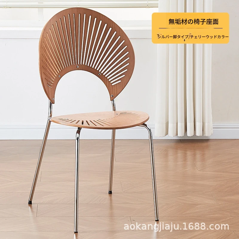 シェルチェア フランス風 無垢材 ダイニングチェア 家庭用 背もたれ付き 化粧台スツール 人気のシンプルモダン 扇形デザイン アンティーク風チェア