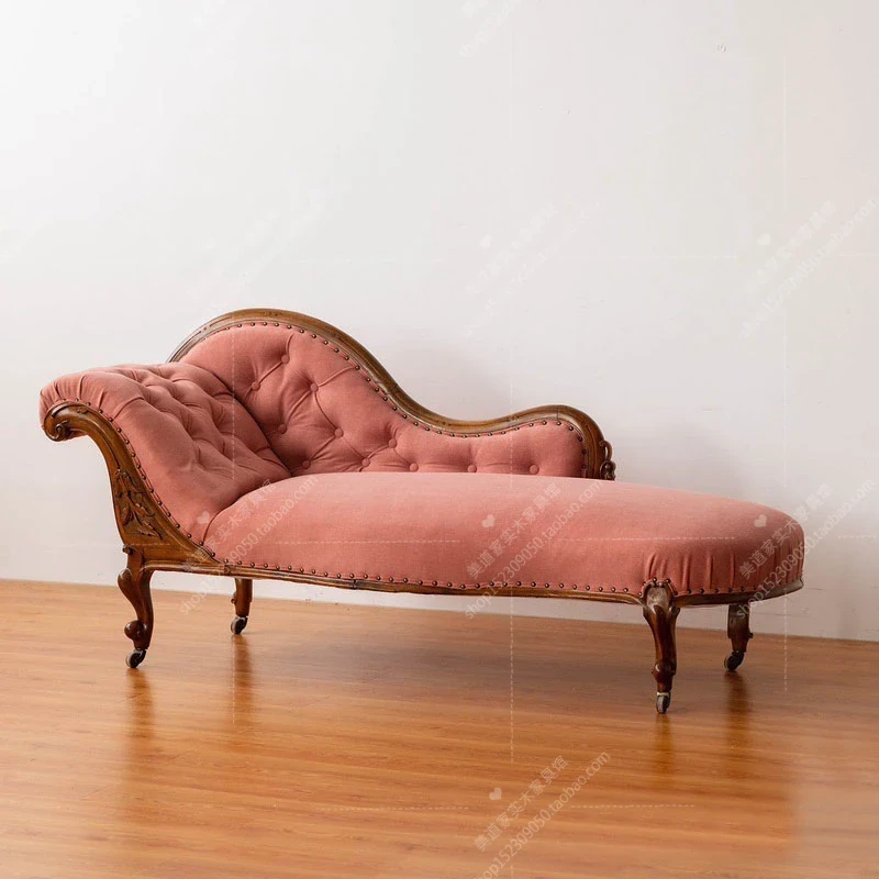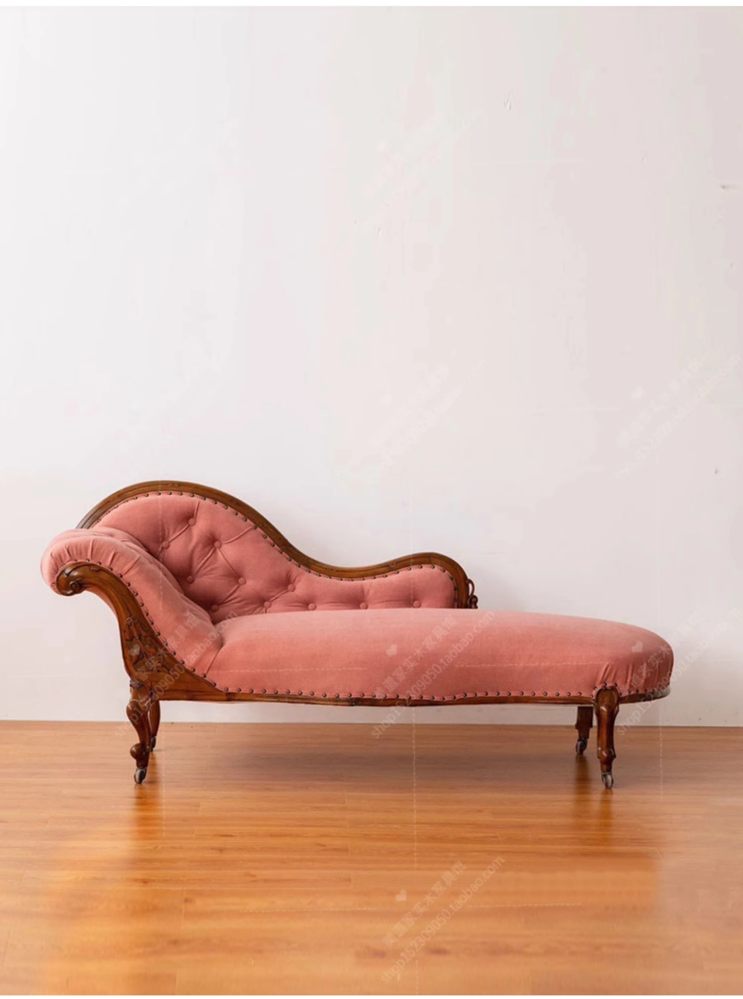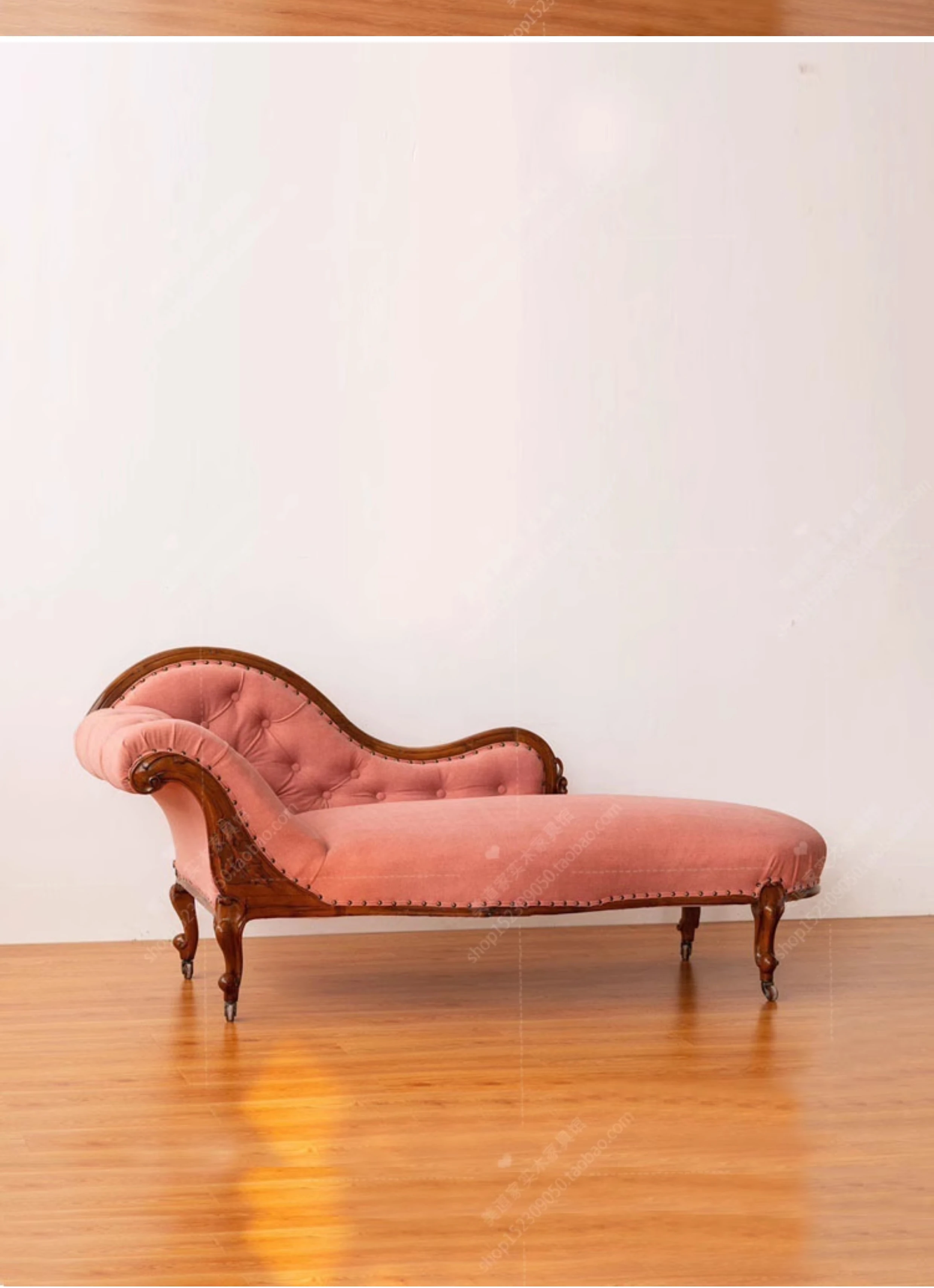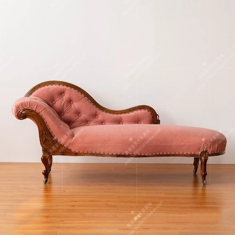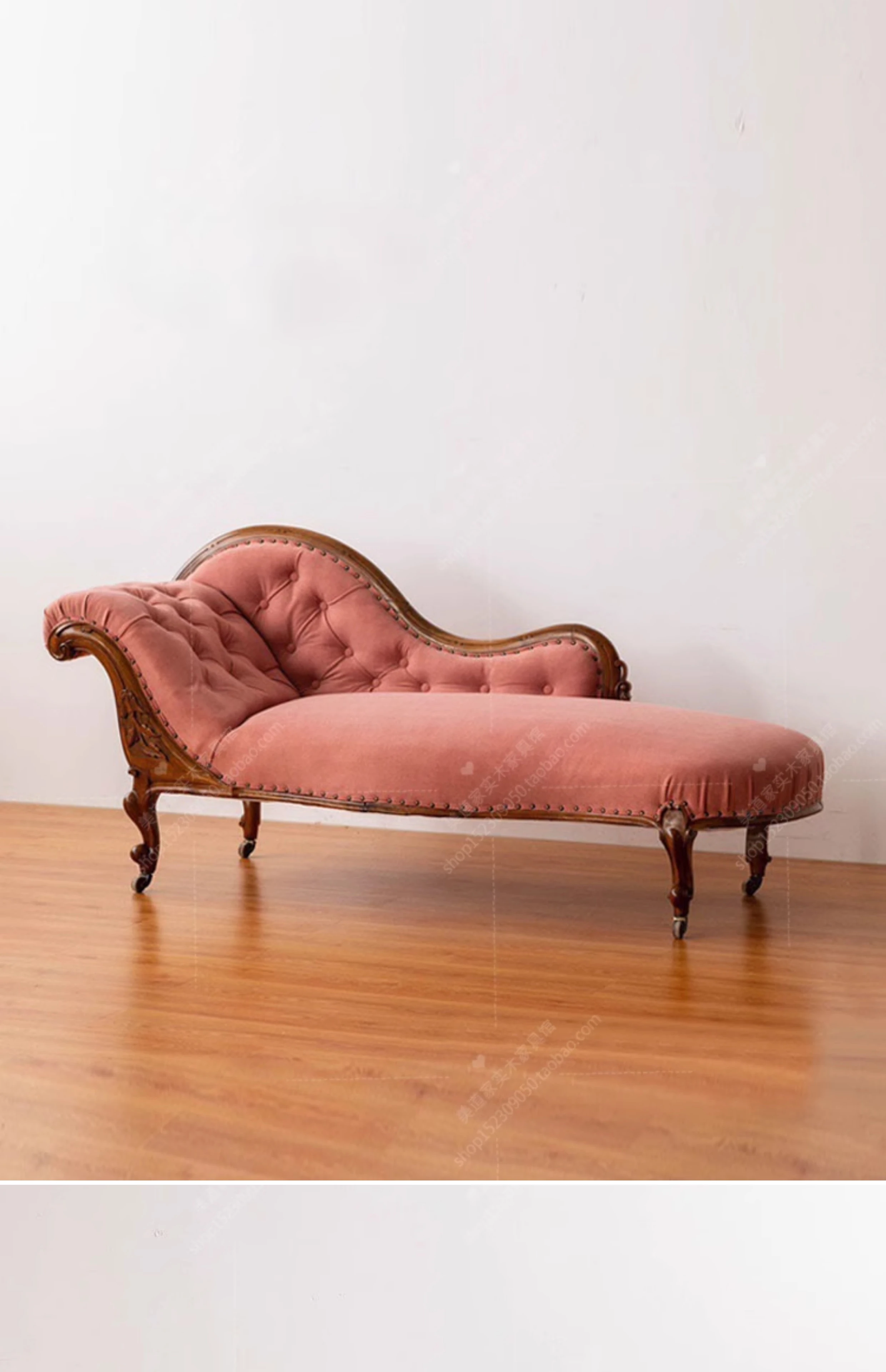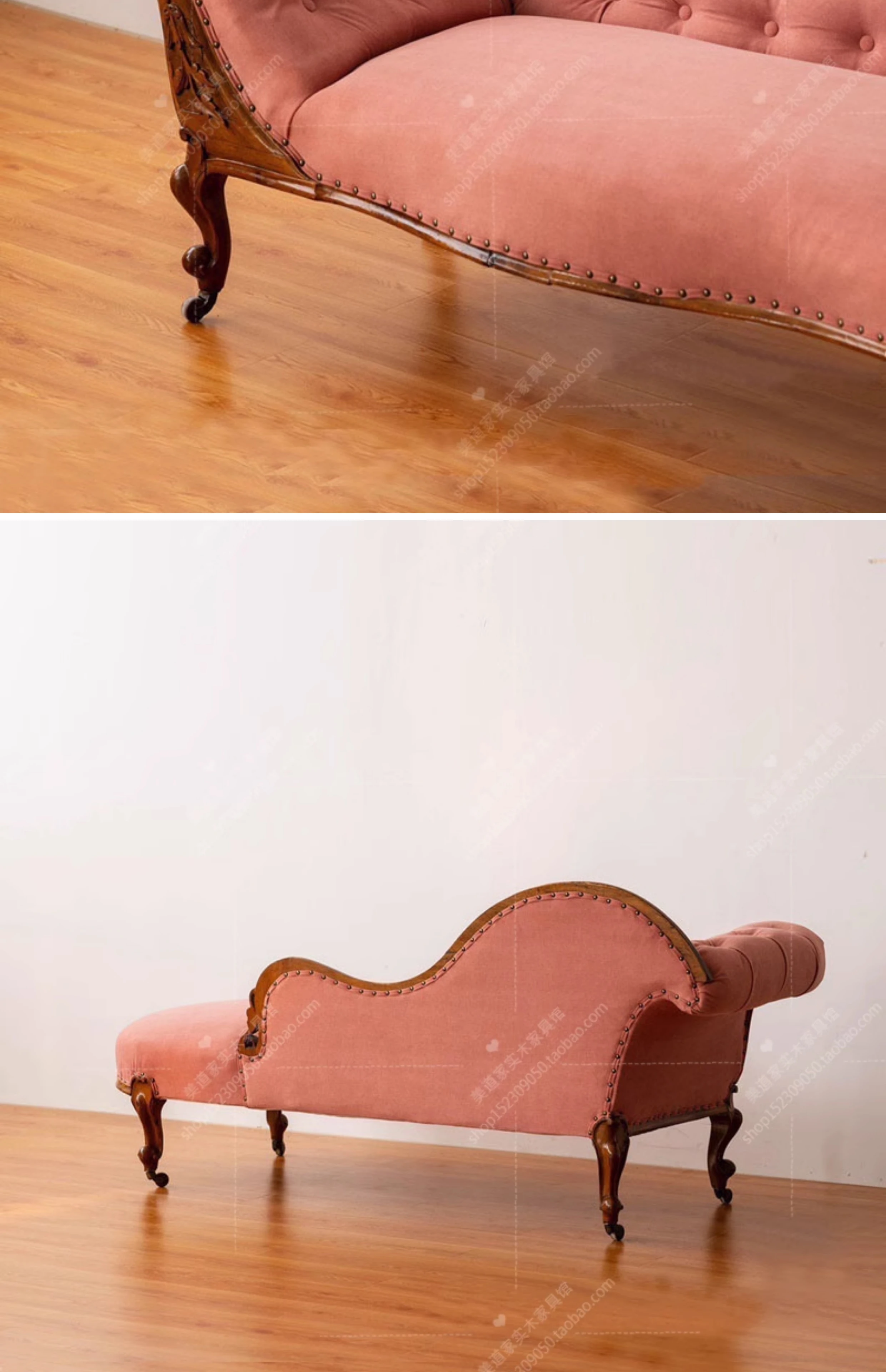 フレンチビンテージ全木製リビング小型エレガントカウチベッド、魅力あふれる寝室用美人ソファー。おしゃれなインテリアにぴったり!