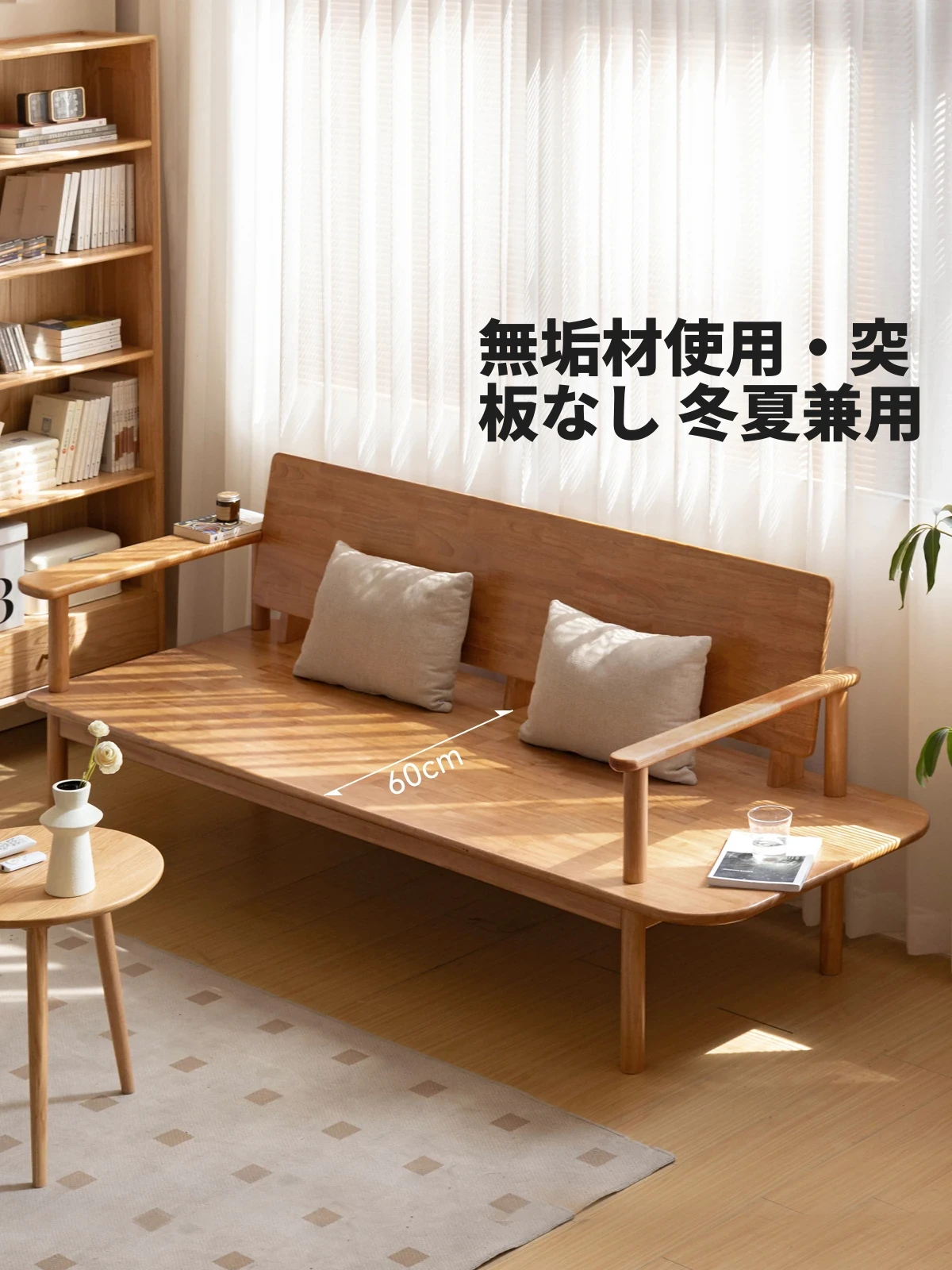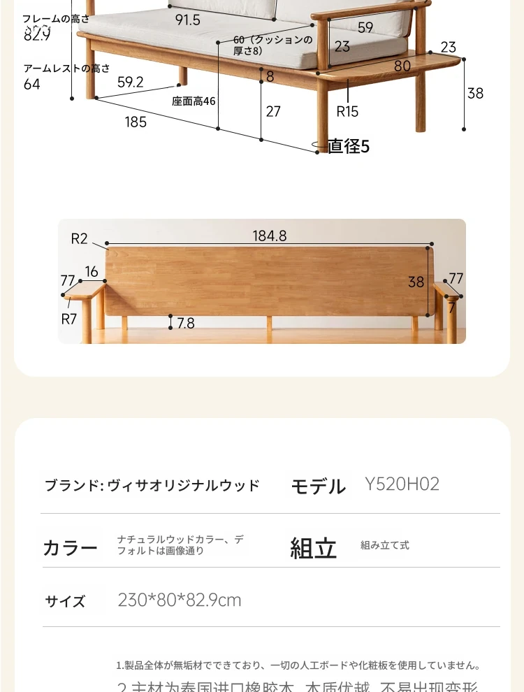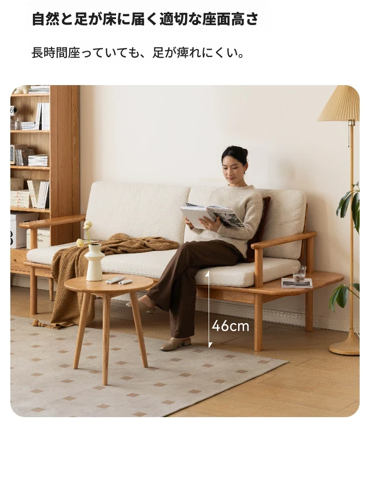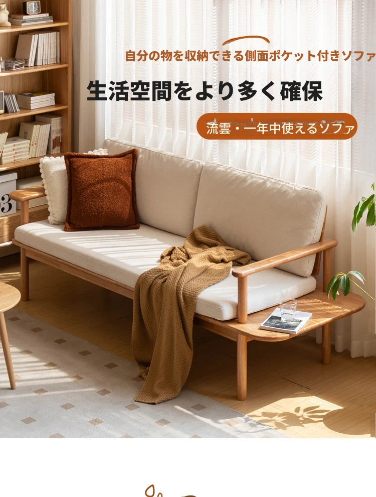 源氏木语x维莎の天然木製ソファ - 小型リビングにぴったりな3人掛け!四季対応で快適な座り心地、自然素材の美しさを感じるシンプルデザインソファ!