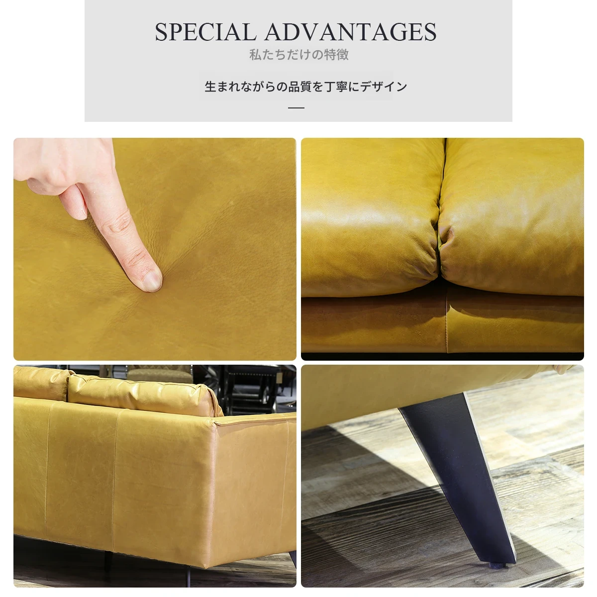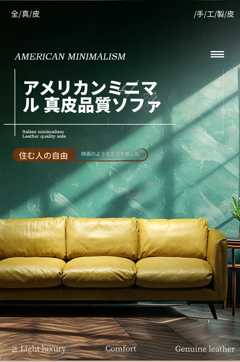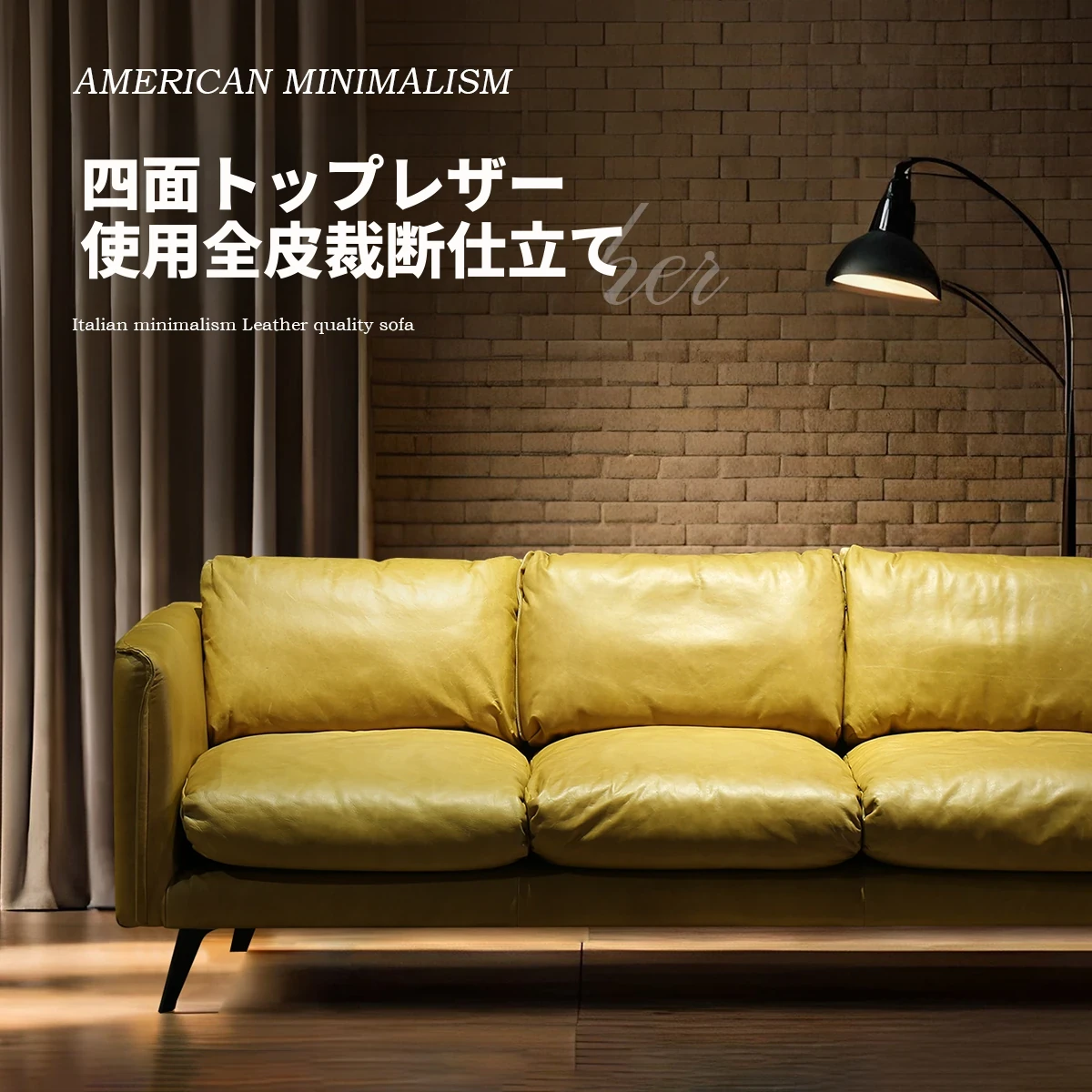 手作レザー工芸の本革3人用ソファー、超ソフトでラグジュアリーなリビングにぴったり!特別価格でお届け!