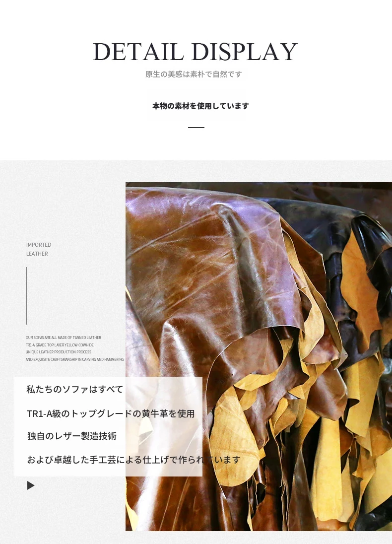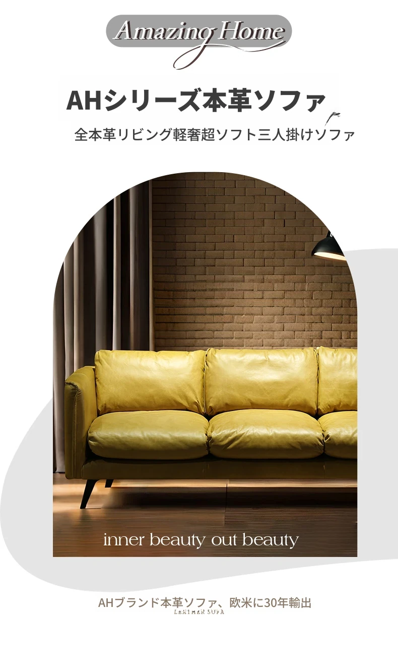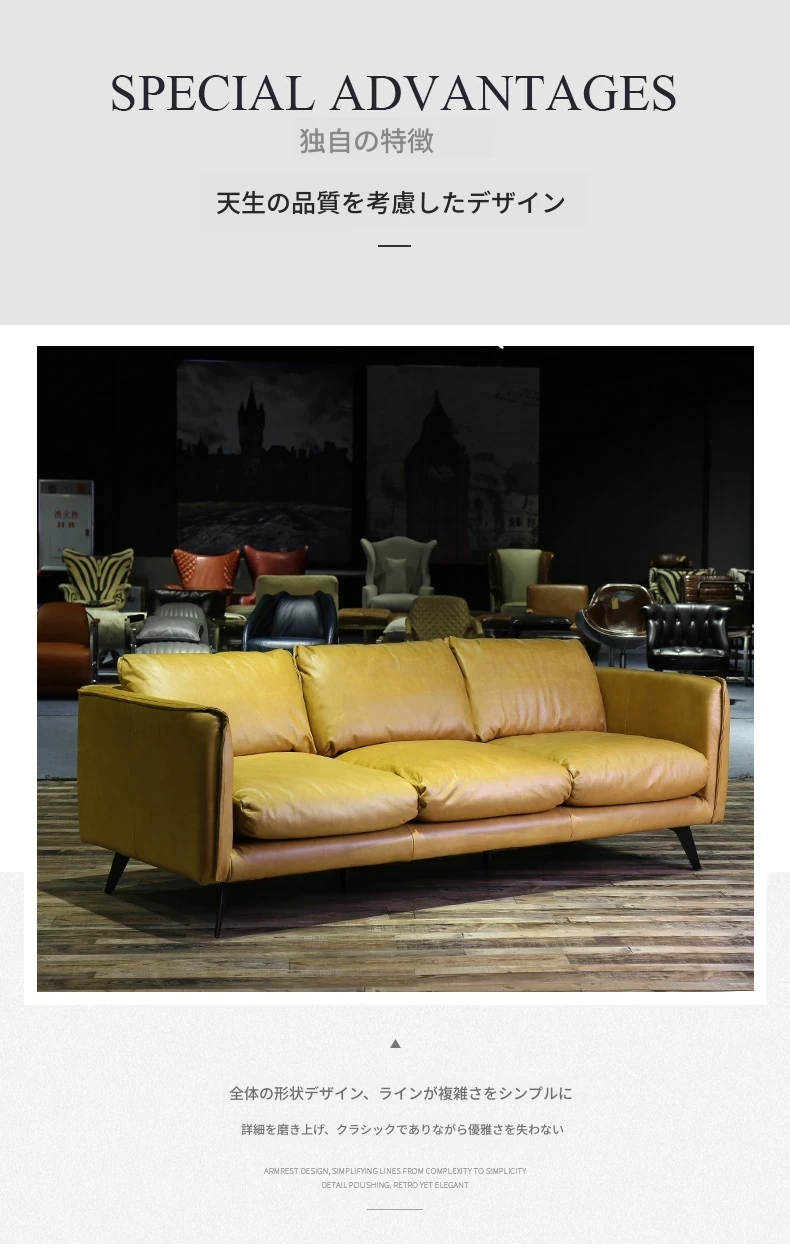 手作レザー工芸の本革3人用ソファー、超ソフトでラグジュアリーなリビングにぴったり!特別価格でお届け!