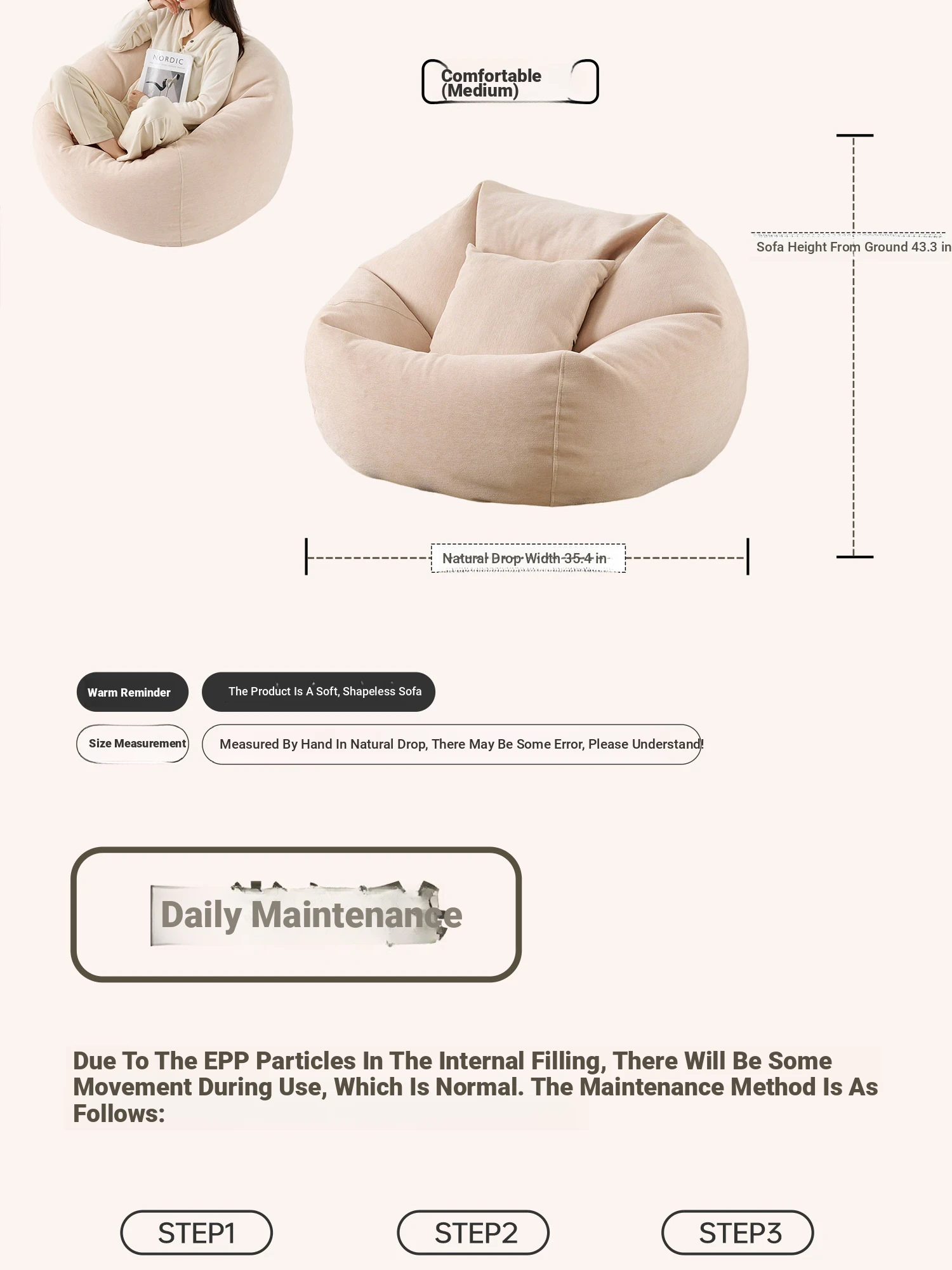 Beige + Pillow (independent liner + Environmental-Friendly EPP filling)