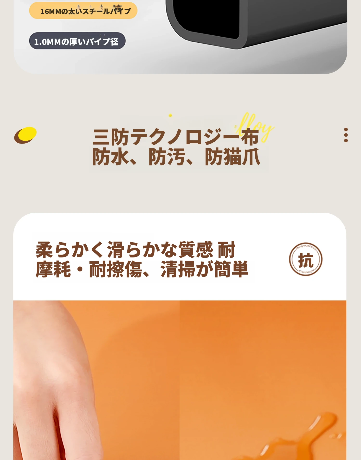 【アーム付き】クリームオレンジ - 洗浄不要タイプ 51*56CM(防水、耐摩耗、抗汚れ)