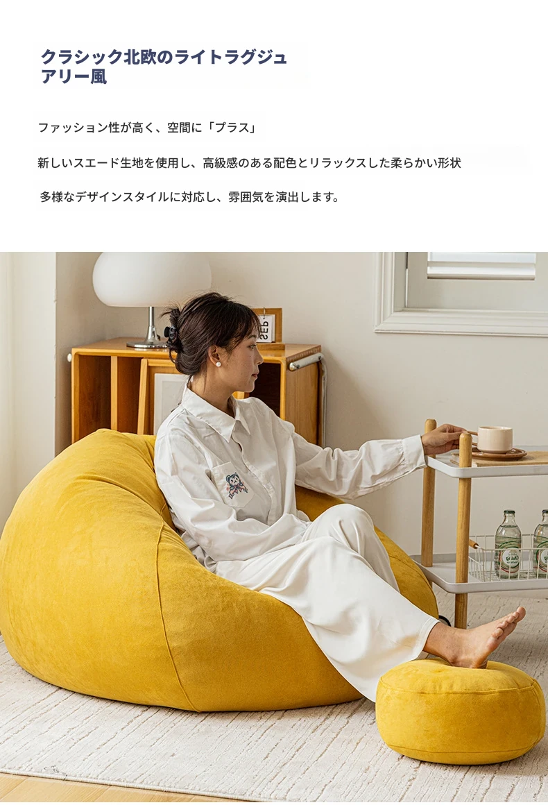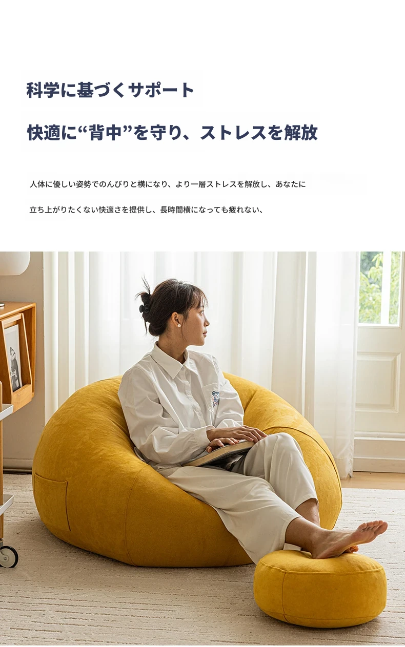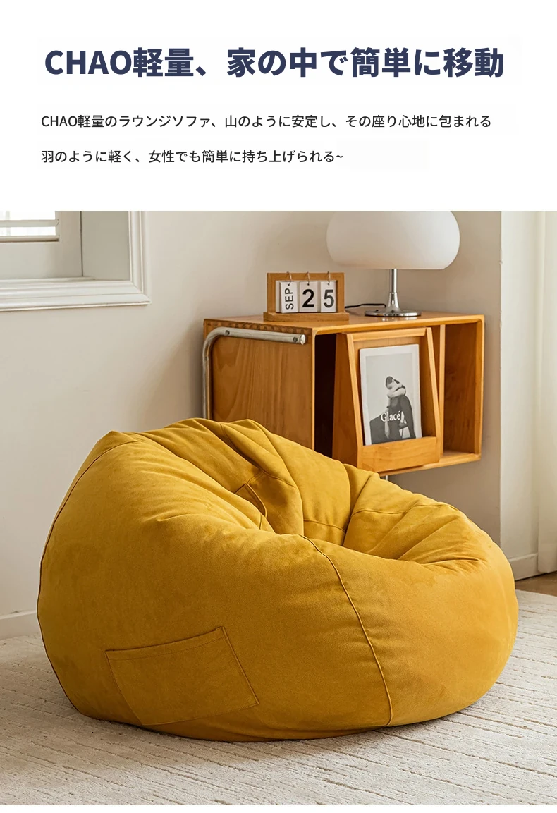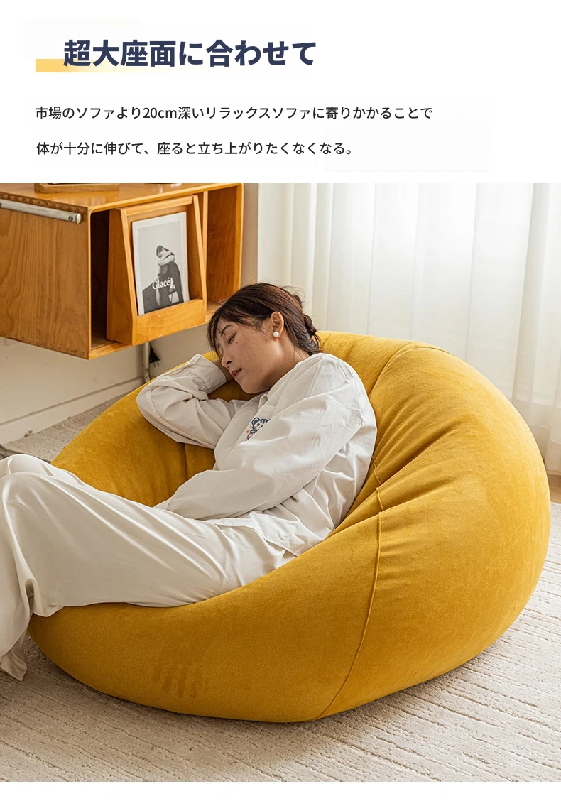 リラックスできる豆袋ソファ!寝転がったり、くつろいだり、シングルサイズの2025年新作。バルコニーや寝室、リビングに最適なアイテム。女性にぴったりのデザインで、心地よい時間をお届けします!