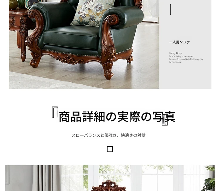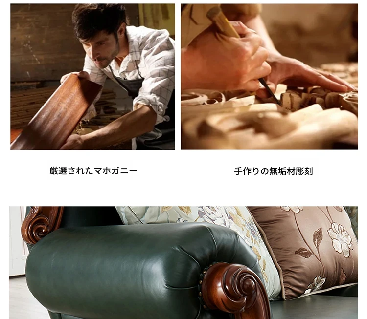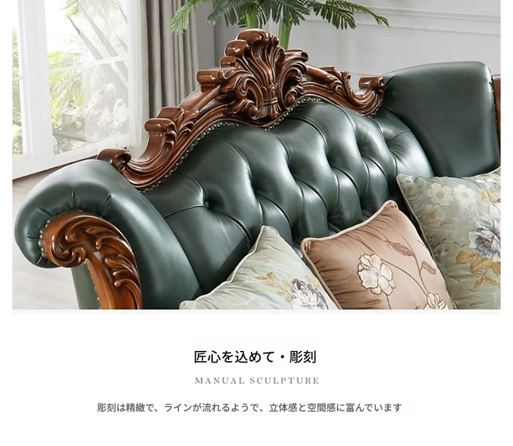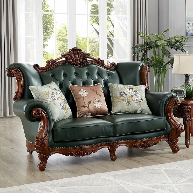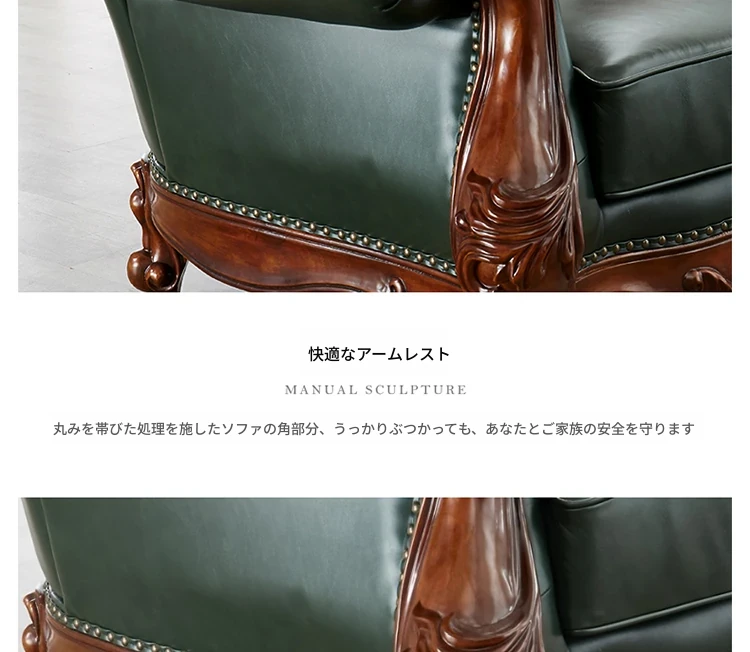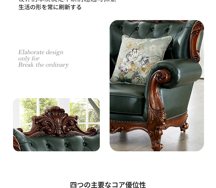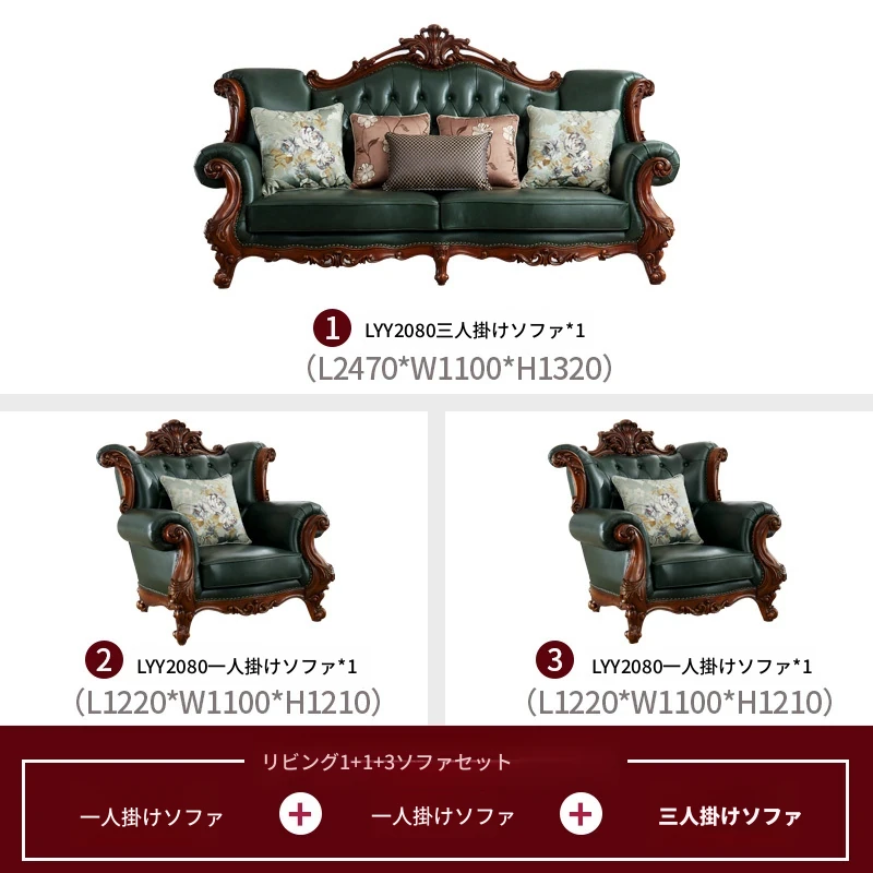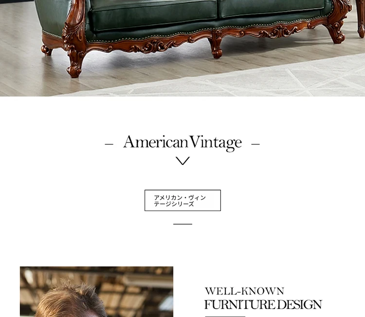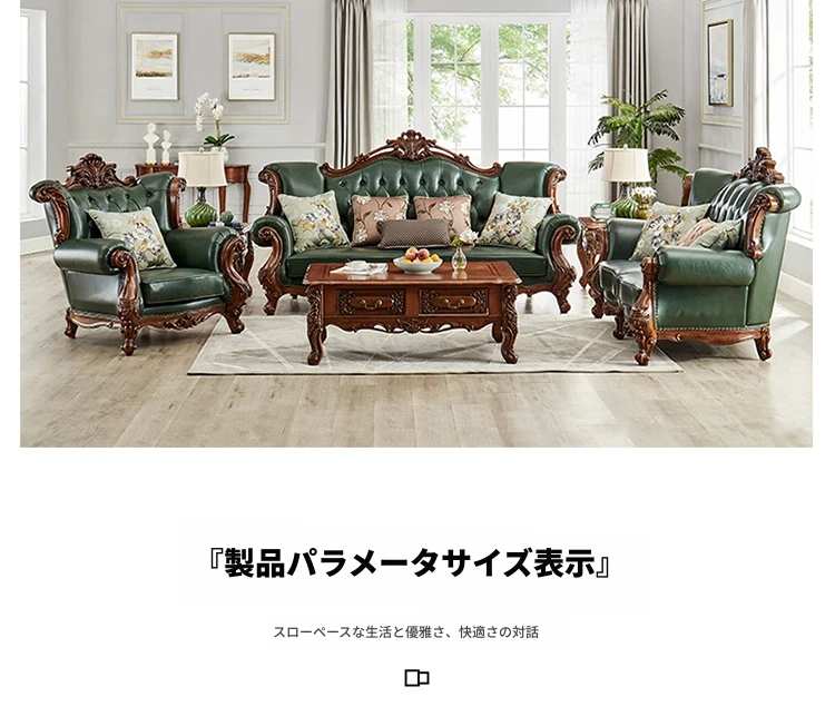 アメリカンスタイルの本革ソファセット|欧風天然木製|ダブル三人掛け|別荘リビングに最適|広々とした大空間向け|ラグジュアリーでヴィンテージ感溢れる家具|心地よいくつろぎを提供します!