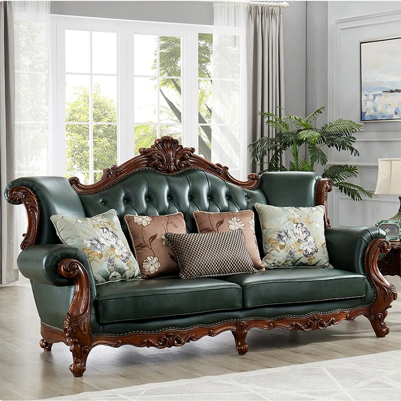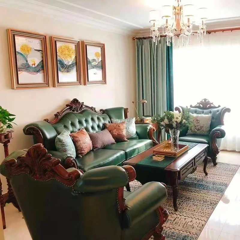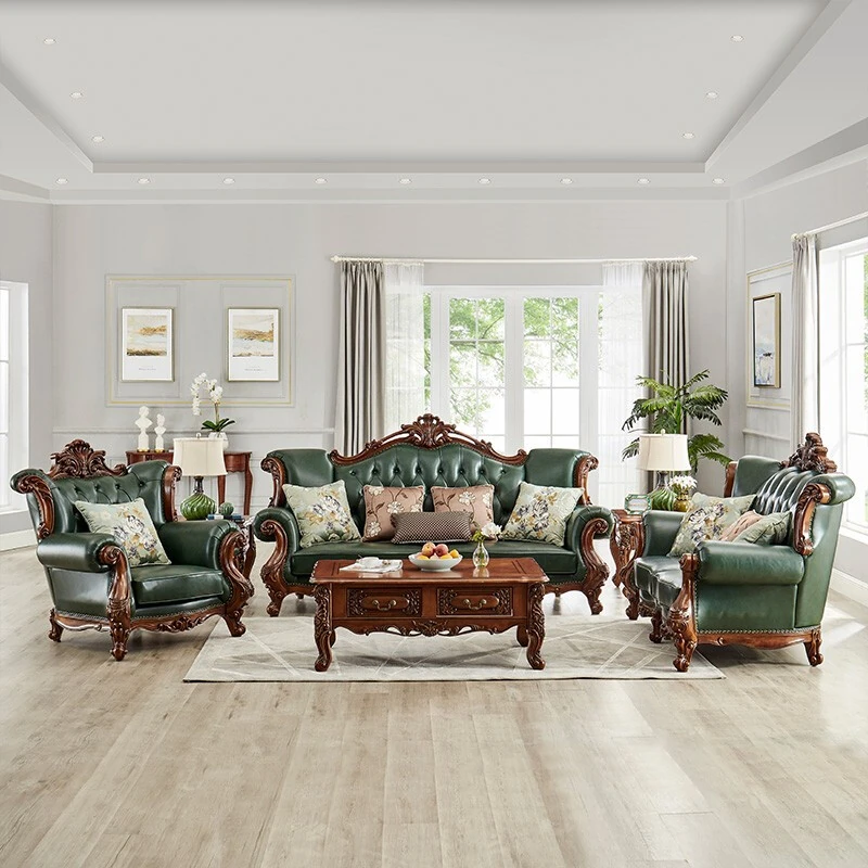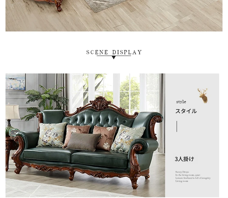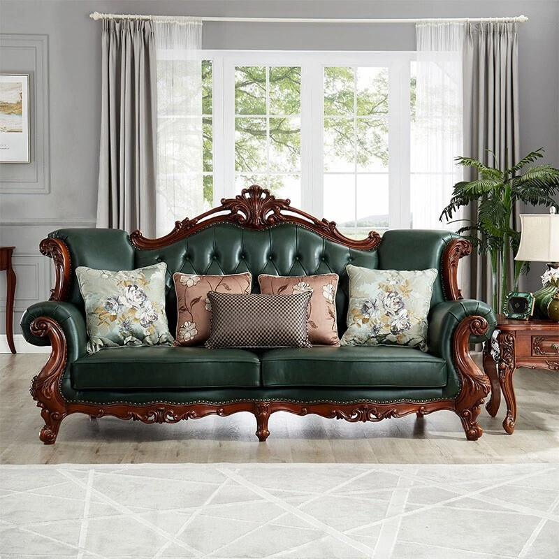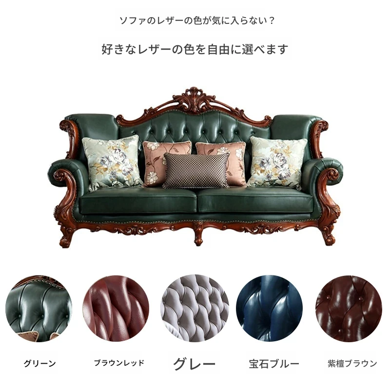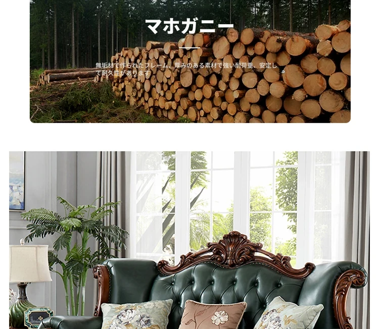 アメリカンスタイルの本革ソファセット|欧風天然木製|ダブル三人掛け|別荘リビングに最適|広々とした大空間向け|ラグジュアリーでヴィンテージ感溢れる家具|心地よいくつろぎを提供します!