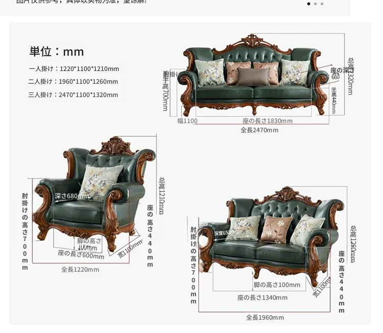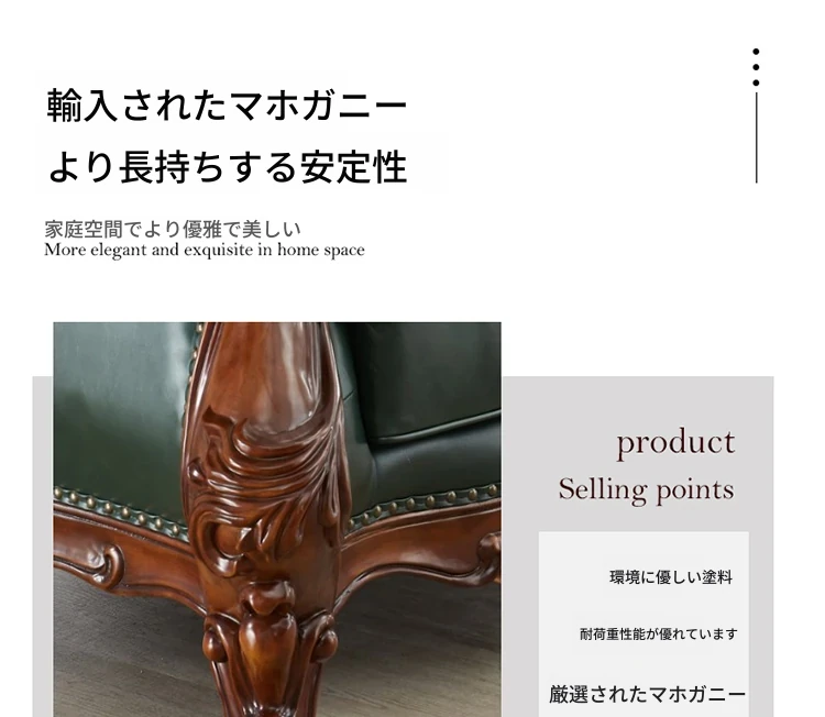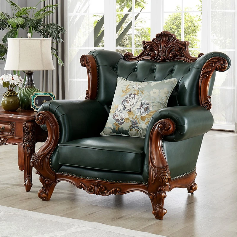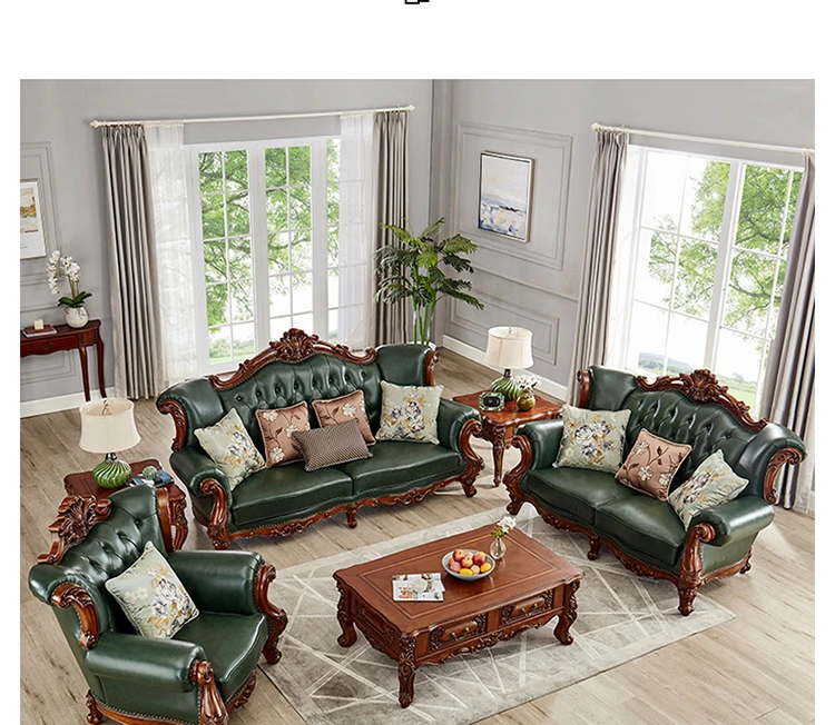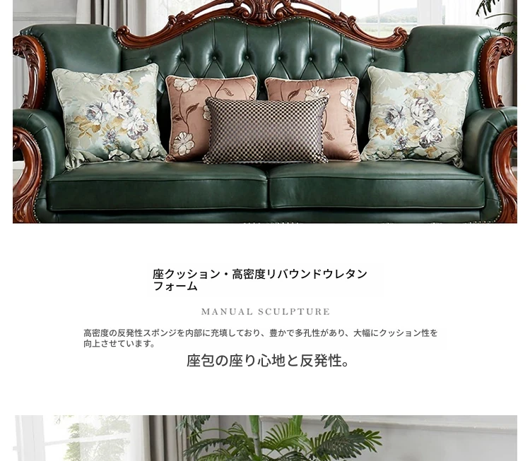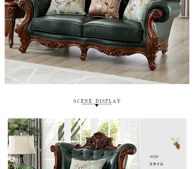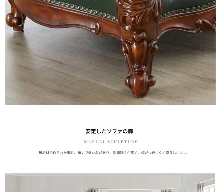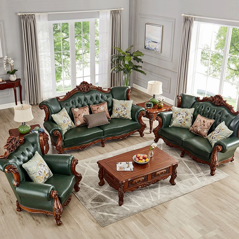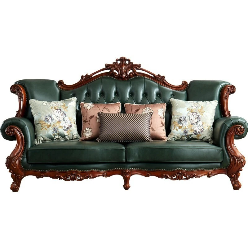 アメリカンスタイルの本革ソファセット|欧風天然木製|ダブル三人掛け|別荘リビングに最適|広々とした大空間向け|ラグジュアリーでヴィンテージ感溢れる家具|心地よいくつろぎを提供します!