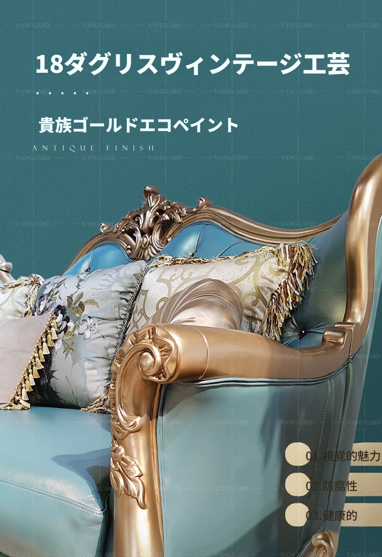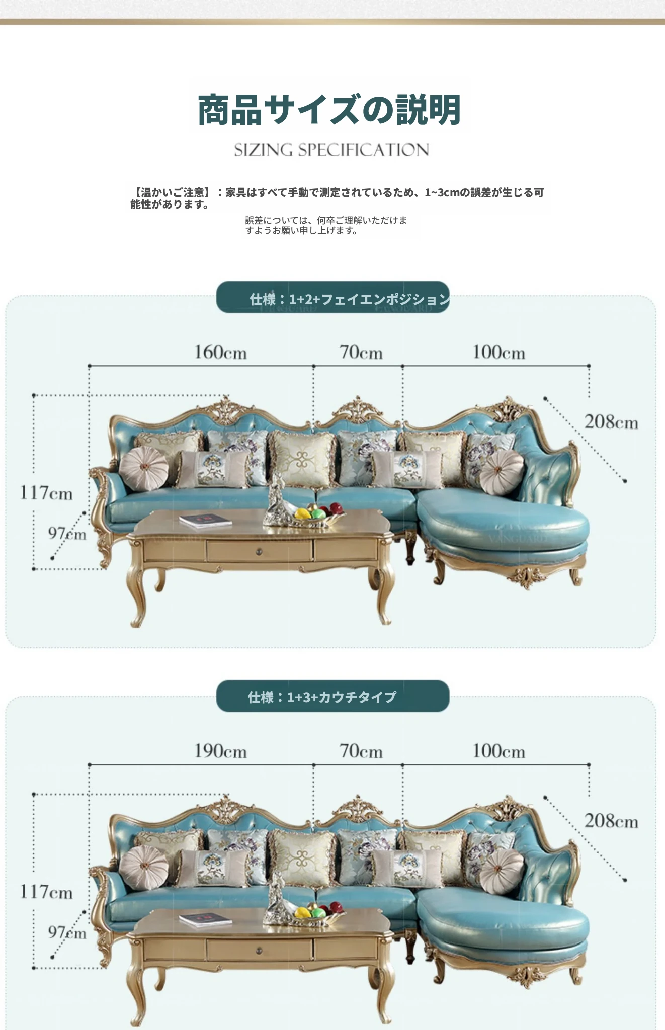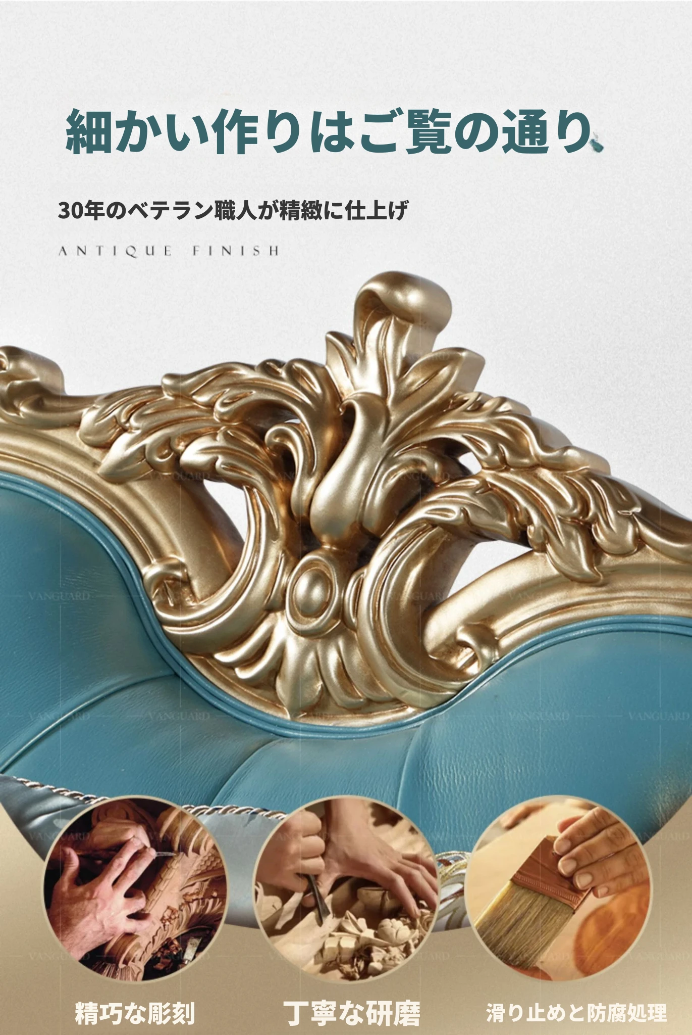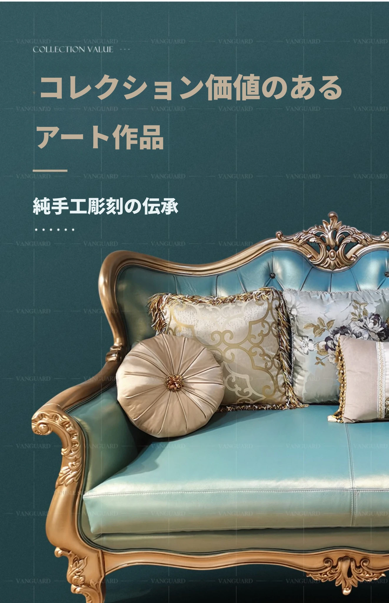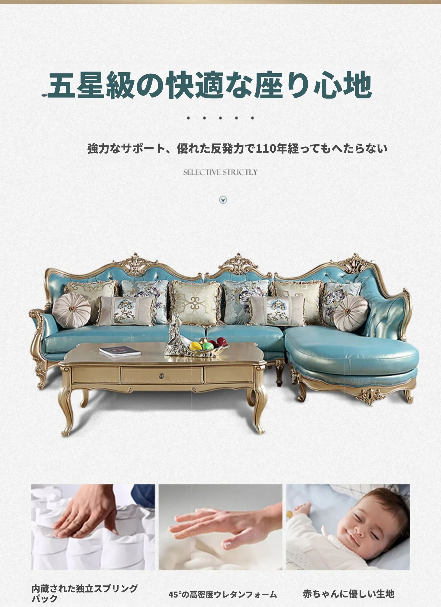高級感漂う欧風L字型コーナーソファー 本革使用の青色フレンチスタイル、リッチな雰囲気の軽奢組み合わせ、優雅な日常を演出!