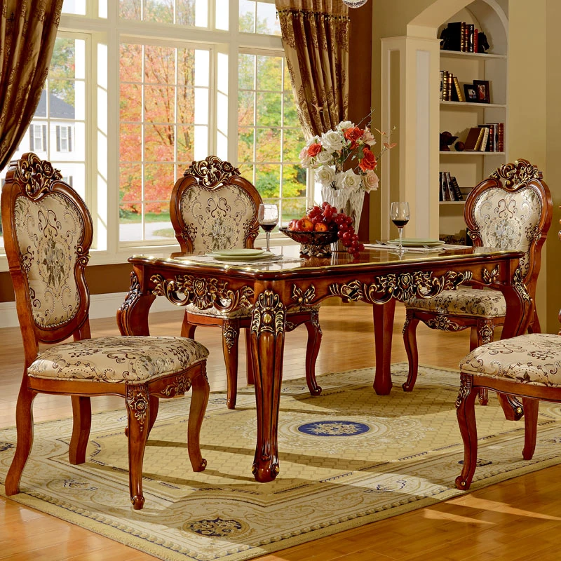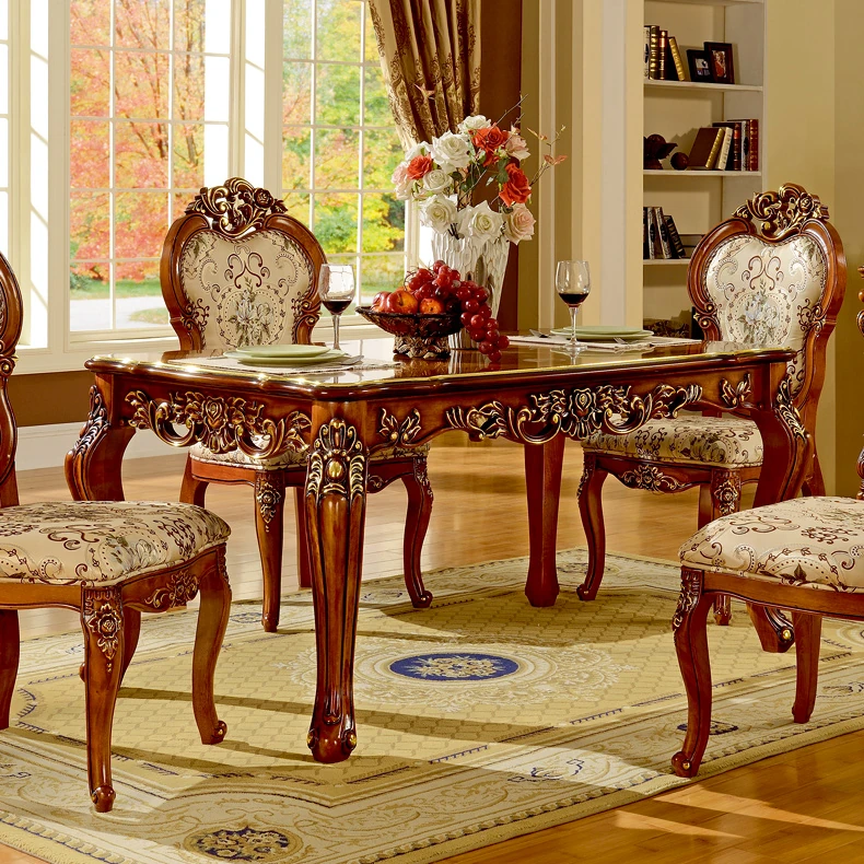 即納!欧風大理石豪華ダイニングテーブルセット - アメリカンスタイルのオーク材使用、金箔仕上げの長いテーブルで特別な食事体験を!