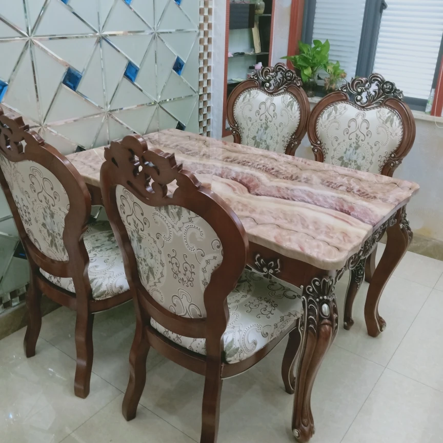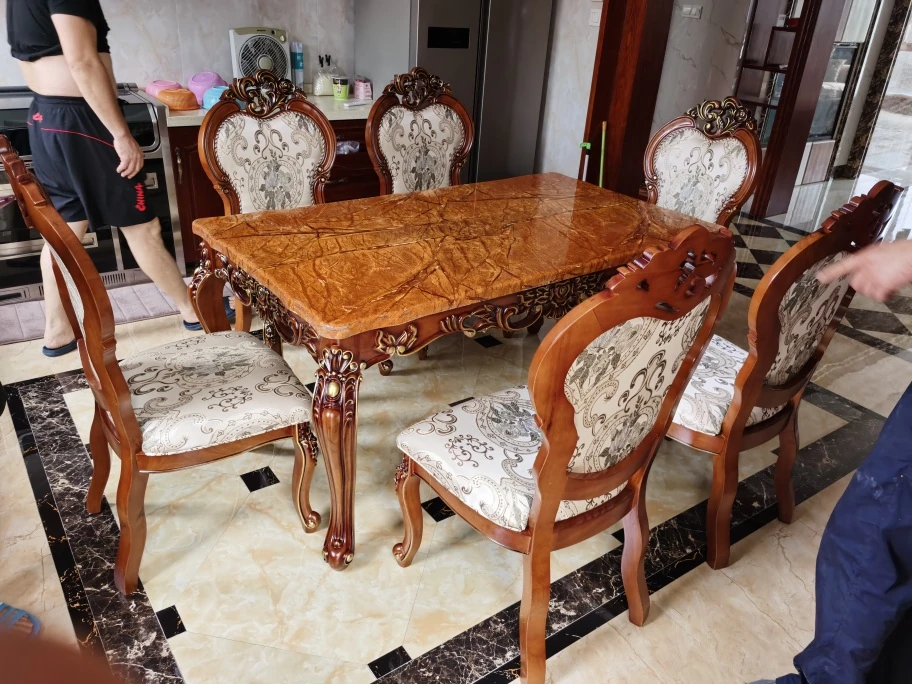 描金1.6メートル大理石製ダイニングテーブル+6脚Aタイプ椅子