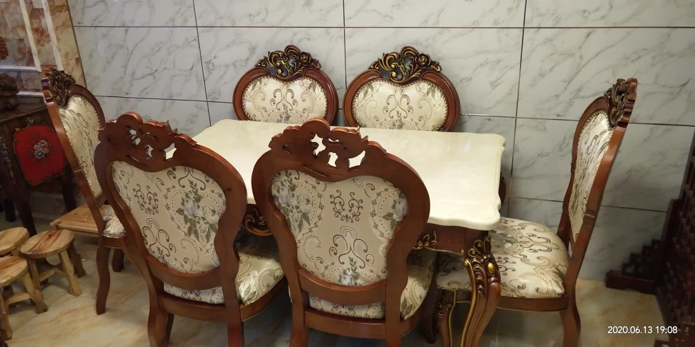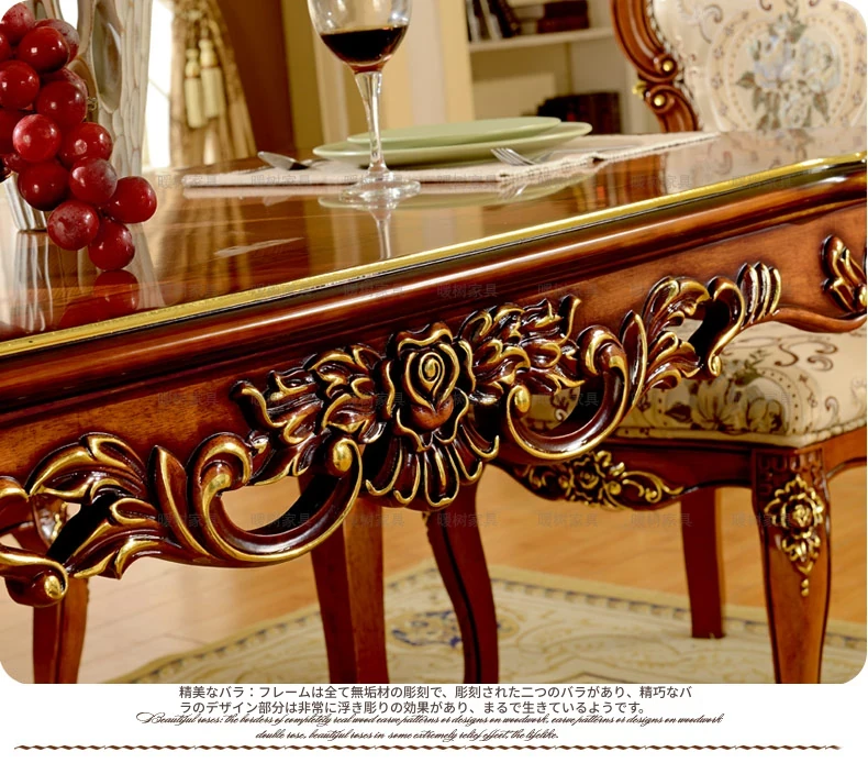 描金1.6メートル木製ダイニングテーブル+6脚Aタイプ椅子