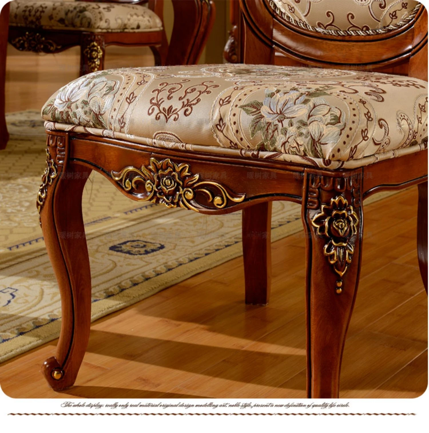 描金1.5メートル木製ダイニングテーブル+6脚Aタイプ椅子