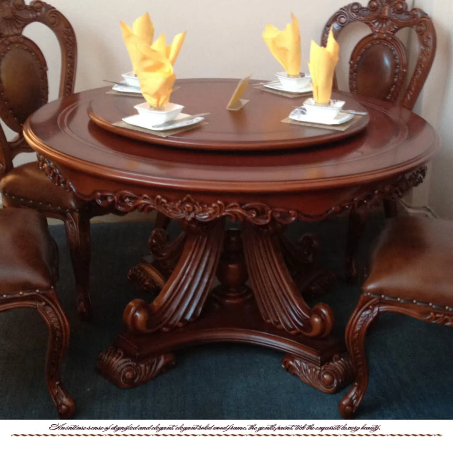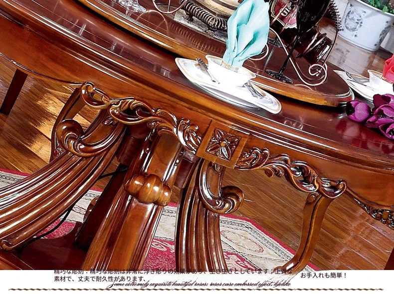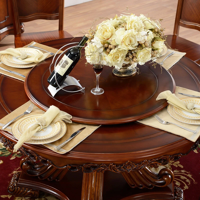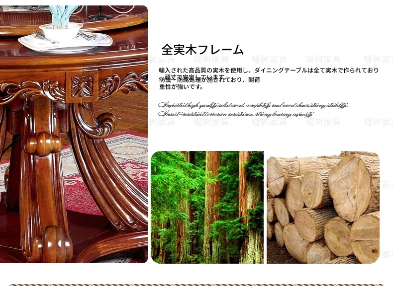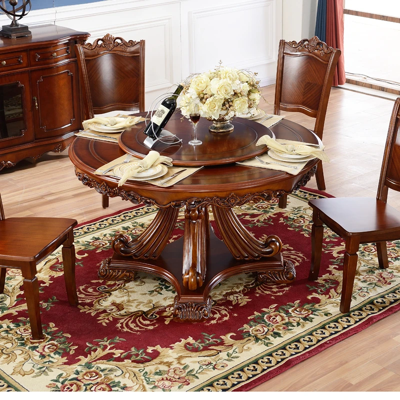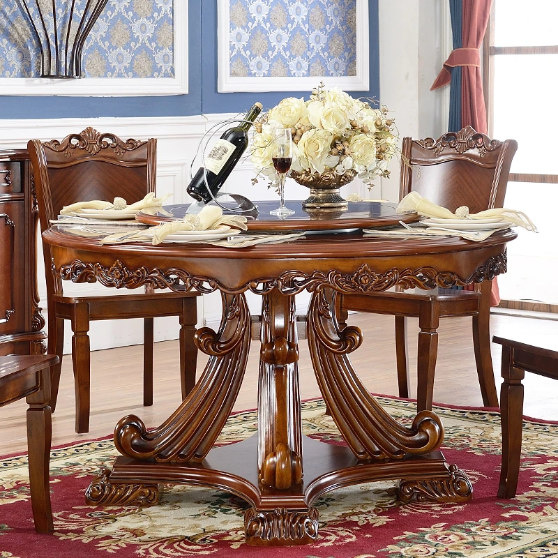 即納!欧風ラグジュアリー ダイニングテーブル&チェアセット 高級ヴィラ向け 1.3m 木製ラウンドテーブル 新作!優雅な食事空間を演出し、特別なひとときをお楽しみください。