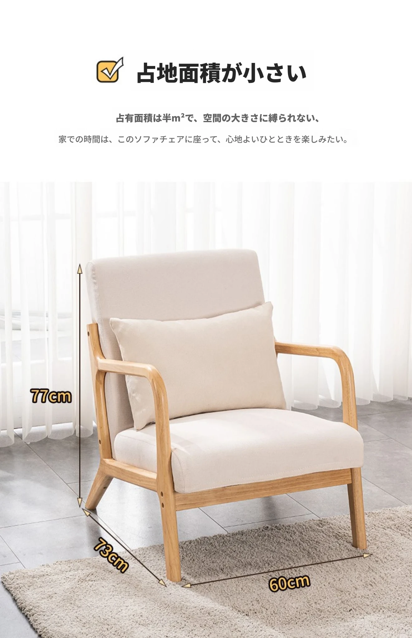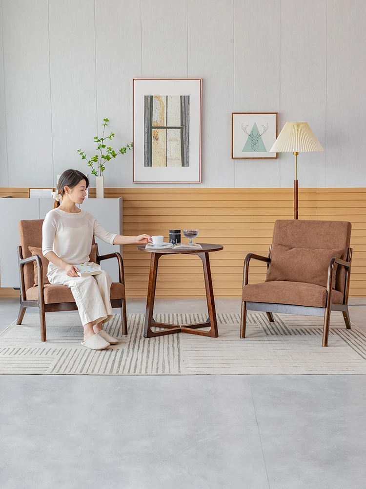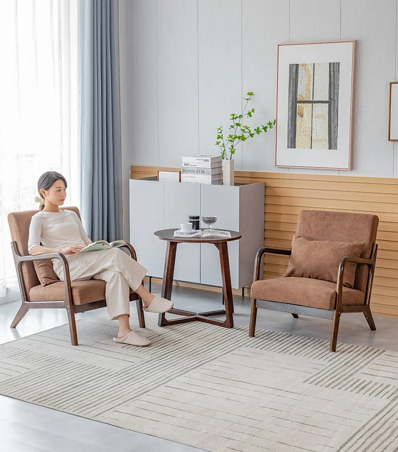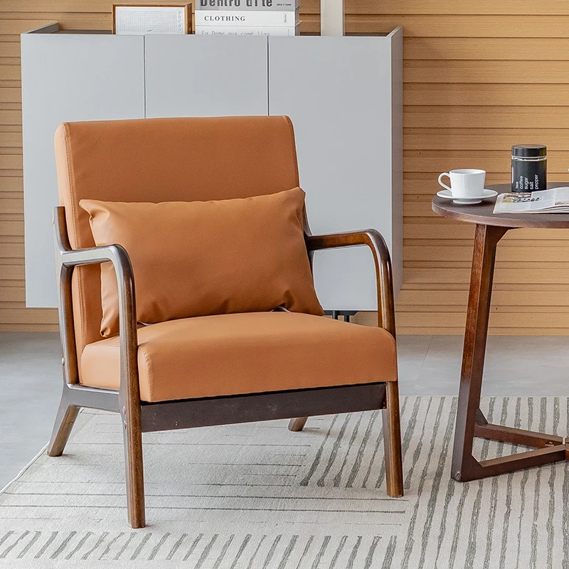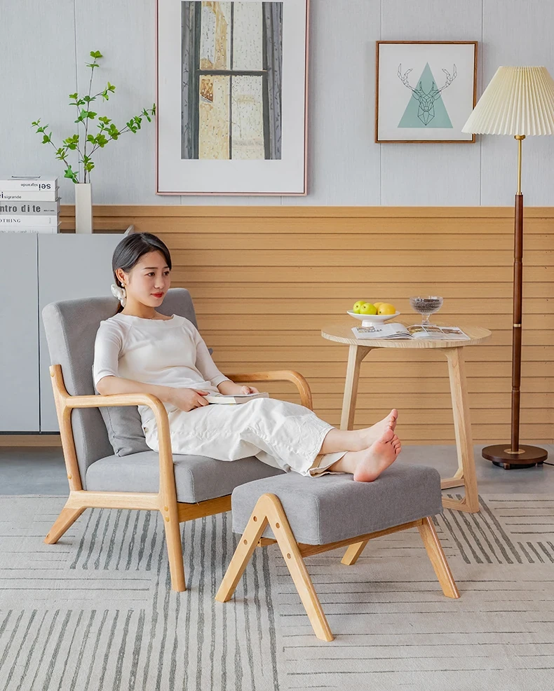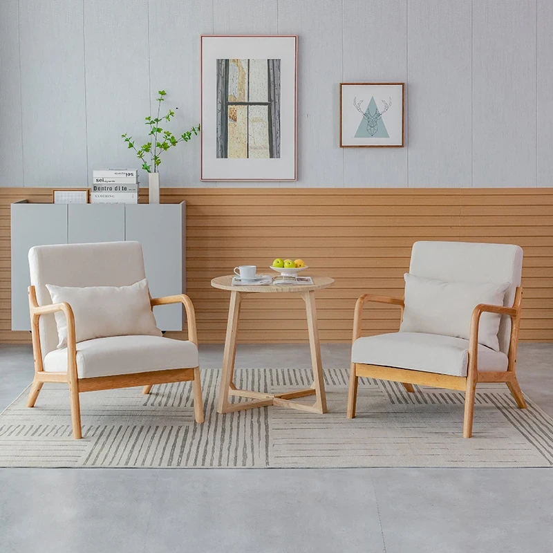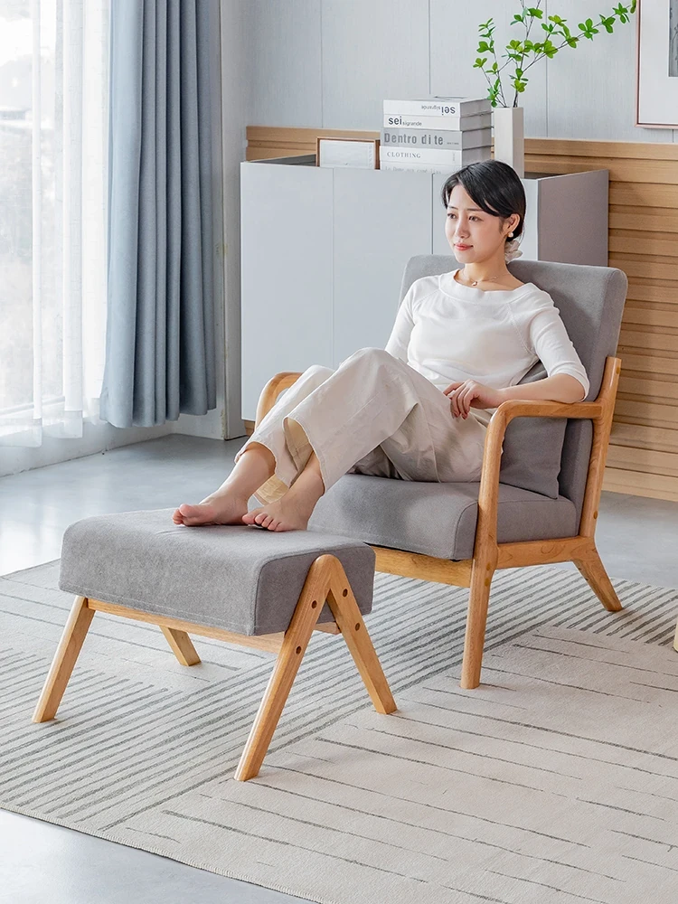 シンプルな無垢材のリラックスチェア - 一人用ソファ、リビングやバルコニーに最適!2025年新作、和風のナチュラルスタイルで読書やくつろぎのひとときを演出します。