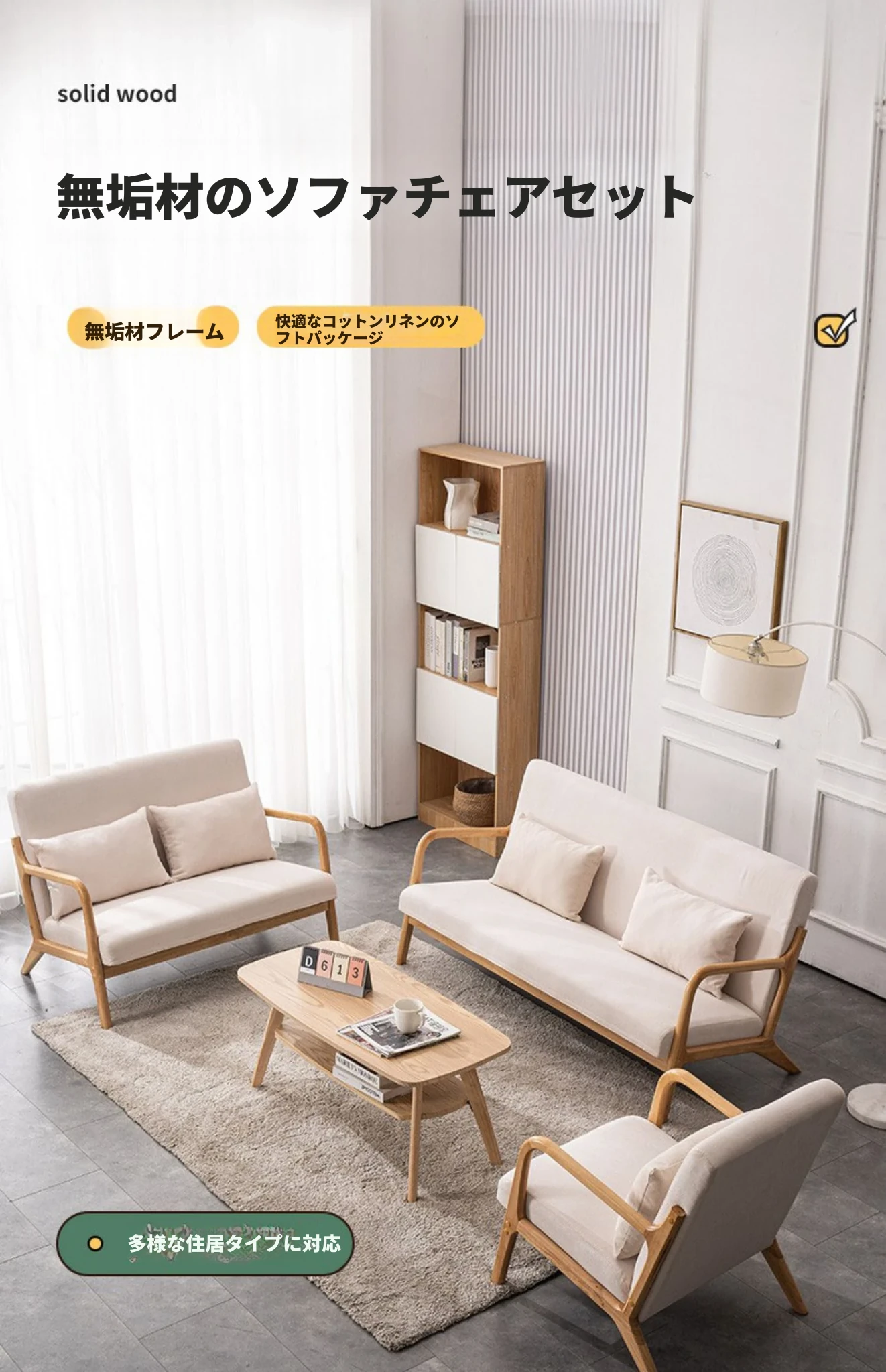 アイボリー【コットンリネン】取り外し可能