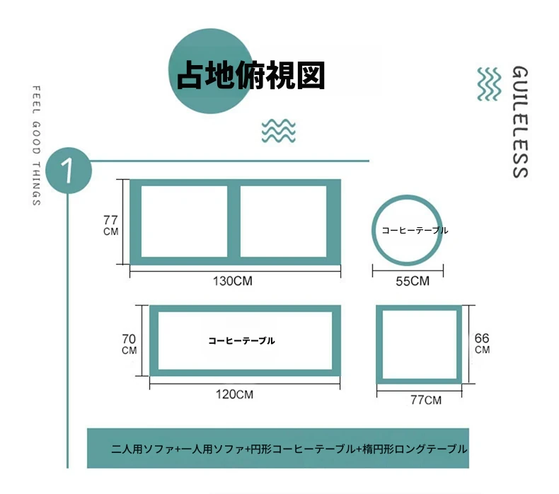1人用+2人用+長いテーブル+丸いテーブル【色のメモ】