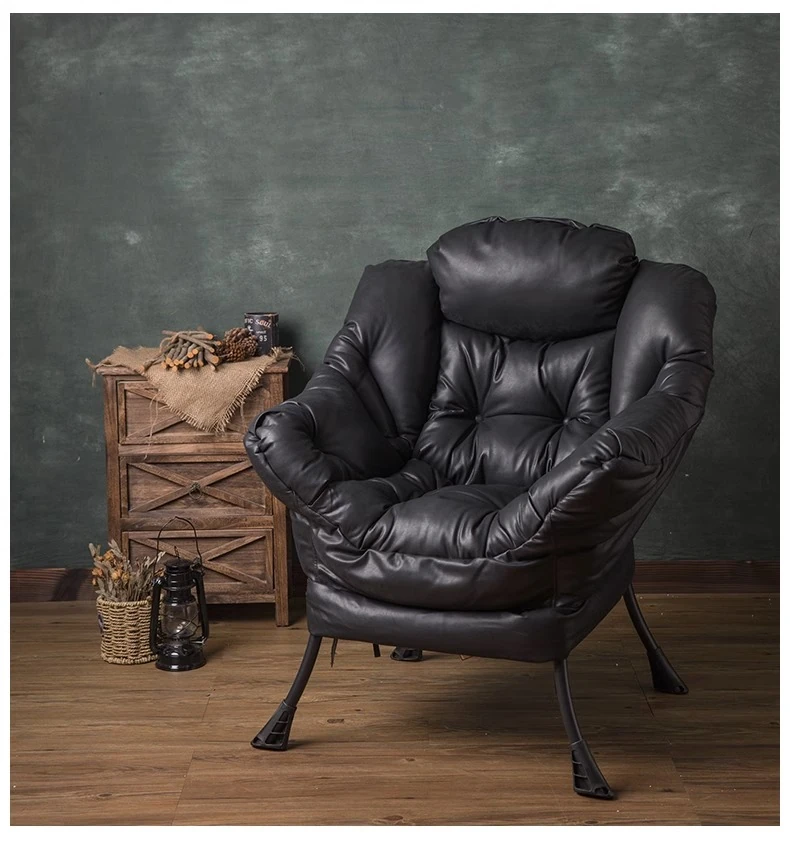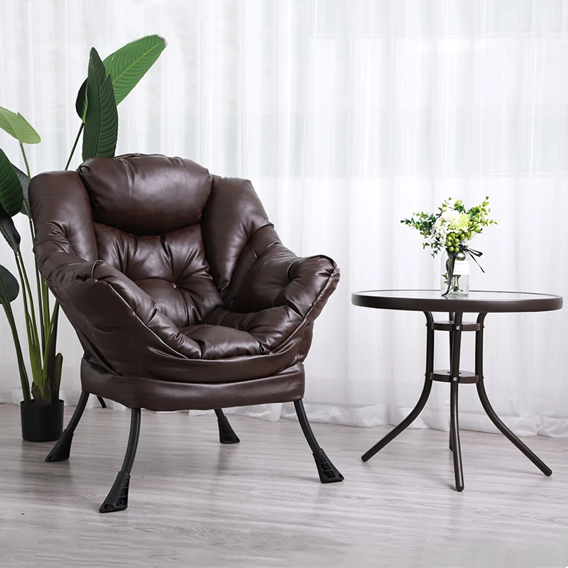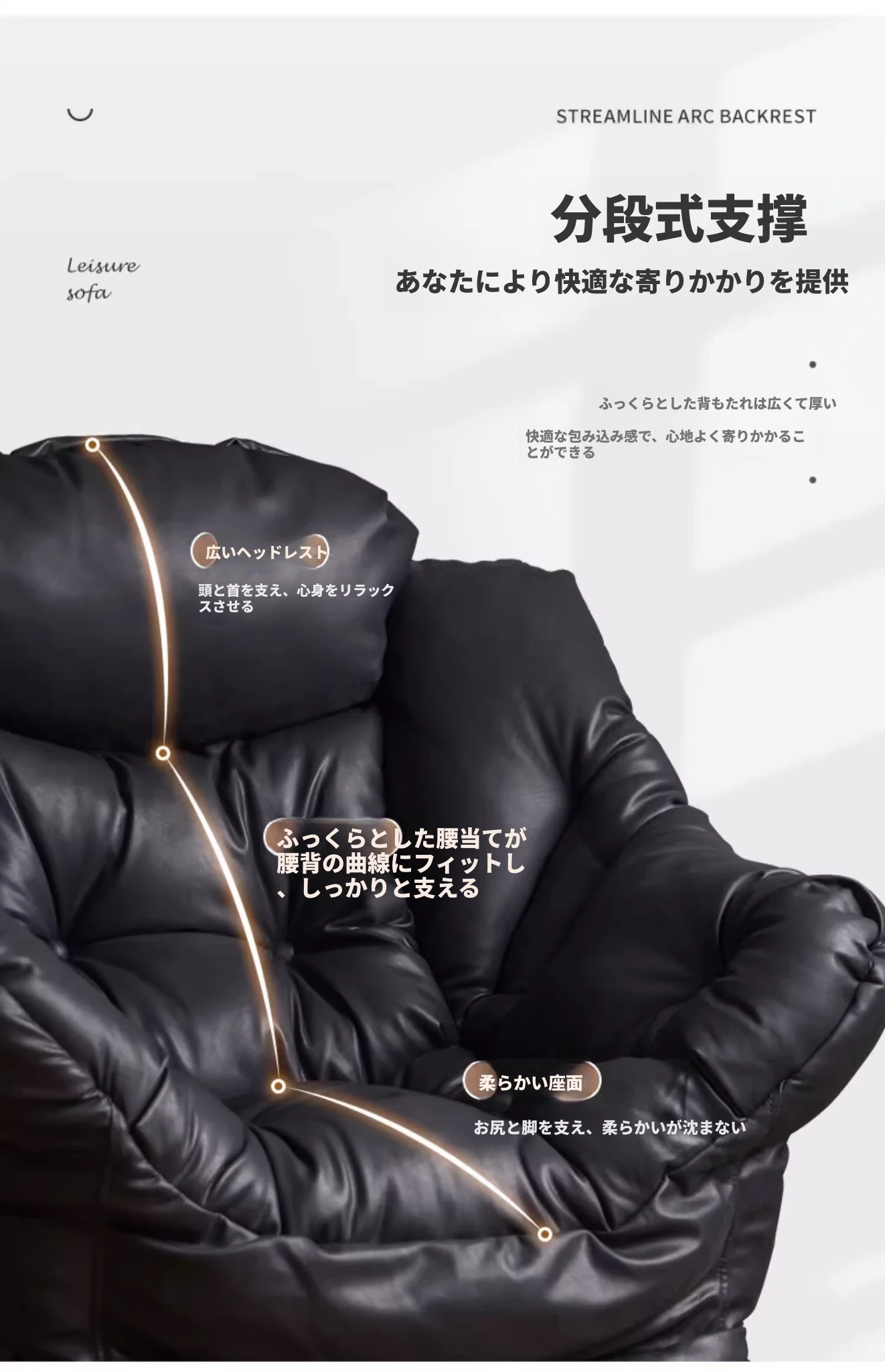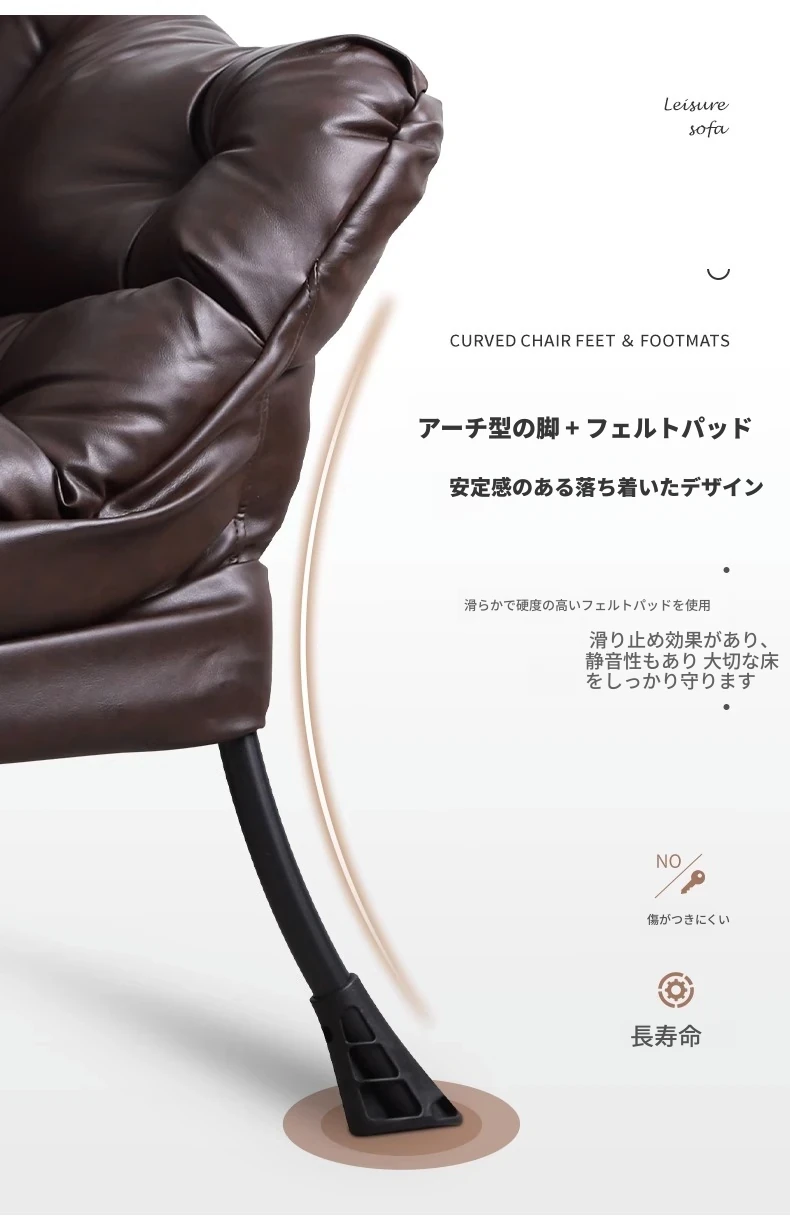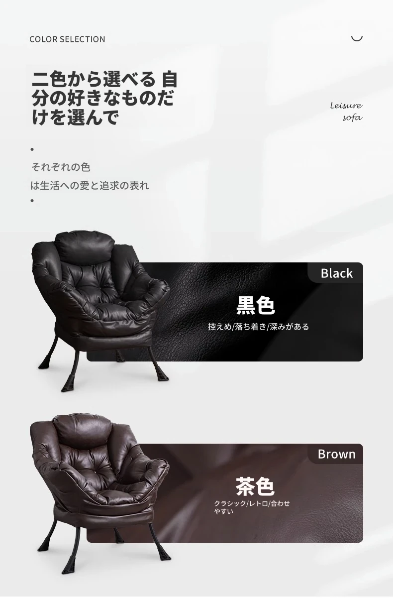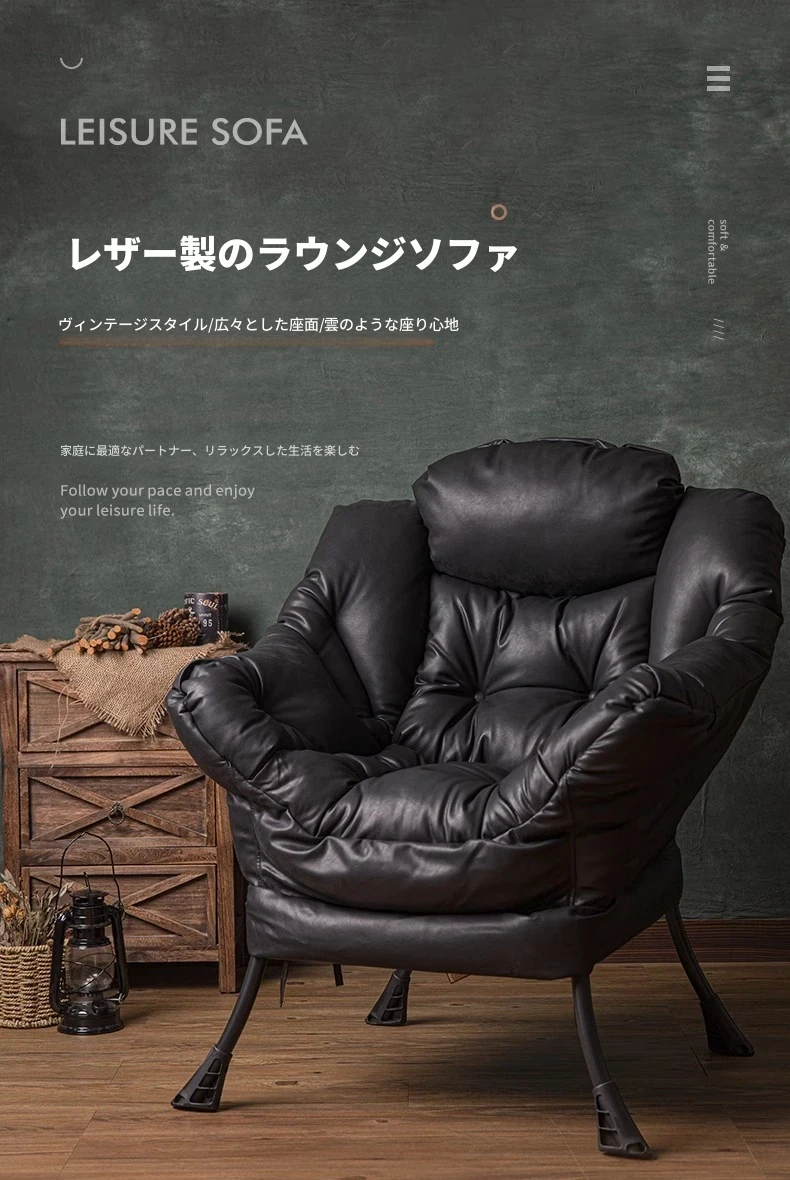 レザー製リラックスソファ一人用 背もたれ付き モダンシンプルデザイン ベッドルームやバルコニーに最適な快適なコンピューターチェア!あなたのリラックスタイムを贅沢に演出します。