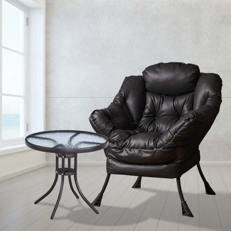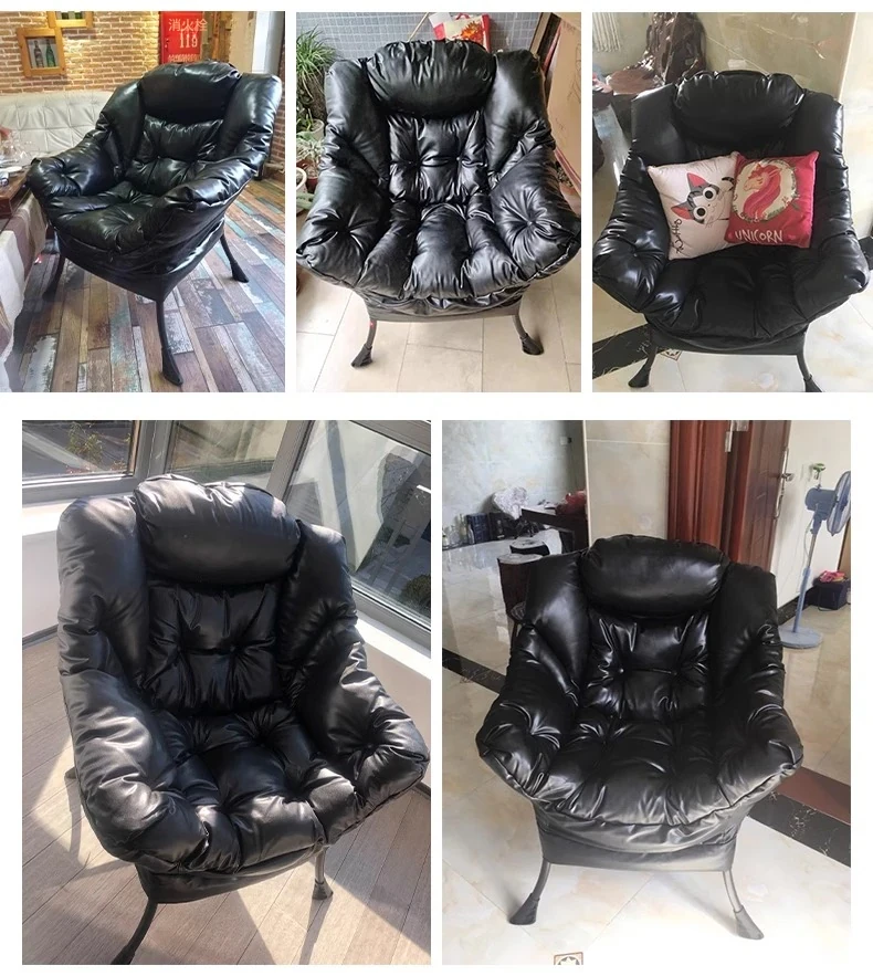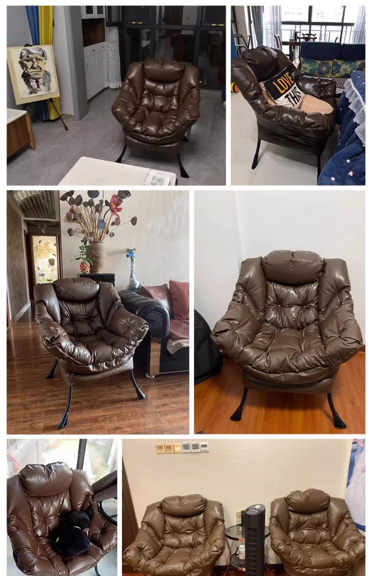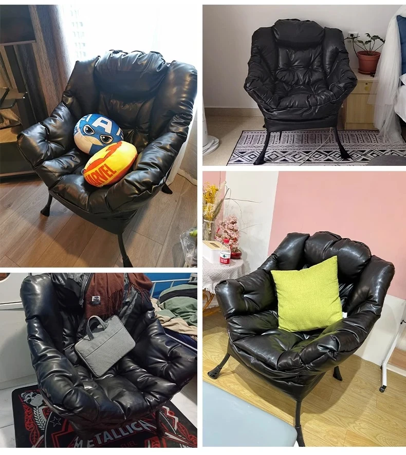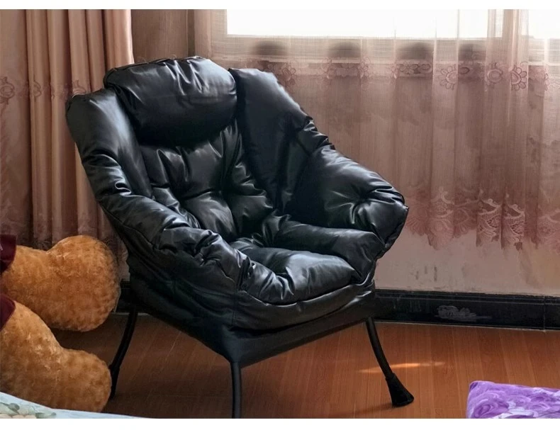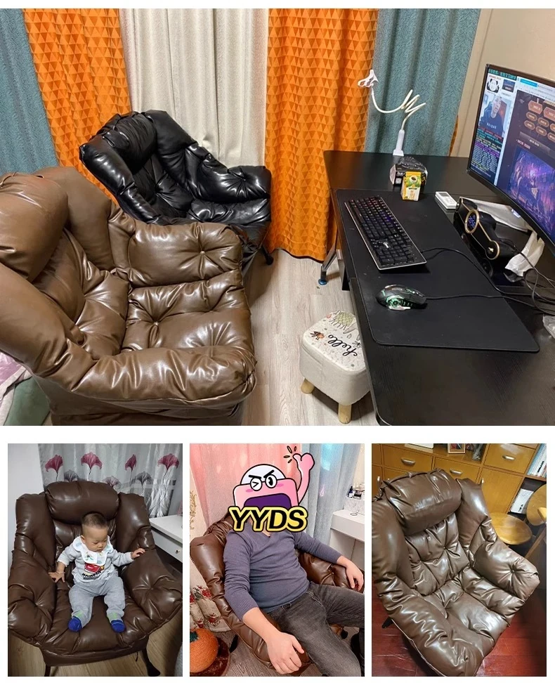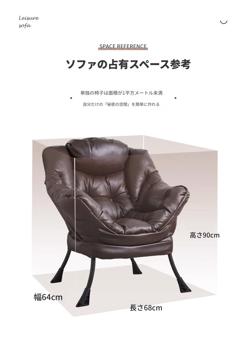 レザー製リラックスソファ一人用 背もたれ付き モダンシンプルデザイン ベッドルームやバルコニーに最適な快適なコンピューターチェア!あなたのリラックスタイムを贅沢に演出します。