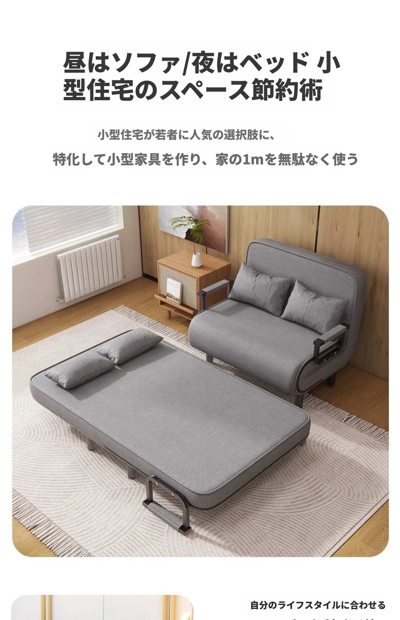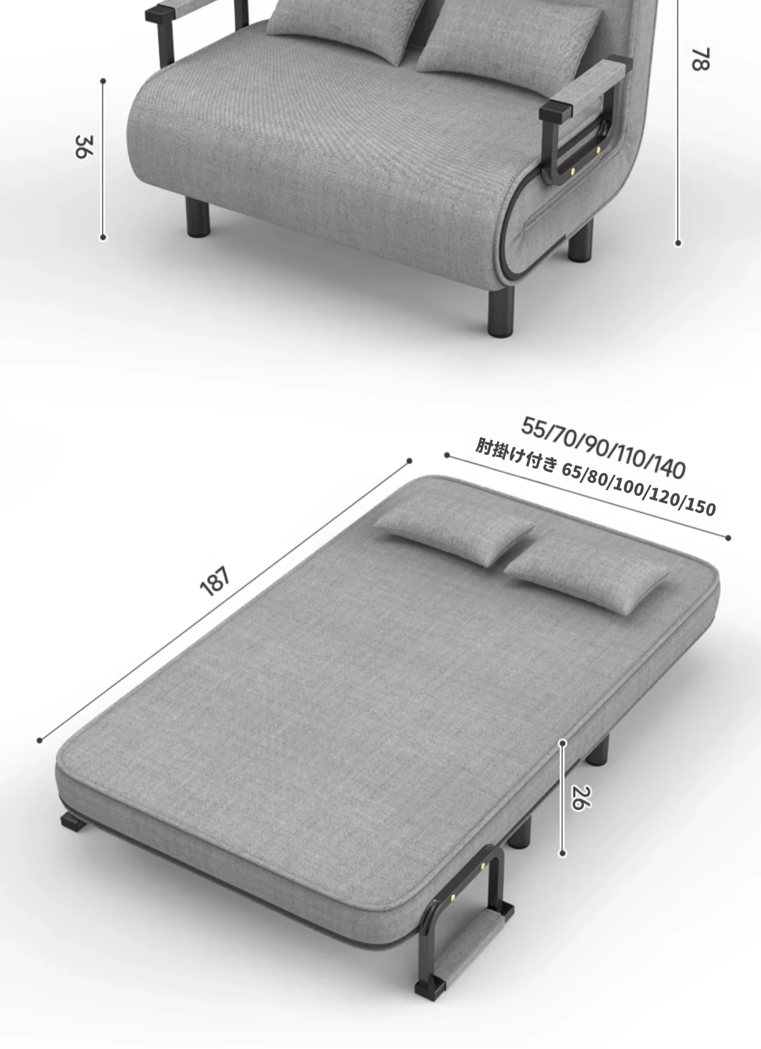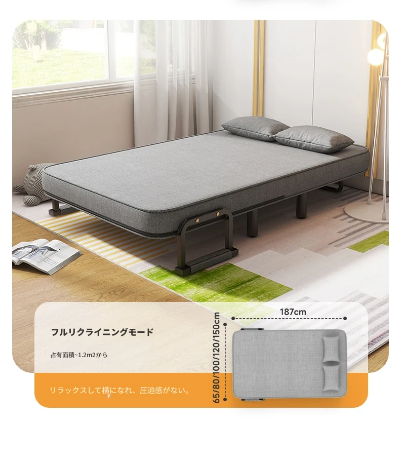 折りたたみソファベッド 家庭用マルチファンクションベッド 小型住宅向け 2WAYバルコニーリクライニングソファ 新作人気のダブルベッド