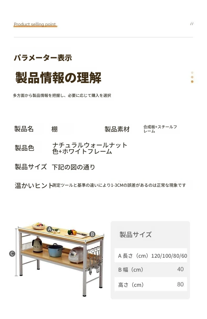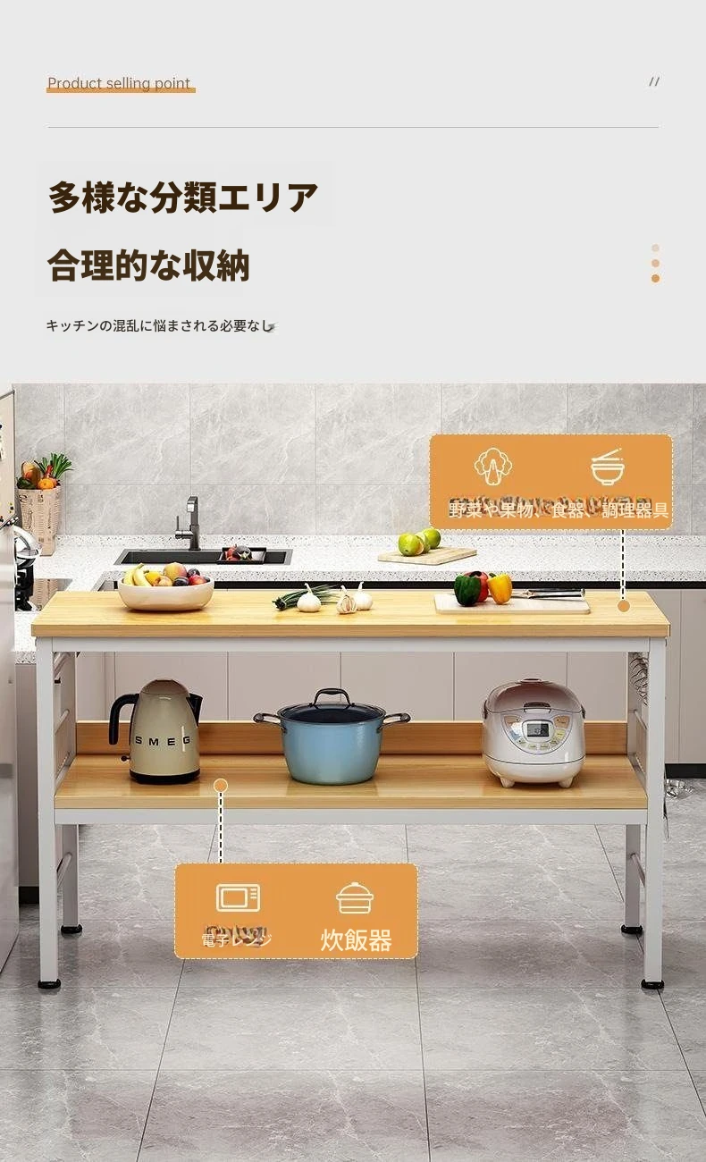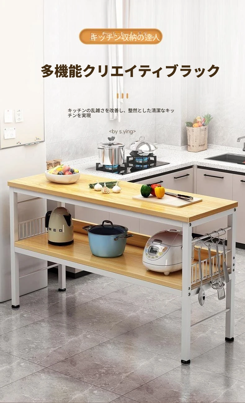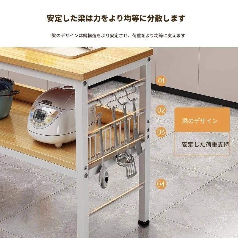 多機能キッチンワークテーブル - 小型収納ラック!多層設計で切菜や電子レンジもスッキリ整理!家庭用に最適なスタイリッシュな置き台。使い勝手抜群の必需品!