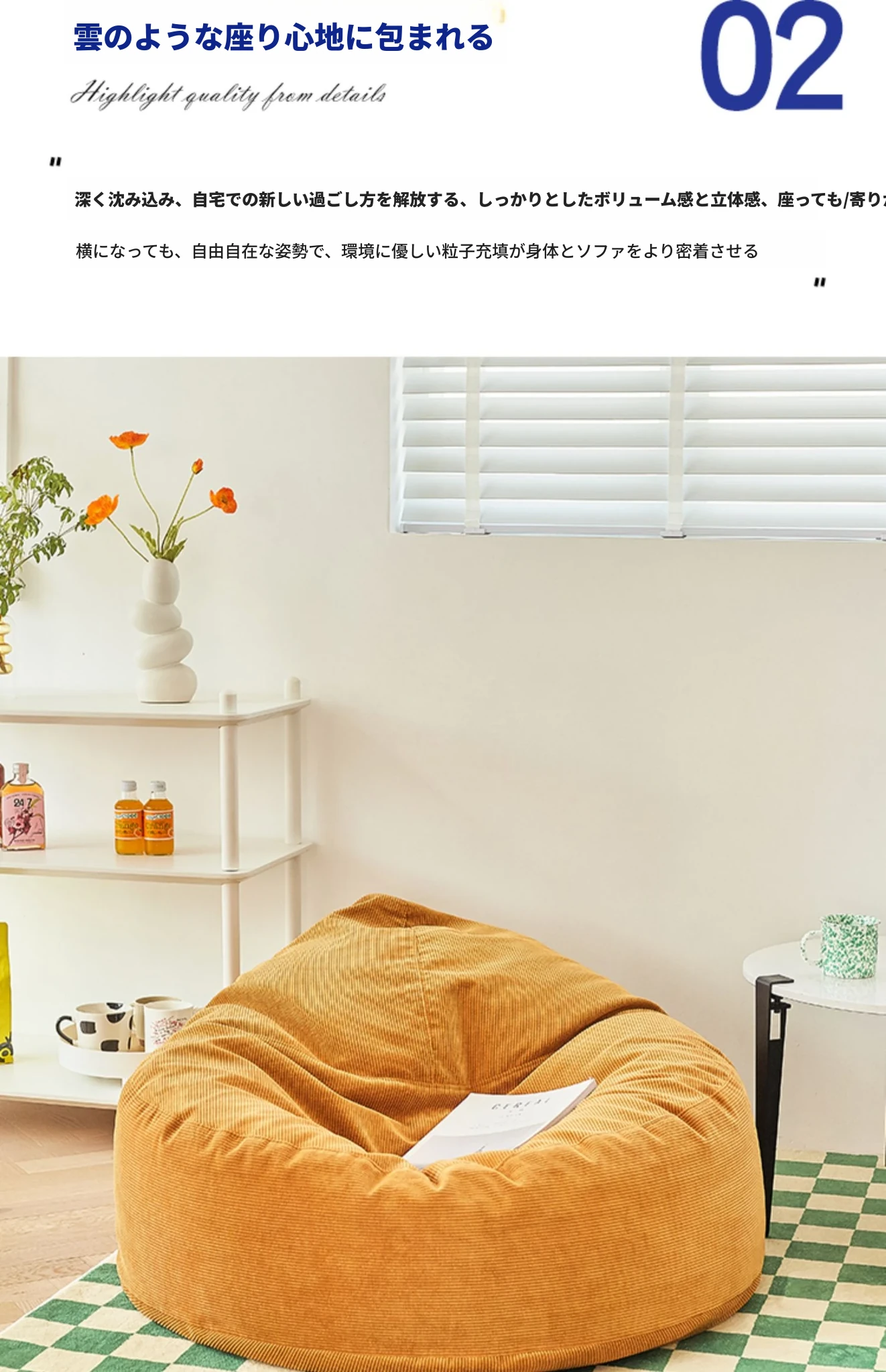 リラックススペース 北欧風 家庭用 リビング おしゃれな小さなソファ シンプルなベッドルーム用 くつろぎの畳用バルコニー シングルビーンバッグで、あなたのくつろぎタイムを格上げ!