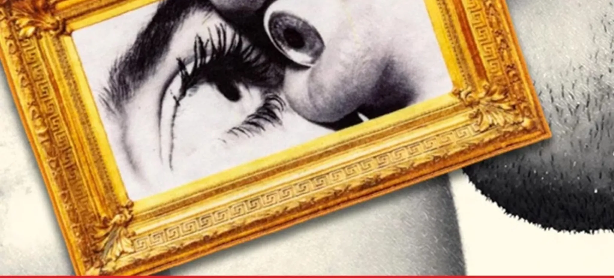 金のフレームの赤い唇shit