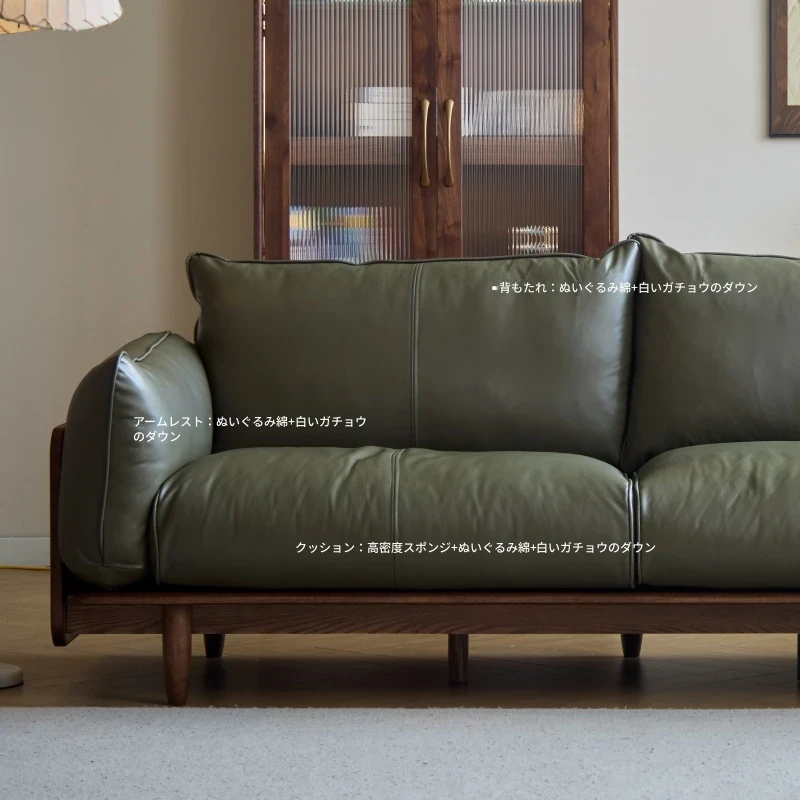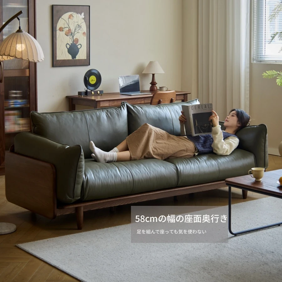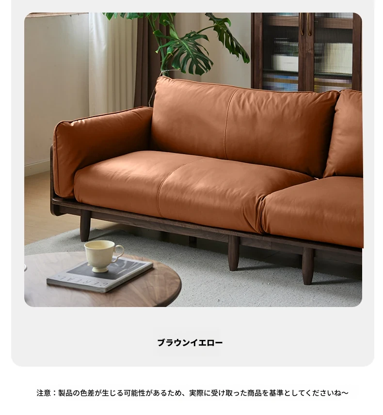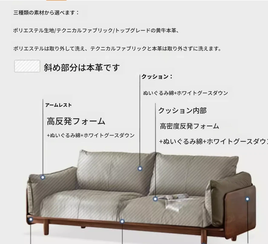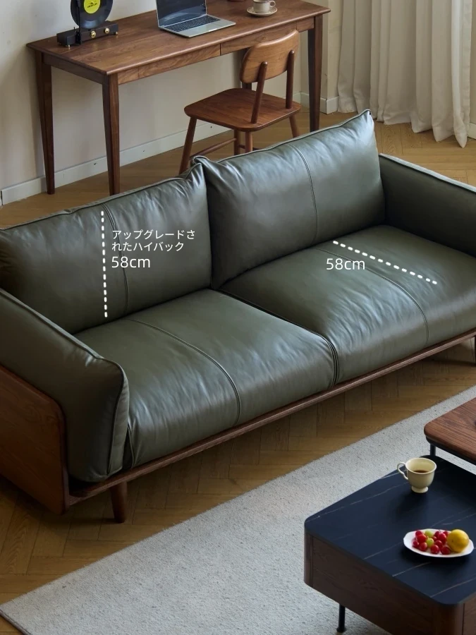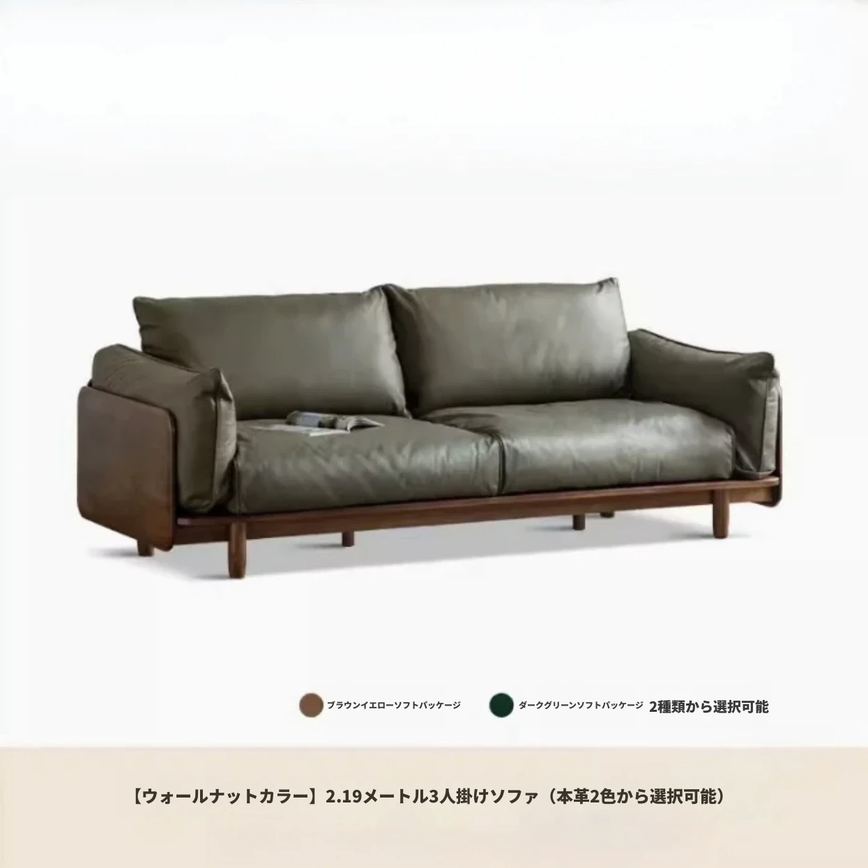 高くなったアップグレード版 オーク(ウォールナット色)2.19メートル3人掛けソファ(本革 多色選択可)
