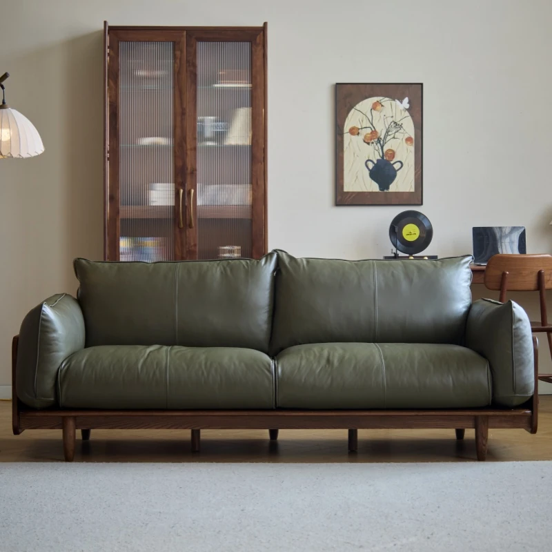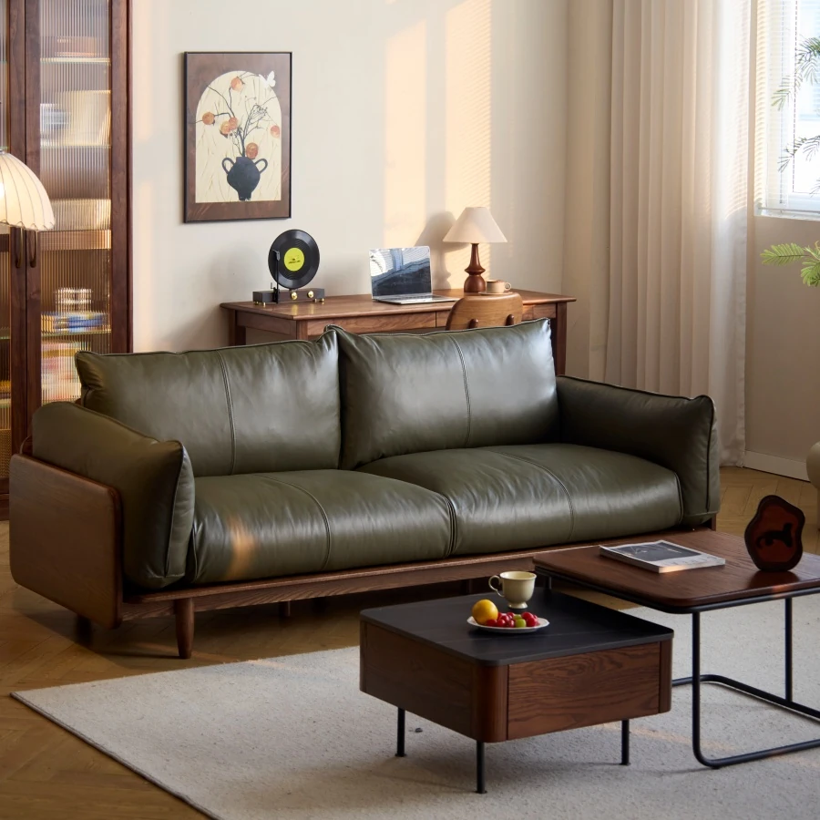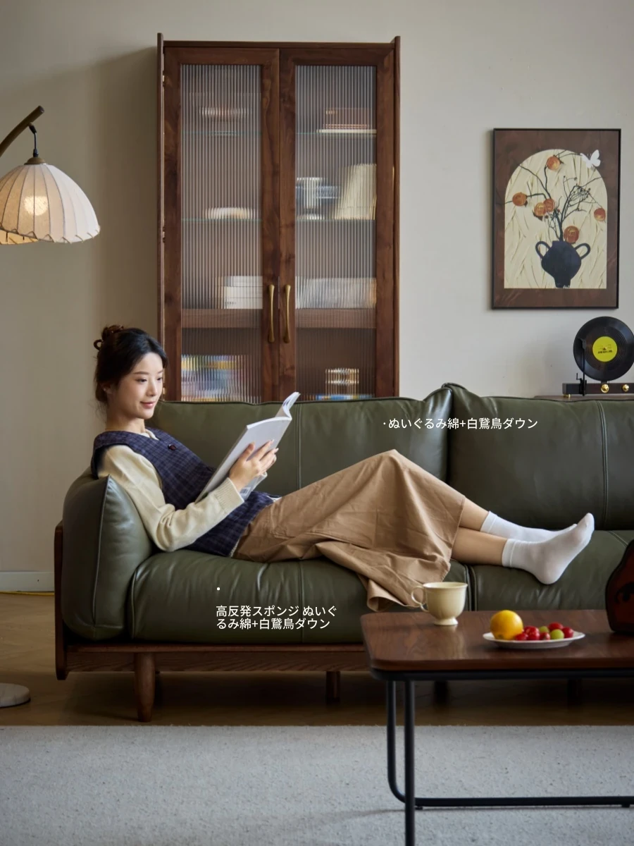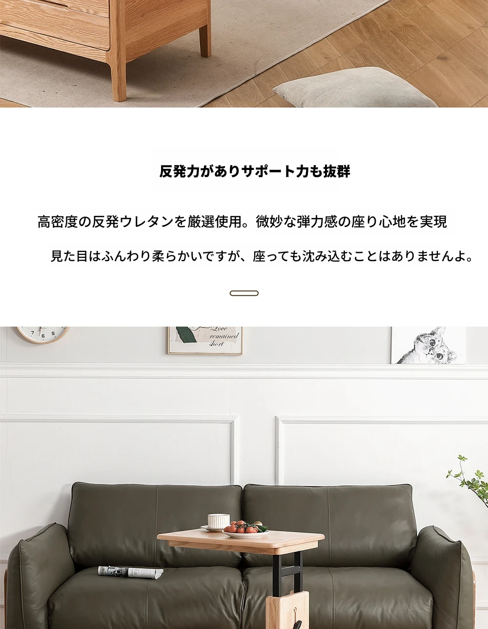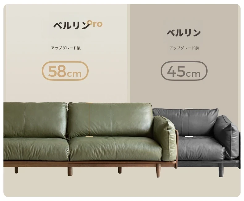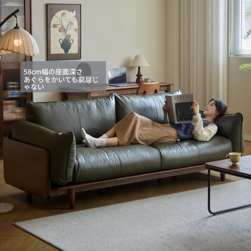 高くなったアップグレード版 オーク(ウォールナット色)2.19メートル3人掛けソファ(本革 多色選択可)