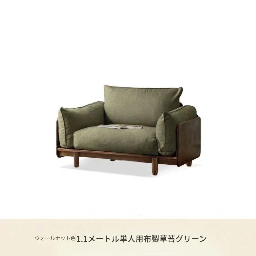 高くなったアップグレード版 オーク(ウォールナット色)1.1メートル1人掛けソファ(布地 モスグリーン)