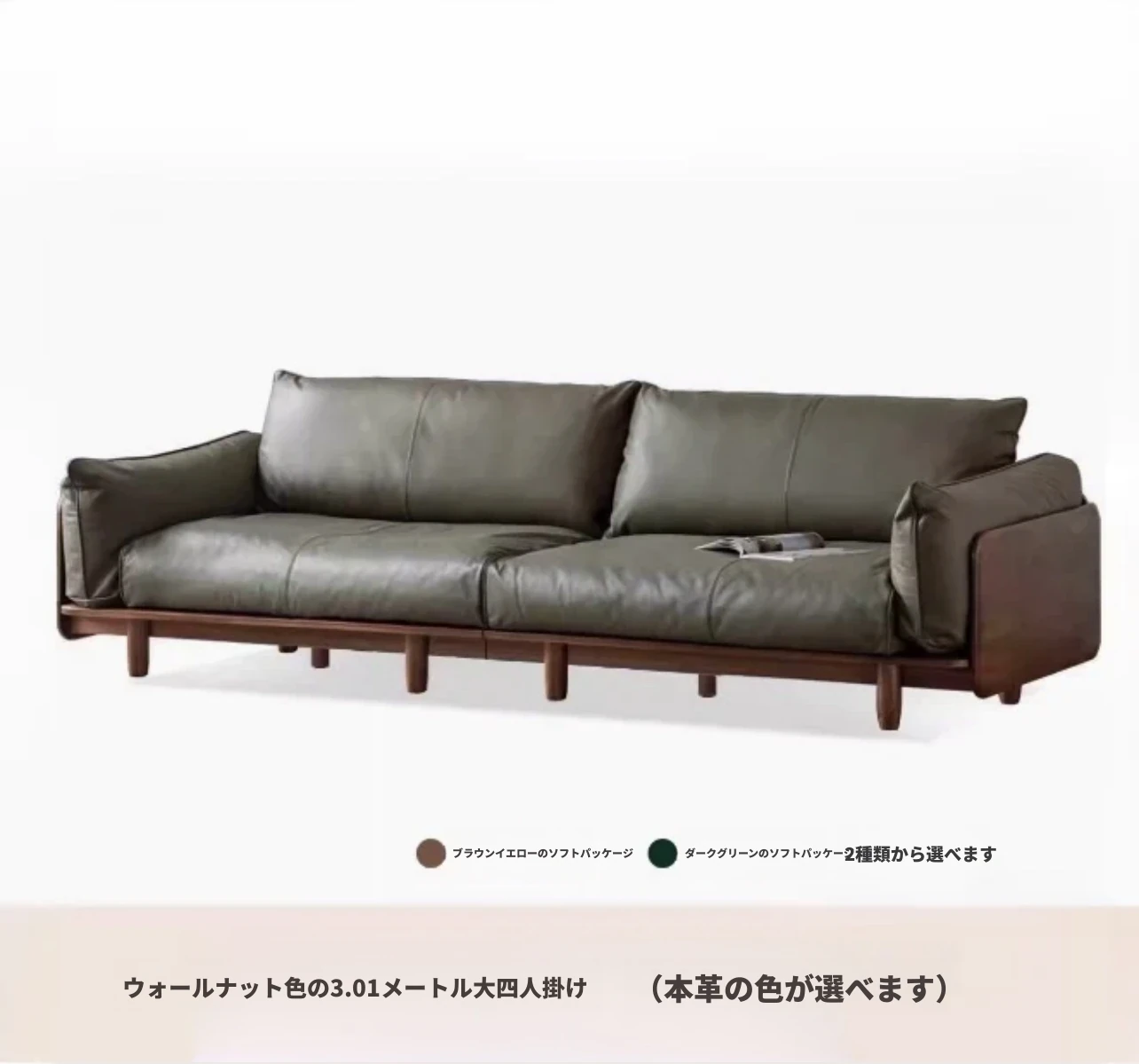 高くなったアップグレード版 オーク(ウォールナット色)3.01メートル大4人掛けソファ(本革 多色選択可)